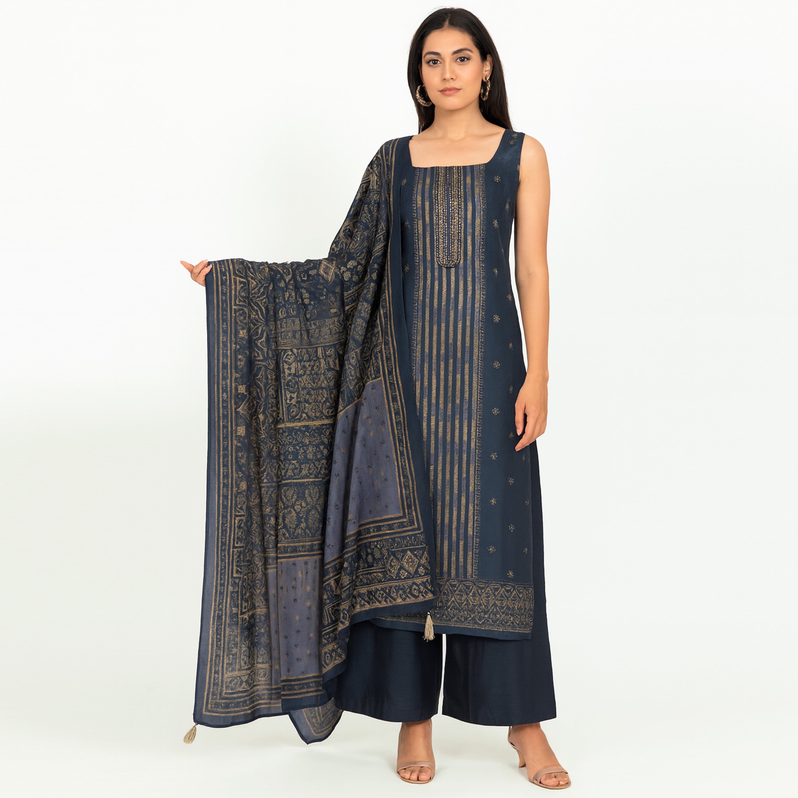 Refresh availabilityExperience the luxurious texture and natural sheen of our Unstitched Dola Silk Suit, crafted to offer versatility and elegance. This premium fabric allows you to tailor the suit to your precise measurements, ensuring a perfect fit and personalized style. Ideal for both festive occasions and formal wear, its breathable silk composition provides comfort while maintaining a refined appearance. Elevate your wardrobe with this timeless textile that combines traditional craftsmanship with contemporary customization.