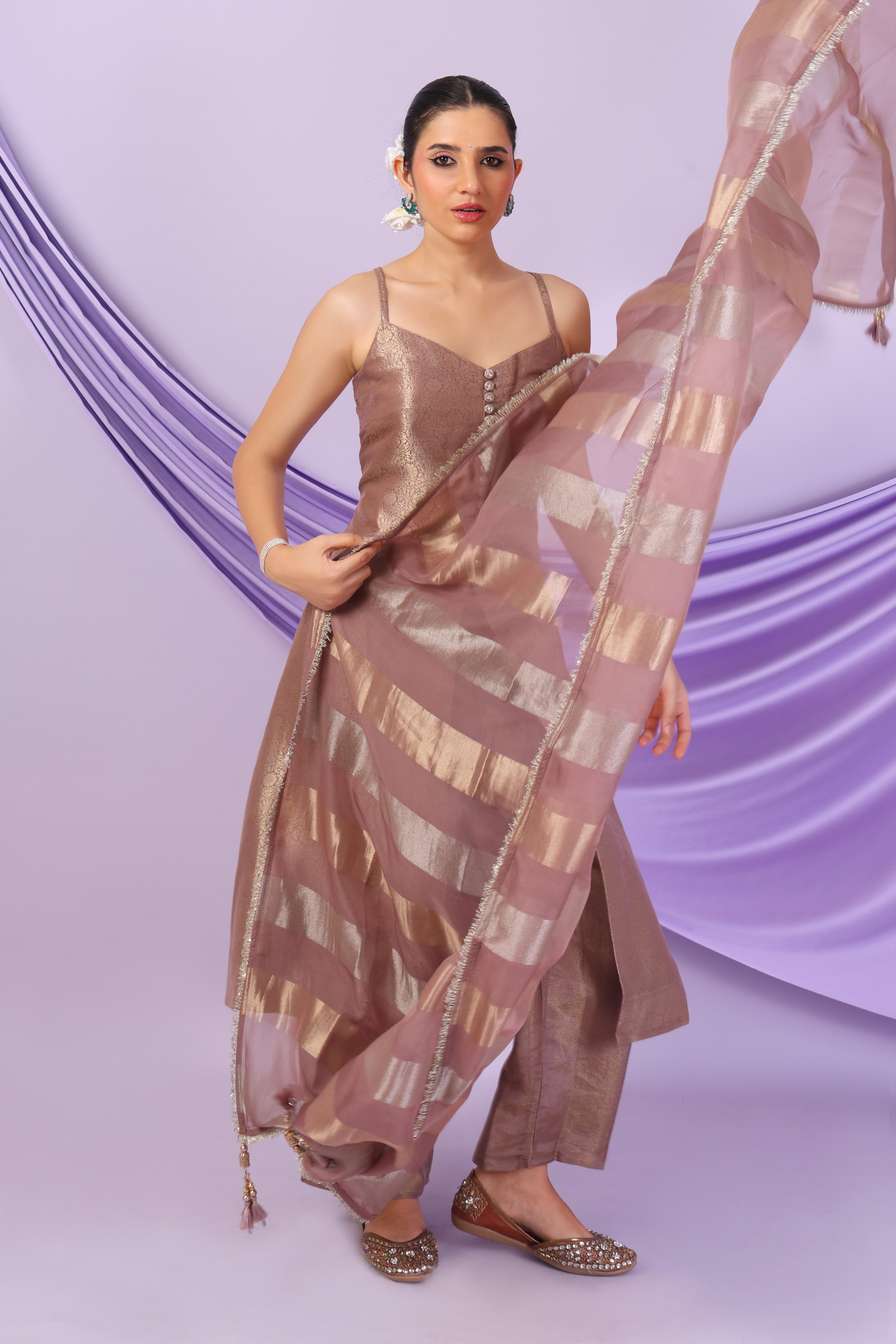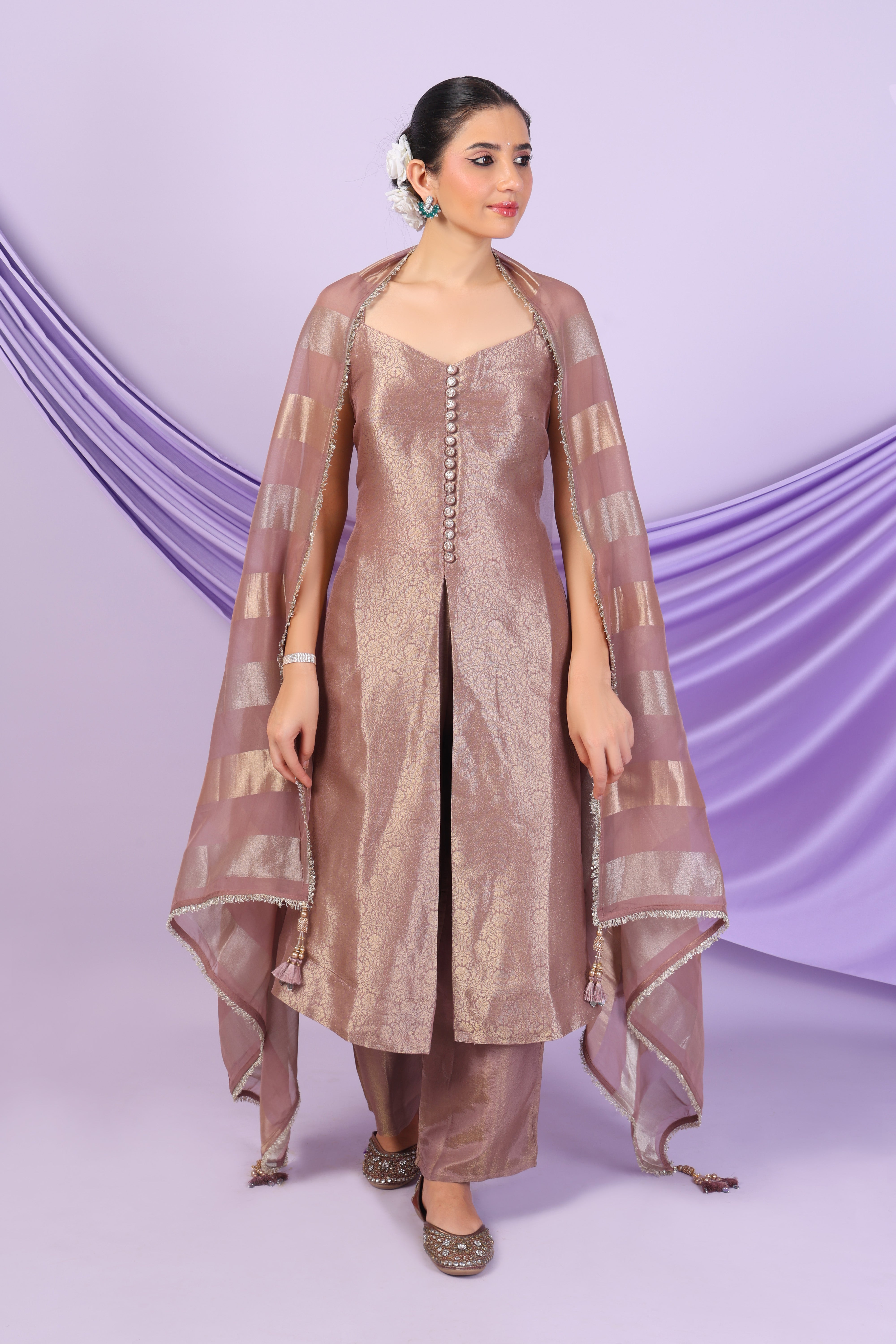 Refresh availabilityElevate your ethnic wardrobe with this Brocade Slit Style Suit Set. Crafted from rich brocade fabric, it offers a sophisticated texture and a graceful sheen. The slit style design provides both elegance and comfort, allowing ease of movement while maintaining a refined silhouette. Ideal for festive occasions and formal gatherings, this suit set combines traditional craftsmanship with contemporary styling for a distinguished, expert look.
