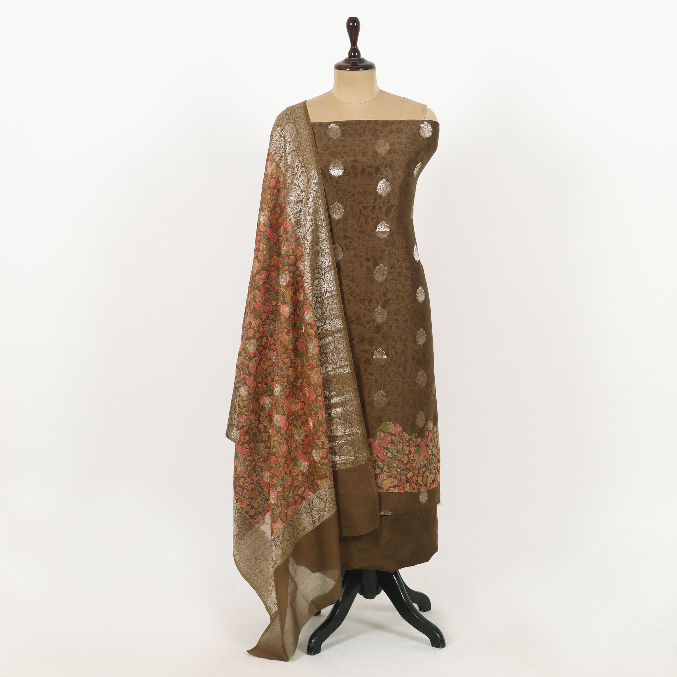 Refresh availabilityExperience timeless elegance with this Dust Brown unstitched Chanderi suit. Crafted from premium Chanderi fabric known for its lightweight texture and natural sheen, it offers breathable comfort and a graceful drape. The unstitched form allows for custom tailoring to your precise fit and style preferences, making it ideal for both traditional occasions and contemporary wear. Its subtle dust brown hue adds a sophisticated touch, perfect for creating refined and versatile ensembles.
