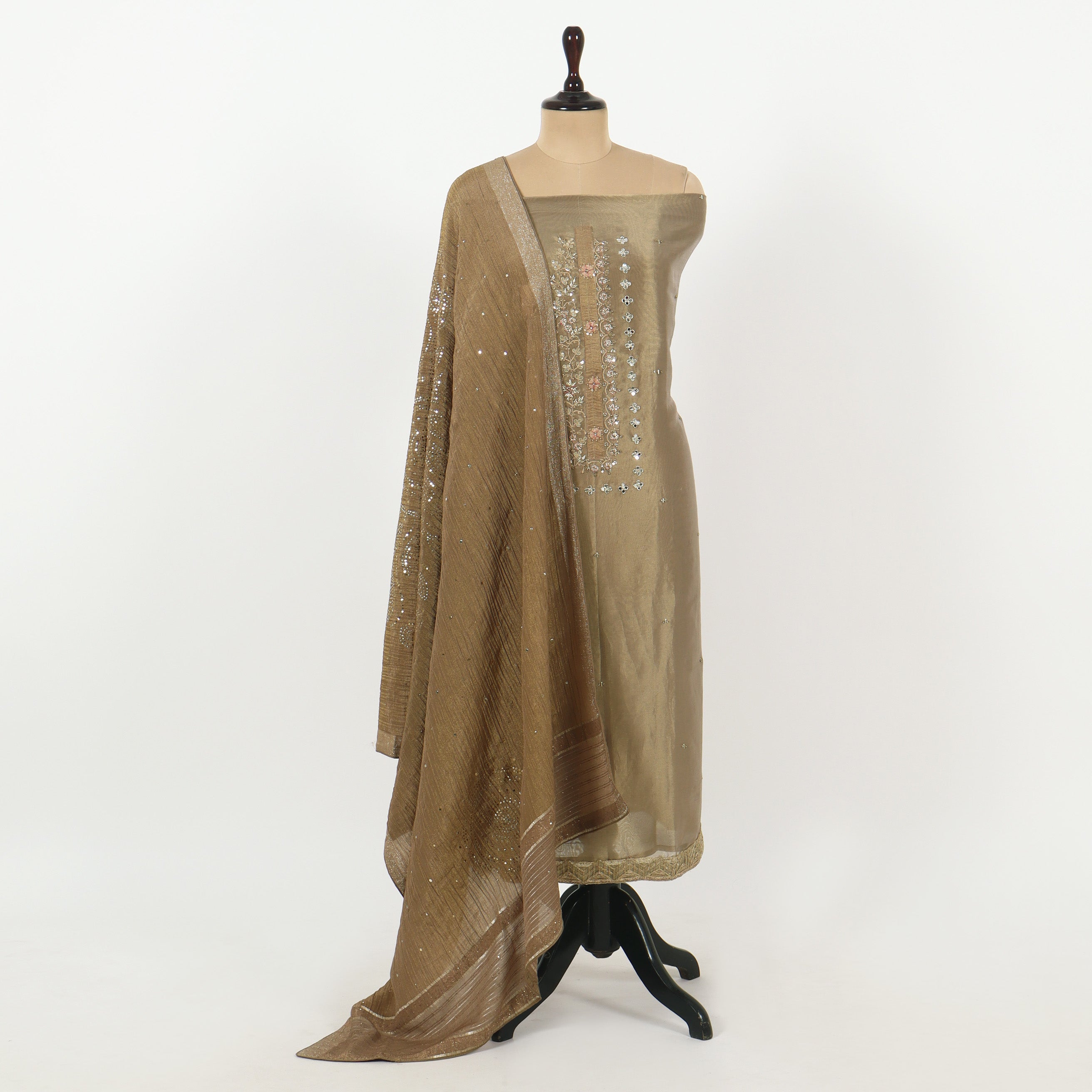 Refresh availabilityThis Dust Brown Unstitched Tissue Suit offers premium fabric quality, allowing you to customize the fit precisely to your preference. Its soft, breathable texture ensures comfort throughout the day, making it ideal for both formal and casual wear. The subtle dust brown shade provides a timeless elegance that complements various accessories and styles. Perfect for those seeking versatility and refinement in their wardrobe, this unstitched tissue fabric suit empowers you to create a personalized, sophisticated look.
