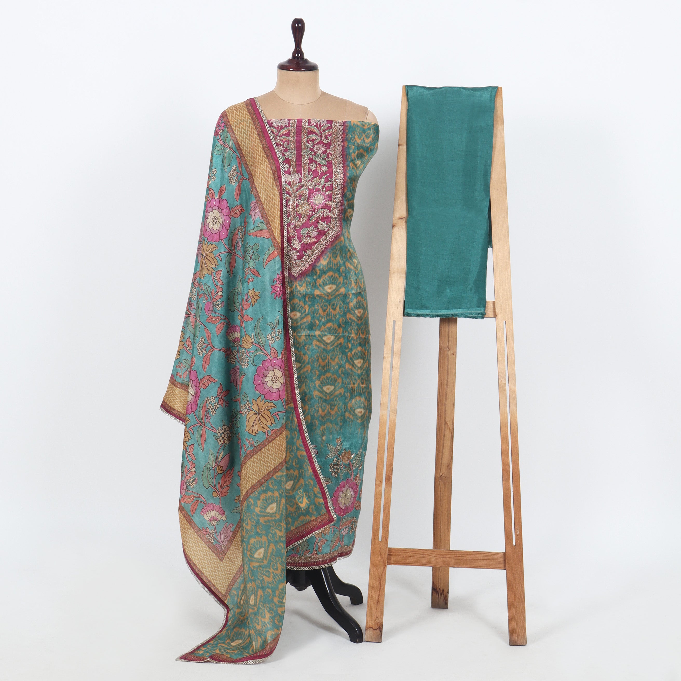 Refresh availabilityExperience the elegance of the Firozi Color Unstitched Crepe Suit, crafted from lightweight crepe fabric that ensures a comfortable and breathable fit. Its versatile unstitched format allows for customized tailoring to perfectly match your style and measurements. The soothing Firozi shade complements a variety of occasions, offering a refined and timeless look. Ideal for those seeking both quality and personalization in their wardrobe.