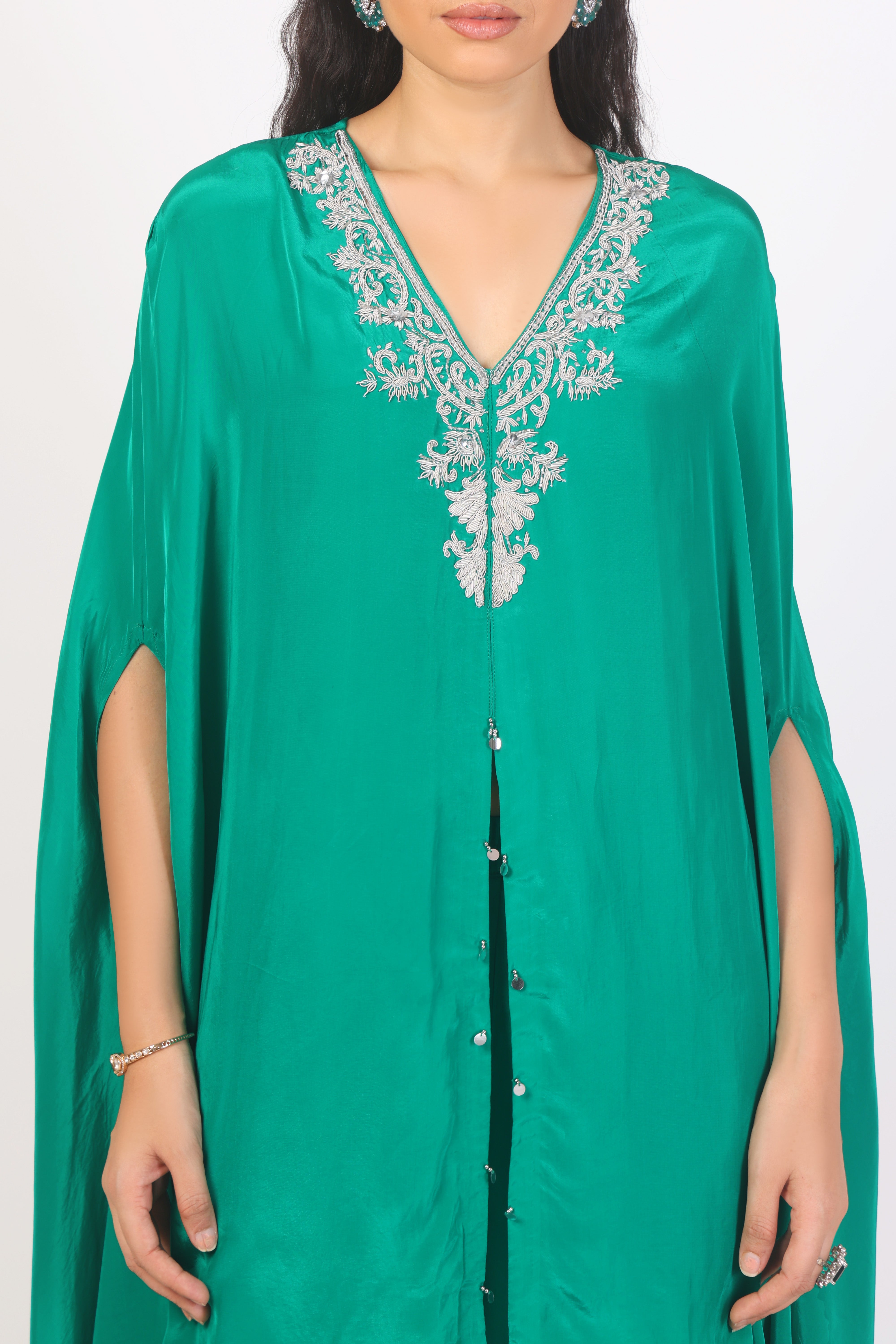 Refresh availabilityRedefine festive glam with this stylish Kaftan and Sharara set, blending comfort with grandeur. The kaftan features intricate embroidery and a relaxed silhouette, paired with a flowy sharara that adds volume and flair. Designed in premium fabric, this outfit is perfect for weddings, festive gatherings, and evening celebrations. Pair it with statement earrings and embellished footwear to complete the regal look.