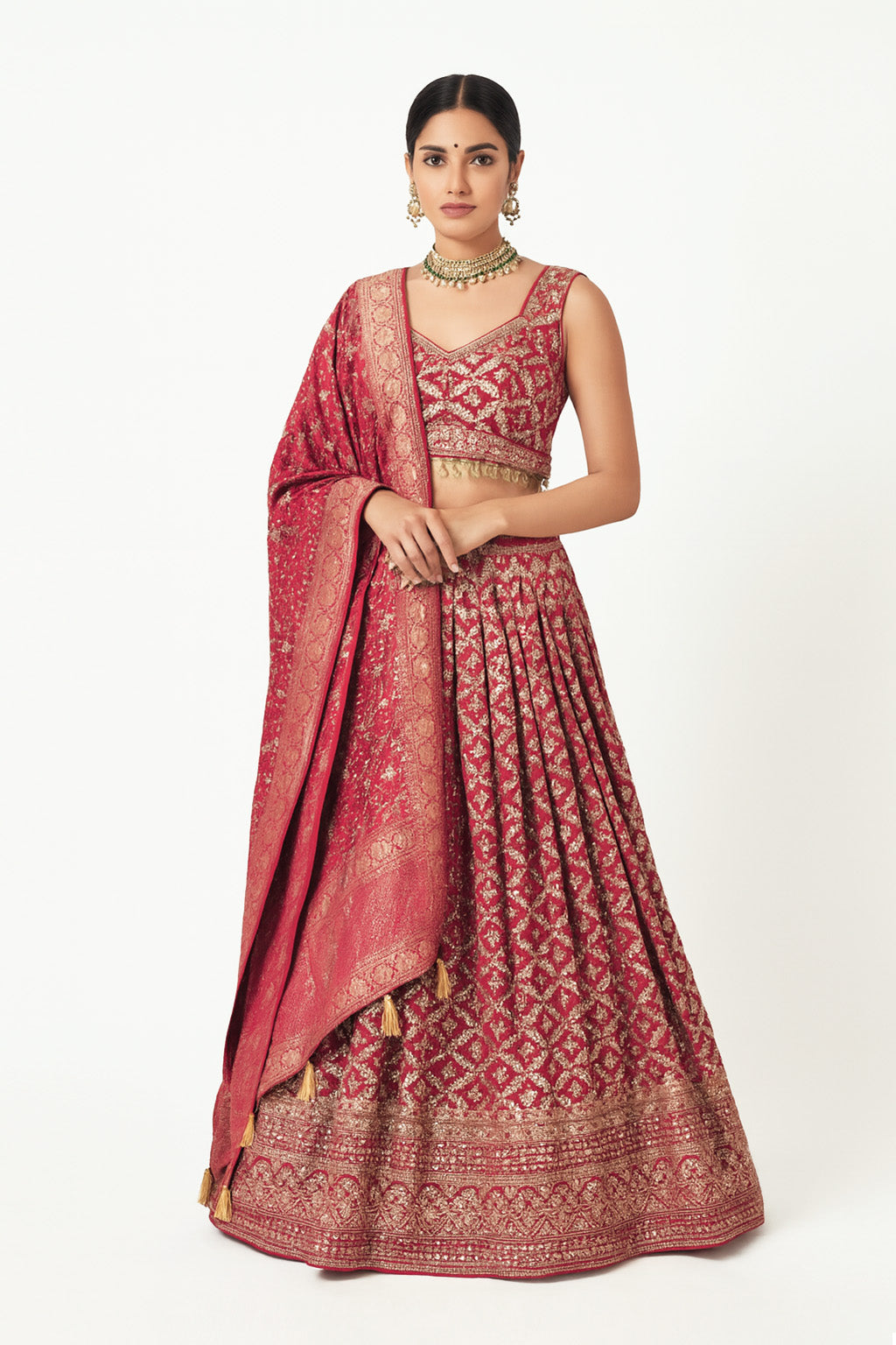 Refresh availabilityElevate your traditional wardrobe with this magenta color lehenga choli, expertly crafted to blend vibrant hues with classic design. The rich magenta shade adds a striking yet elegant appeal, perfect for festive occasions and weddings. Designed for comfort and style, the lehenga offers graceful movement while the choli features meticulous detailing that enhances its overall charm. This ensemble balances cultural heritage with contemporary fashion, making it a refined choice for those seeking sophistication in ethnic wear.
