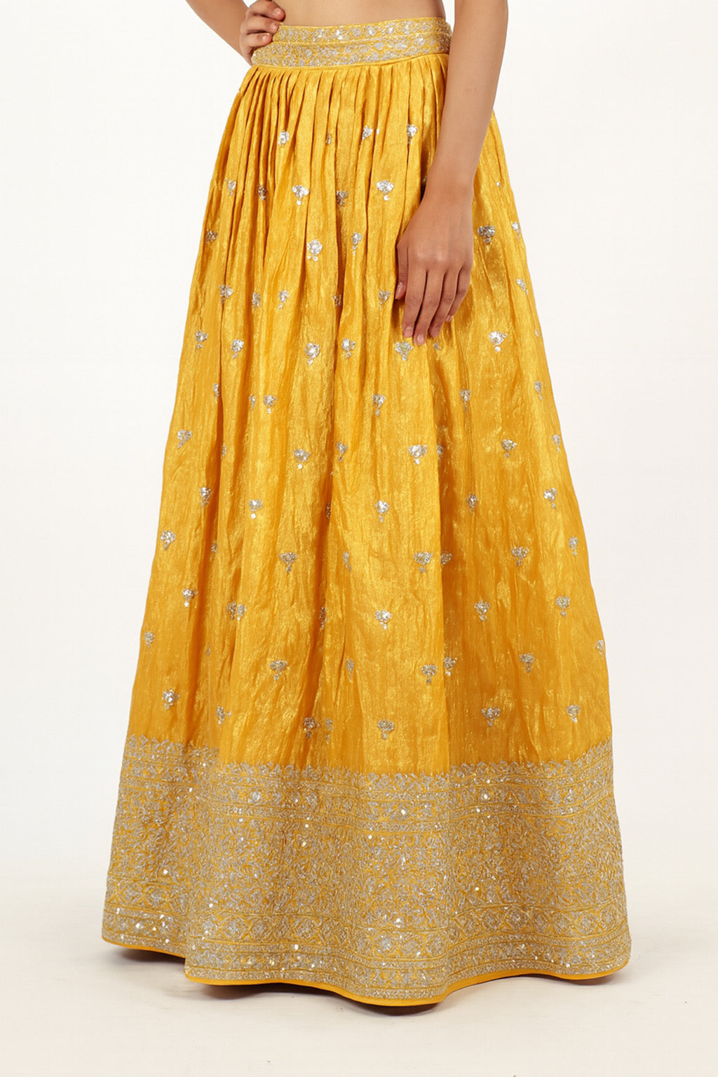 Absolutely loved this mustard yellow lehenga choli! The shade is unique and stands out beautifully in daylight functions like haldi or mehendi. The detailing on the blouse and the border is gorgeous. The lehenga has a nice flow, making it look grand yet easy to carry. Truly a stunning piece!
