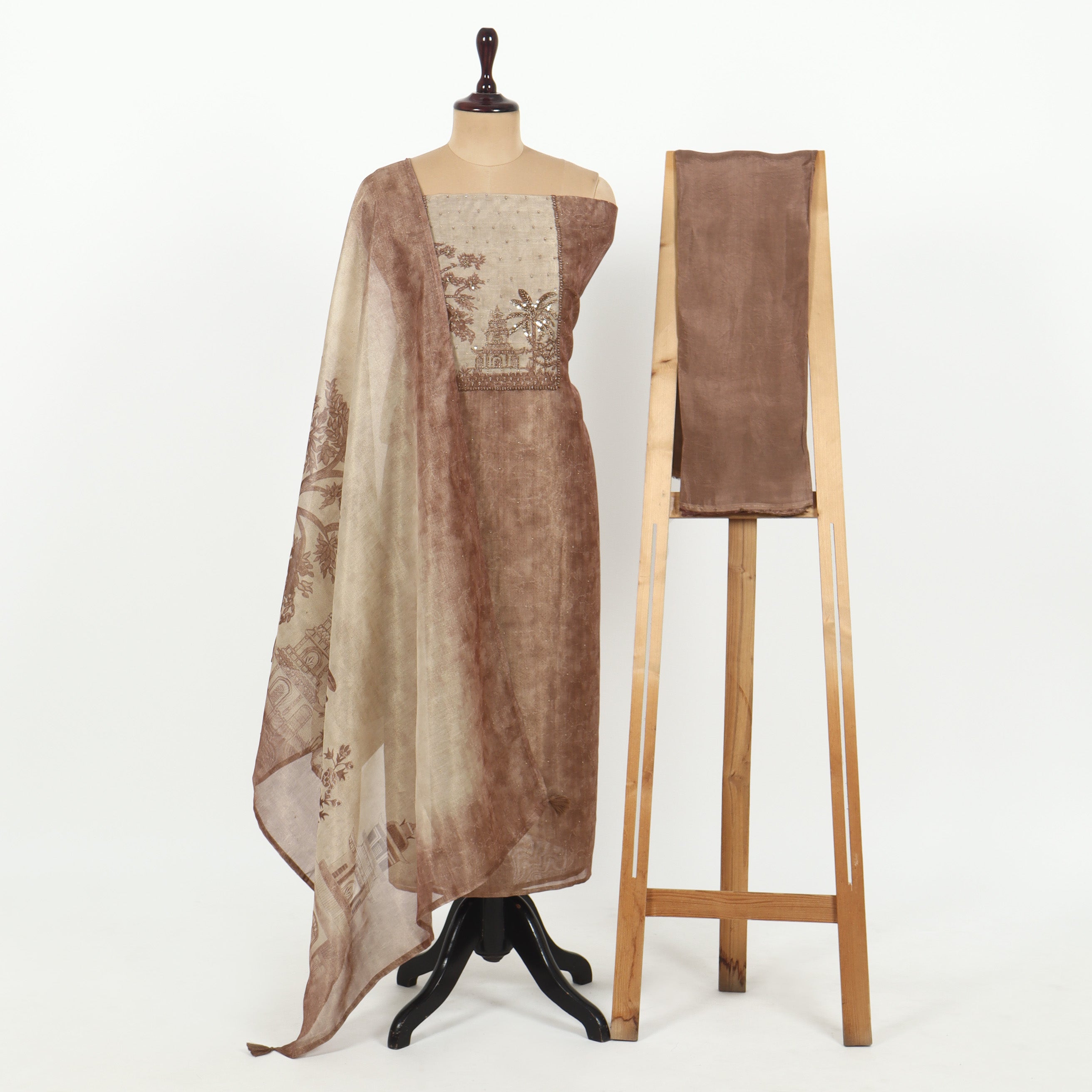 Saddle Brown Color Unstitched Tissue Suit