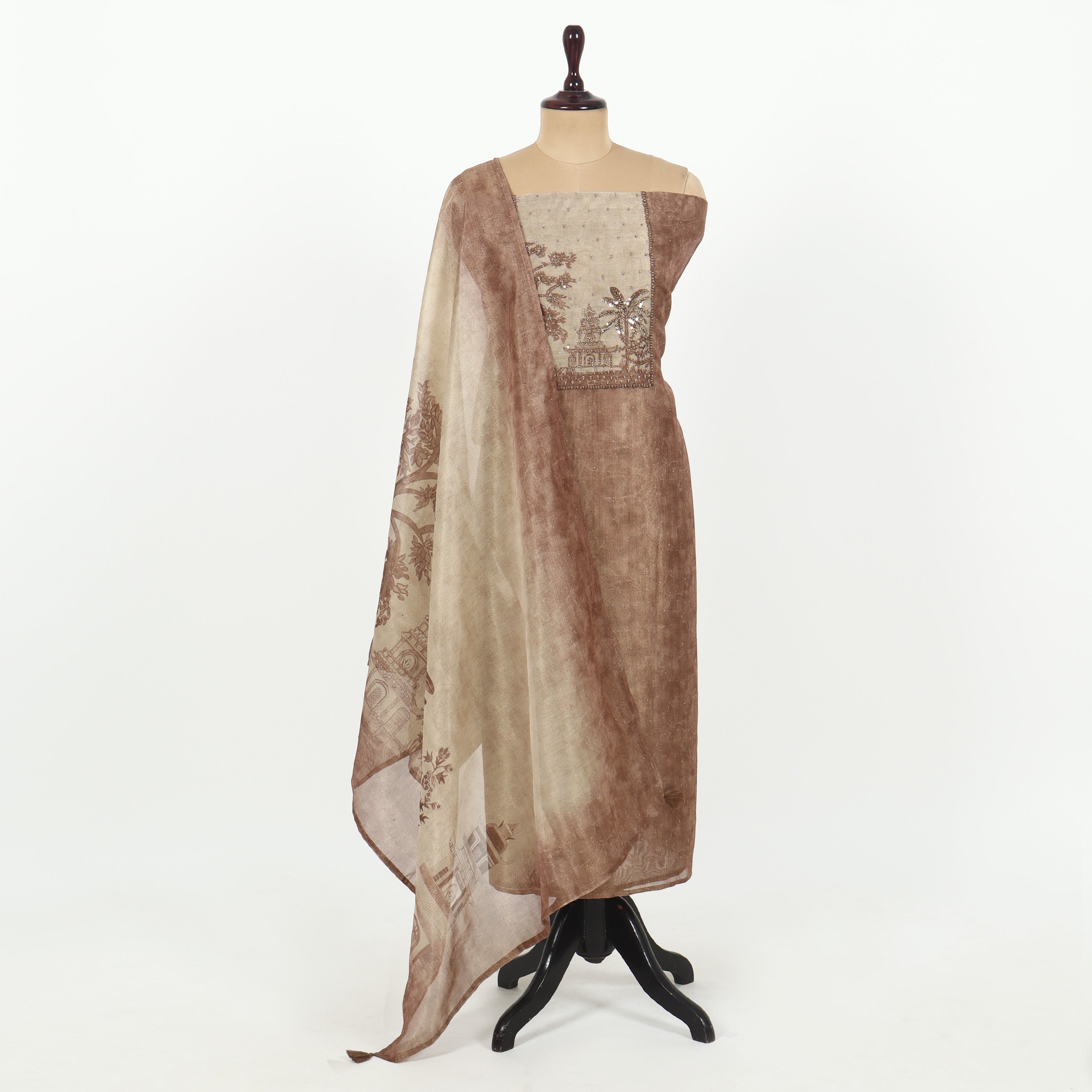 Refresh availabilityThis Saddle Brown Color Unstitched Tissue Suit offers premium quality fabric in a refined, versatile shade. Crafted from smooth tissue material, it provides a soft feel and excellent drape, ideal for creating personalized traditional or contemporary outfits. Its unstitched form allows tailoring versatility to meet your exact fit and style preferences, making it a perfect choice for expert garment makers seeking both elegance and flexibility.