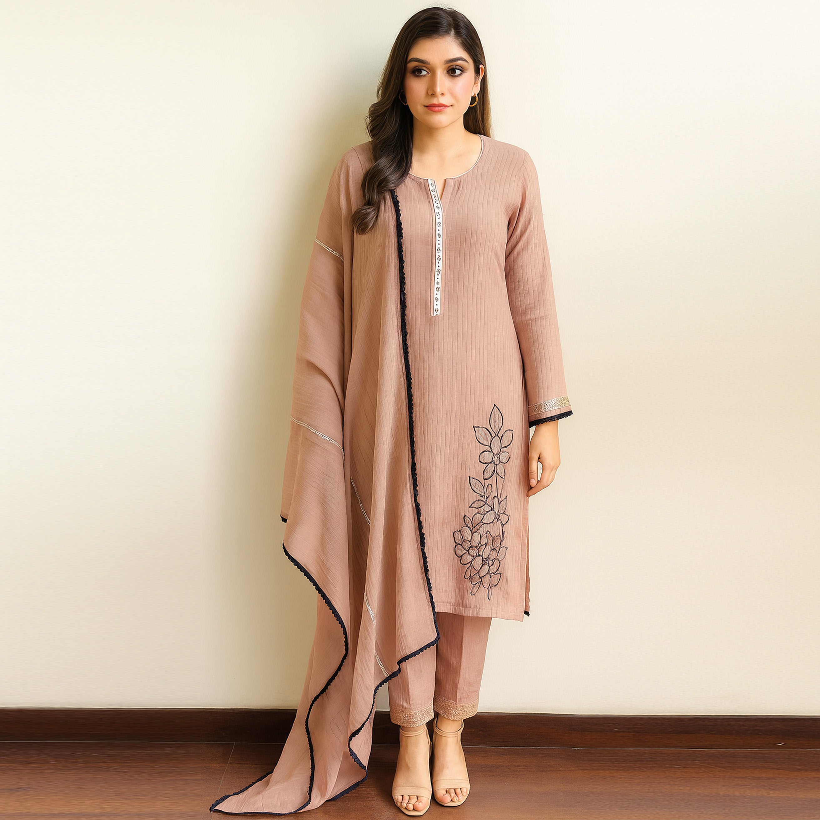 Refresh availabilityExperience the elegance of traditional craftsmanship with this Semi Stitched Chanderi Suit Set. Crafted from lightweight, breathable Chanderi fabric, it offers a perfect blend of comfort and style. The semi-stitched design allows for a tailored fit, ensuring a personalized silhouette. Ideal for festive occasions or formal gatherings, this suit set combines timeless appeal with modern versatility.