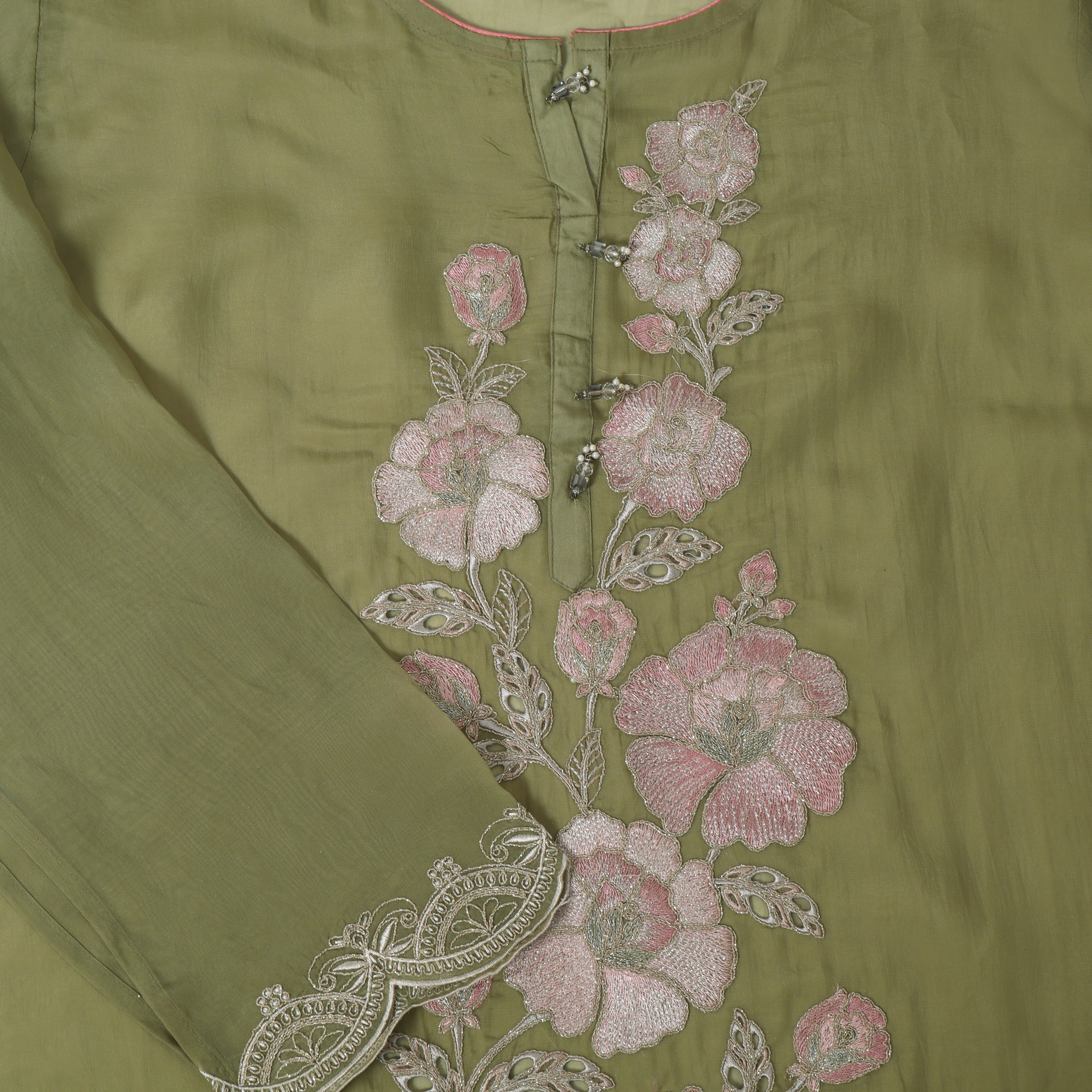 Refresh availabilityStep into timeless elegance with this Semi Stitched Organza Suit, designed to combine sophistication with ease of styling. The premium organza fabric offers a sheer, graceful drape, while the intricate embroidery and delicate detailing enhance its luxurious appeal.