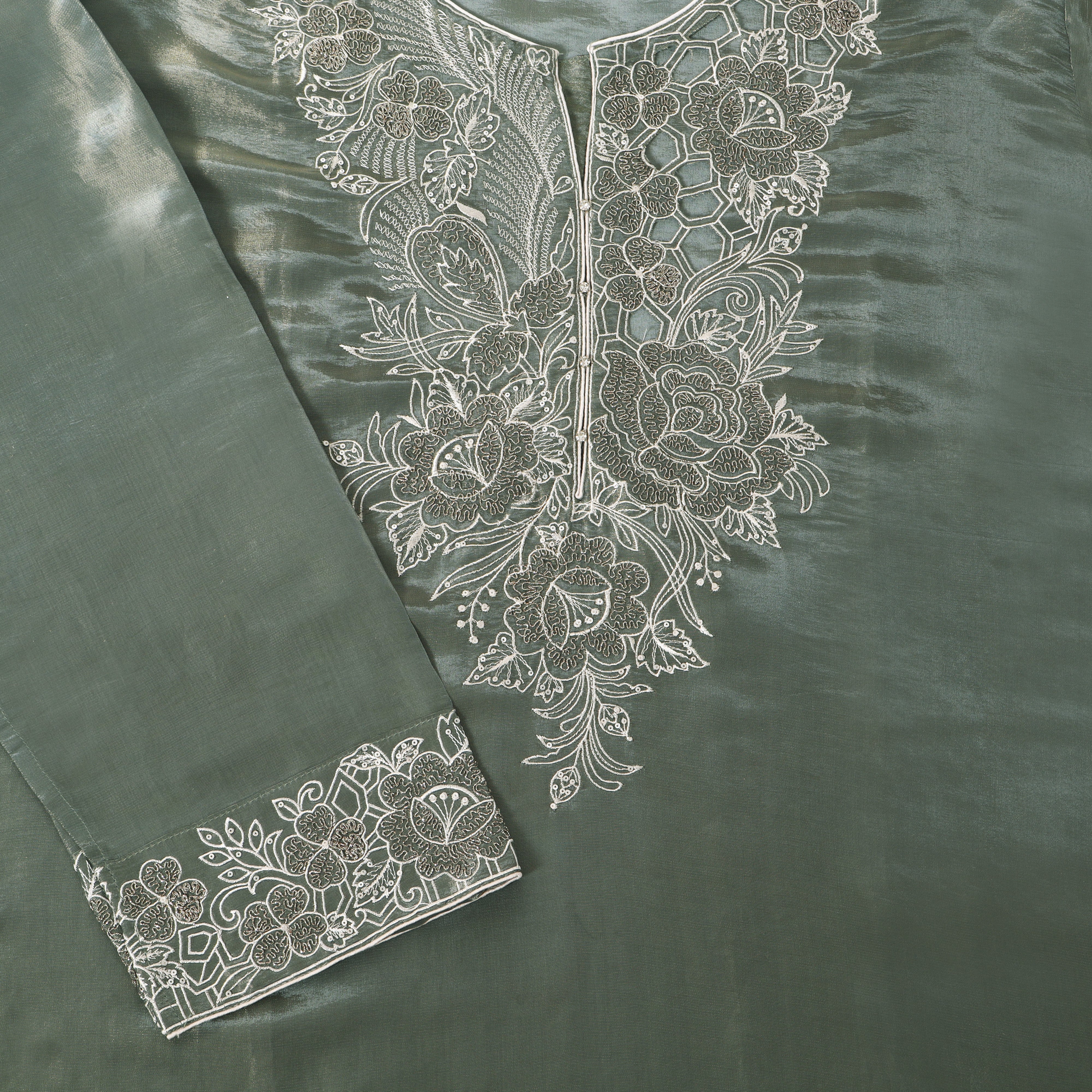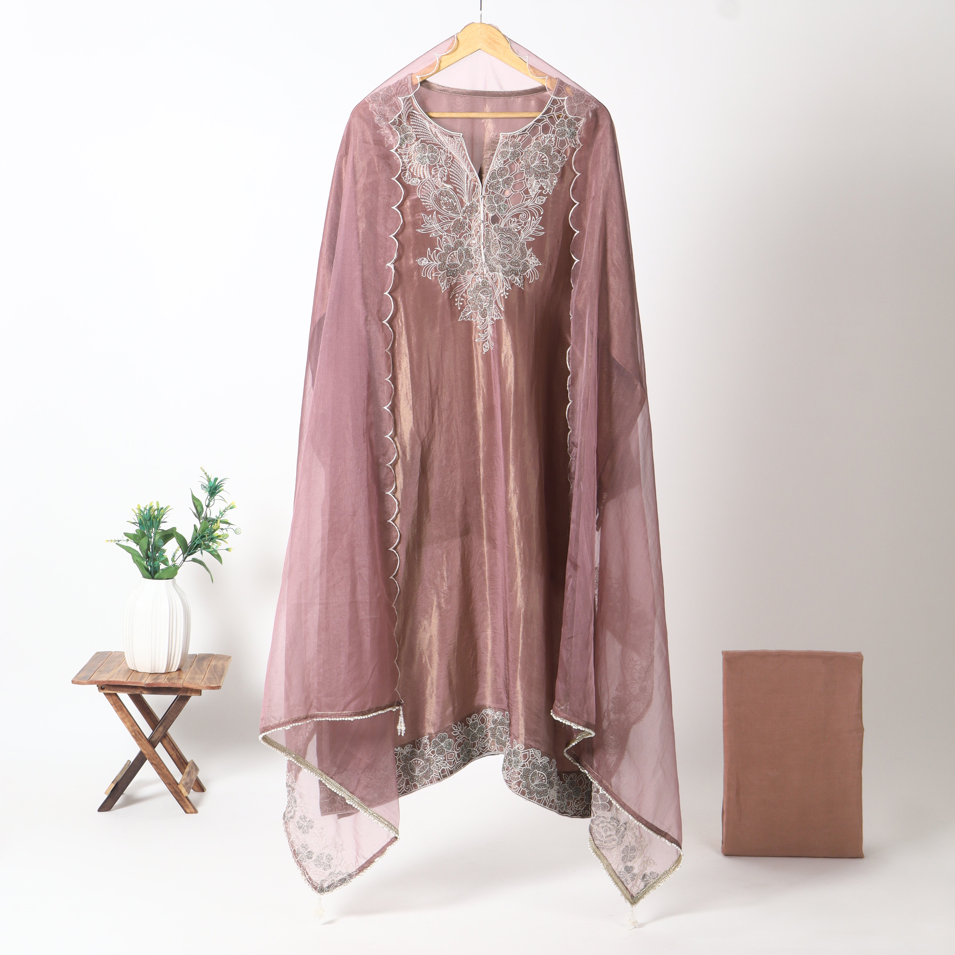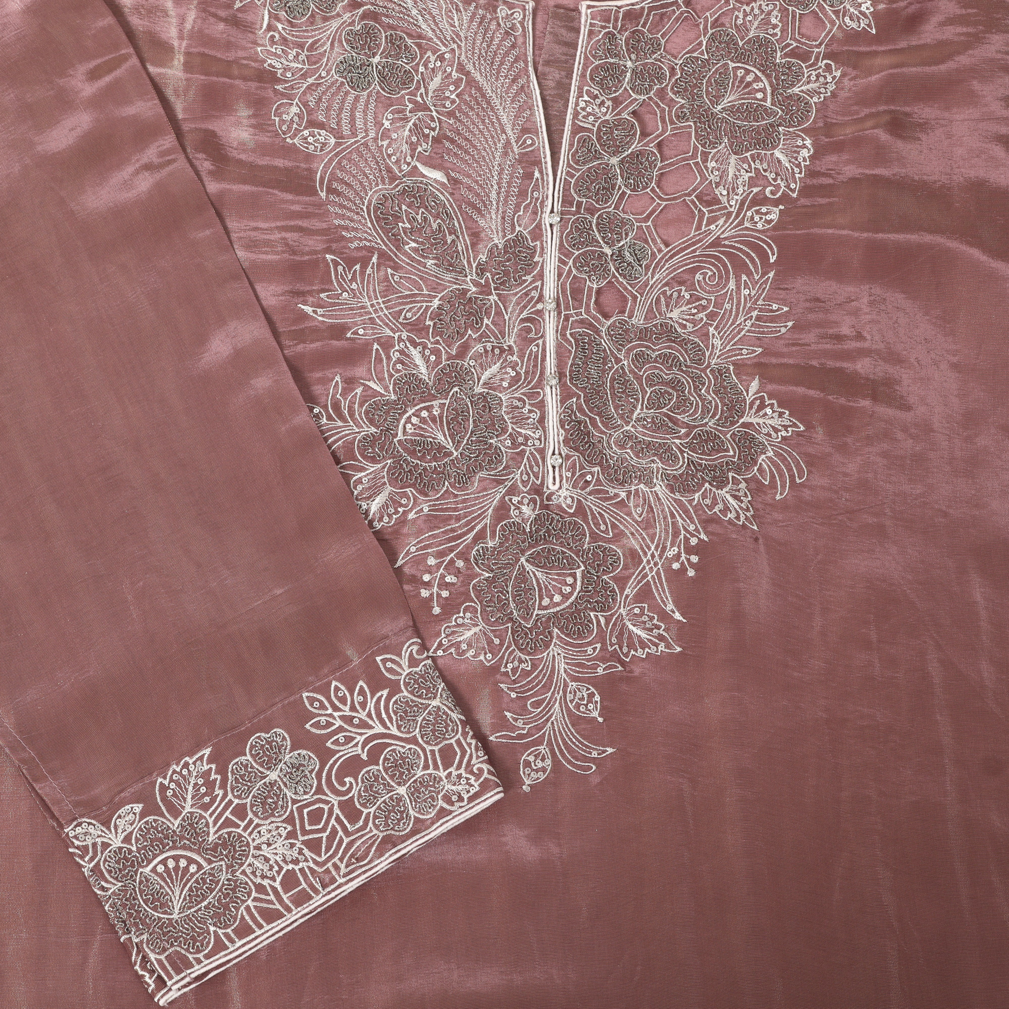 Refresh availabilityCrafted in luxurious tissue fabric, this semi-stitched suit combines effortless elegance with versatile styling. The fabric’s natural shimmer and lightweight drape add a festive charm, while the semi-stitched finish allows you to tailor it to your perfect fit. A refined choice for weddings, celebrations, and special occasions.