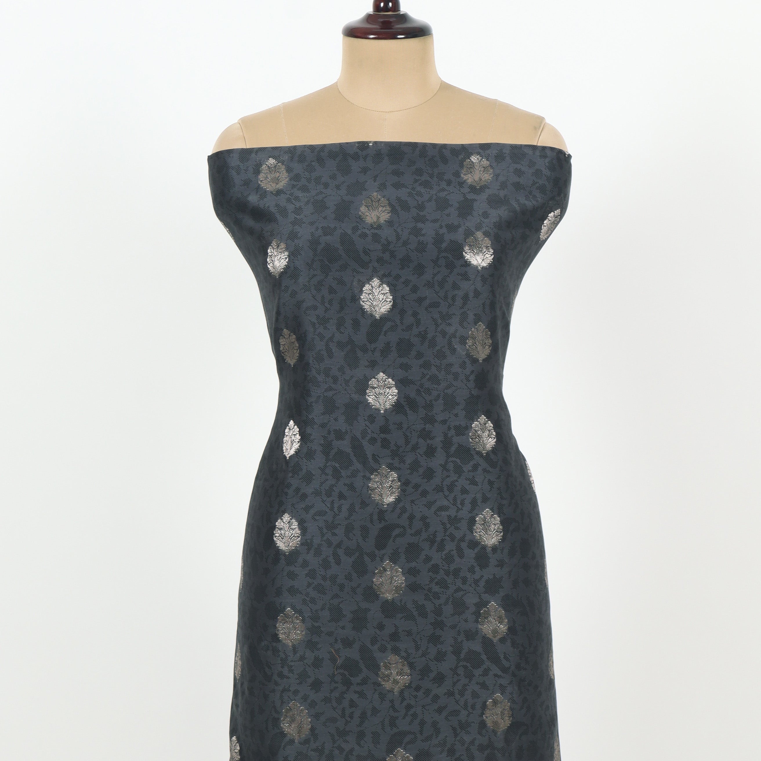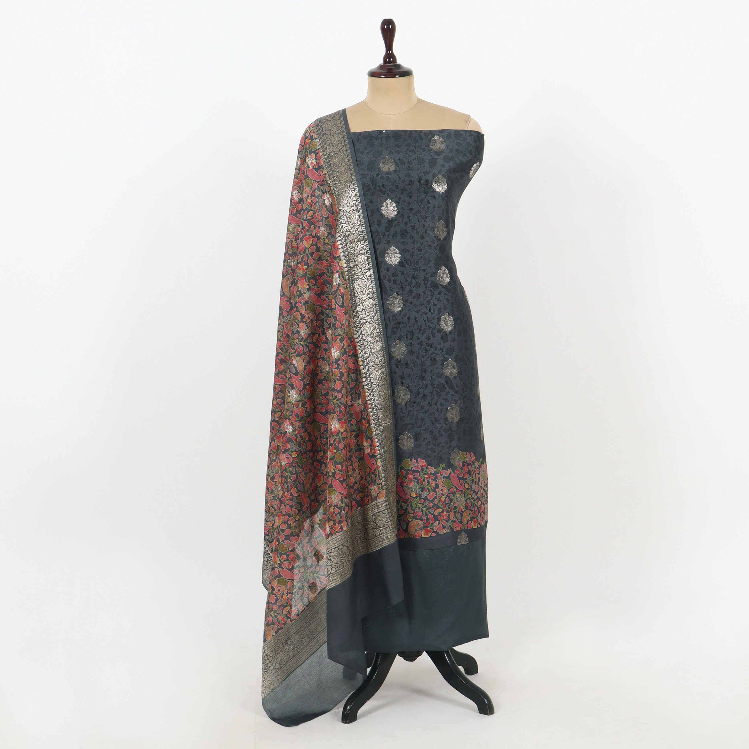 Steel Grey Unstitched Chanderi Suit