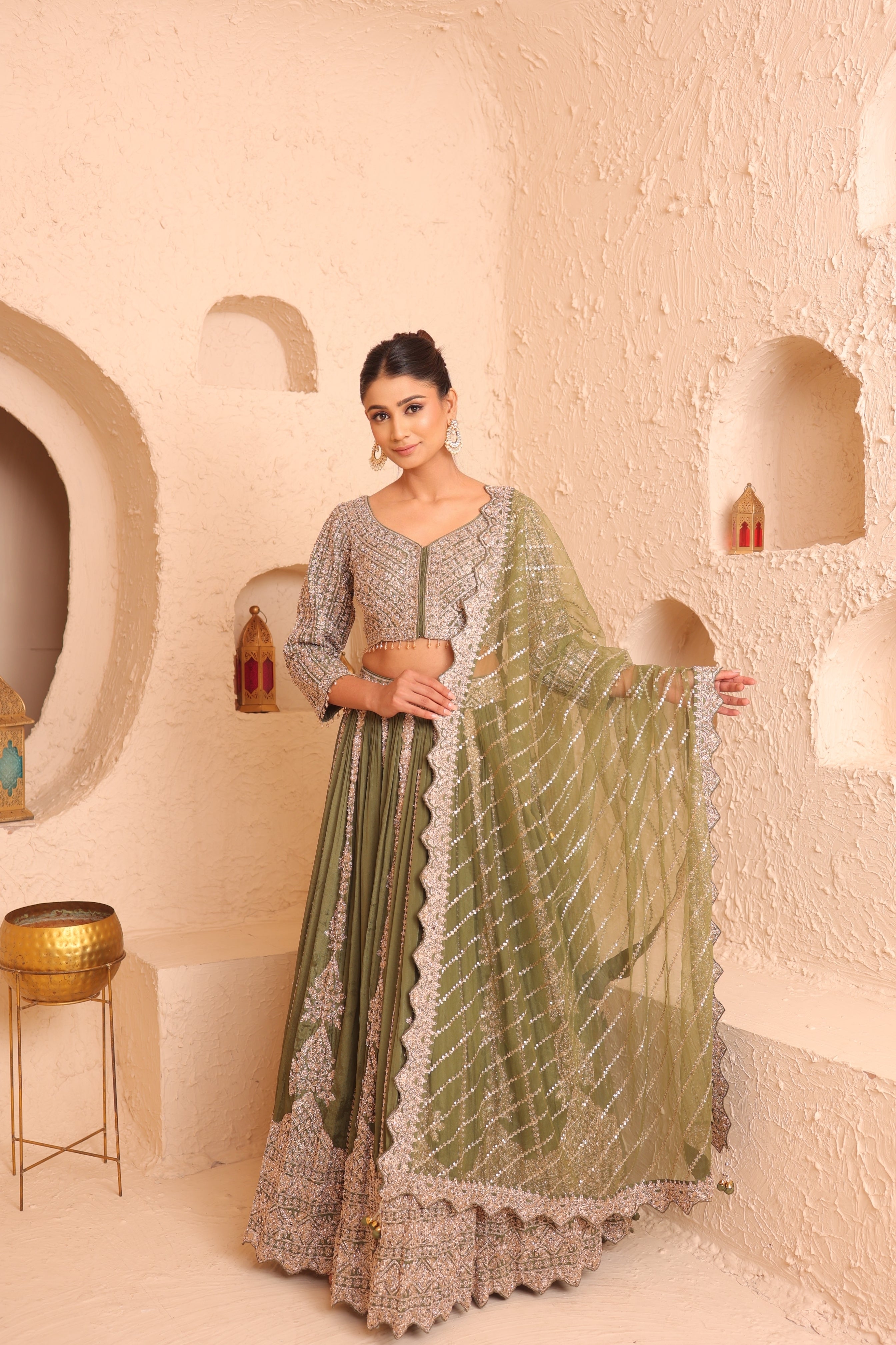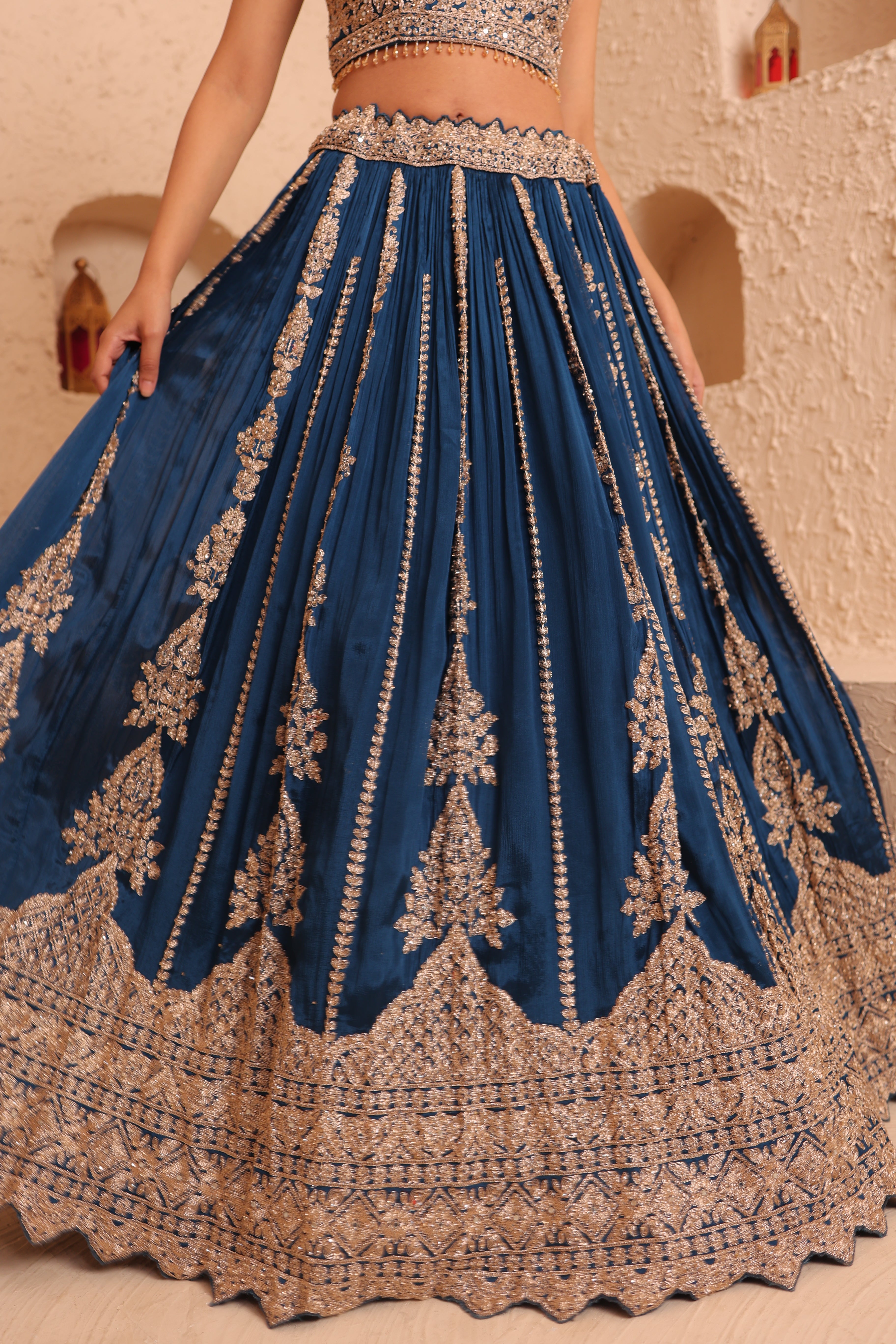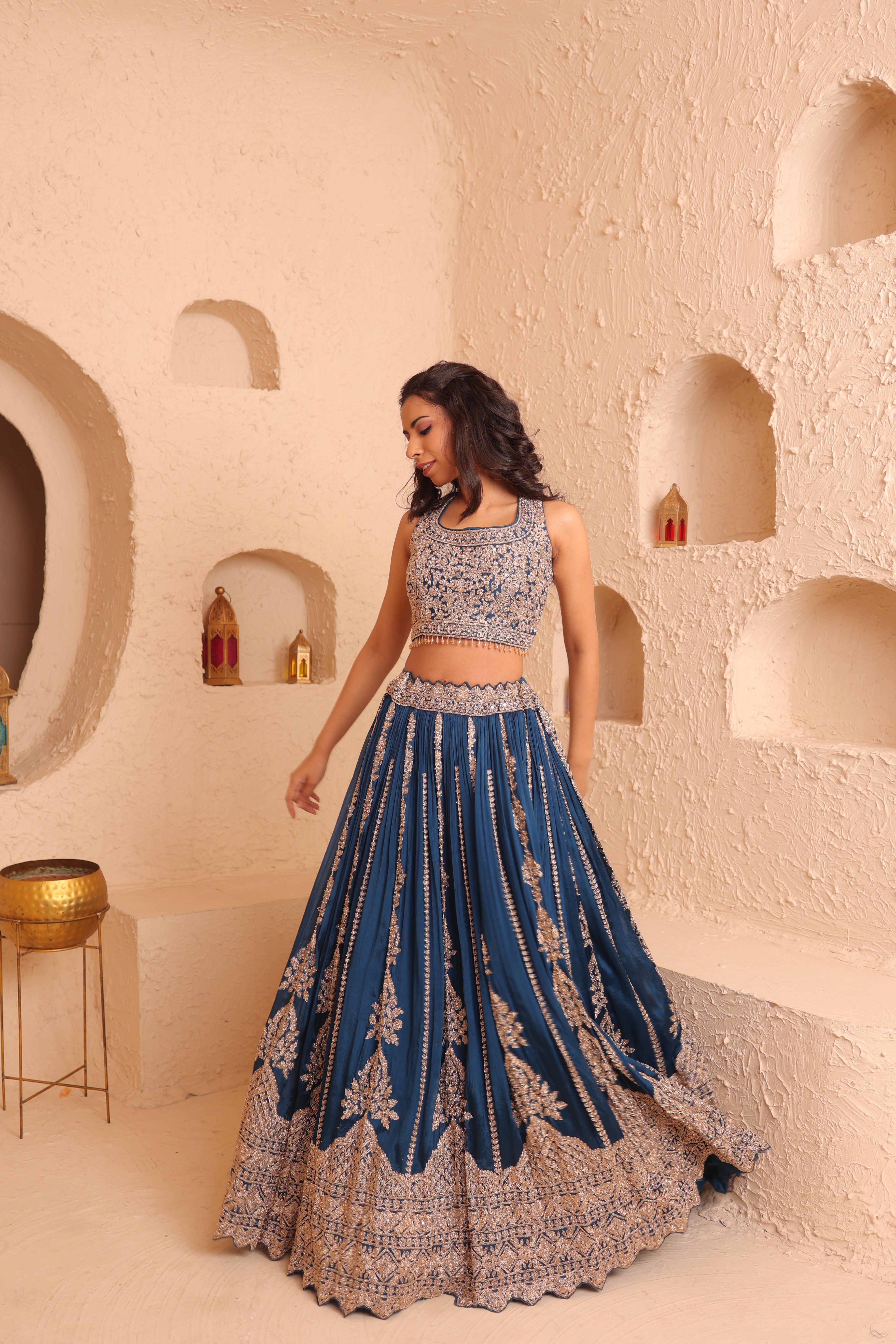 Refresh availabilityThis Heavy Embroidered Georgette Lehenga with Blouse is a stunning choice for any formal occasion. The navy blue Color and heavy embroidery add an elegant touch. Made from high-quality Georgette fabric, this Lehenga and blouse set offers a comfortable fit and effortless style. Perfect for a chic and sophisticated look.