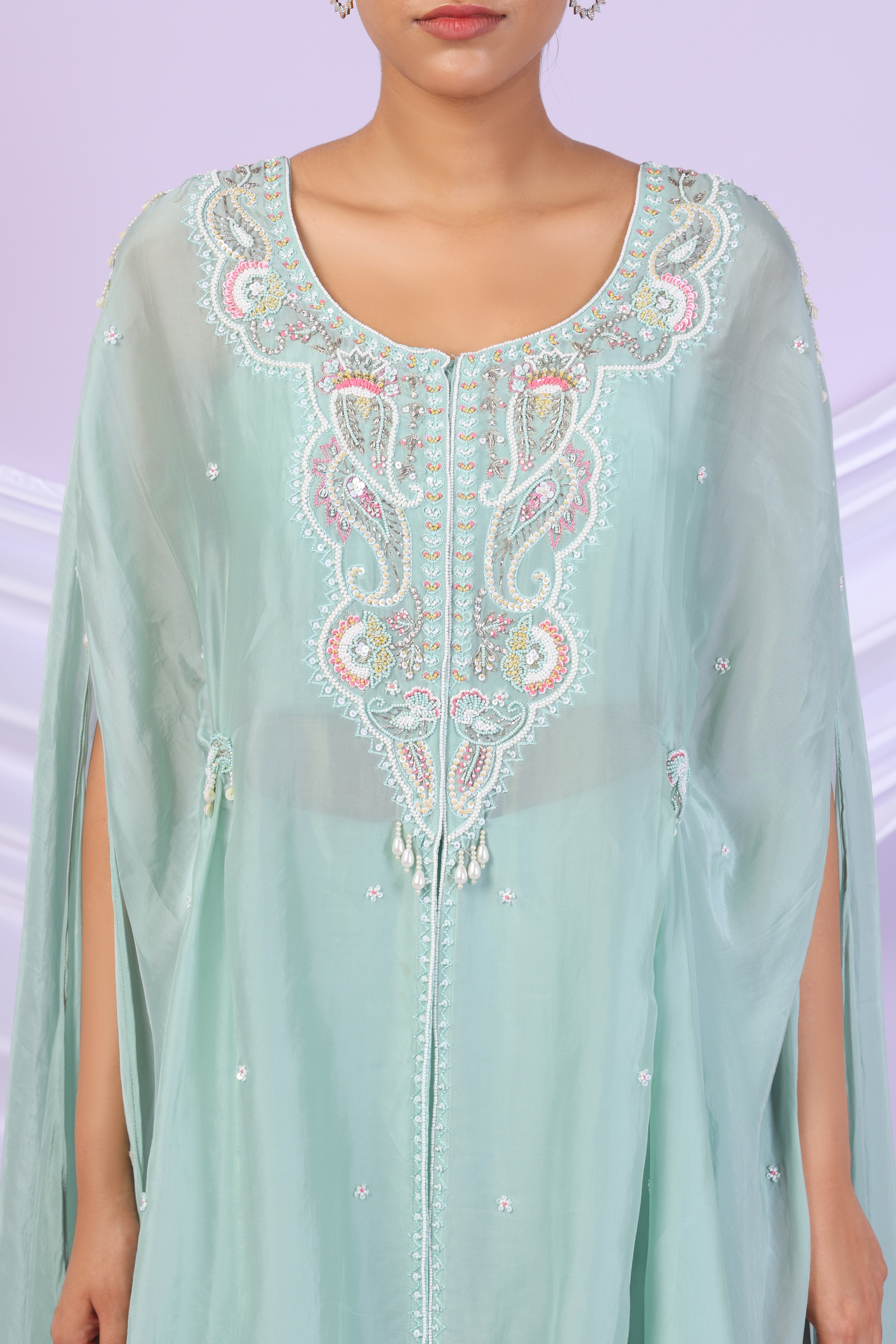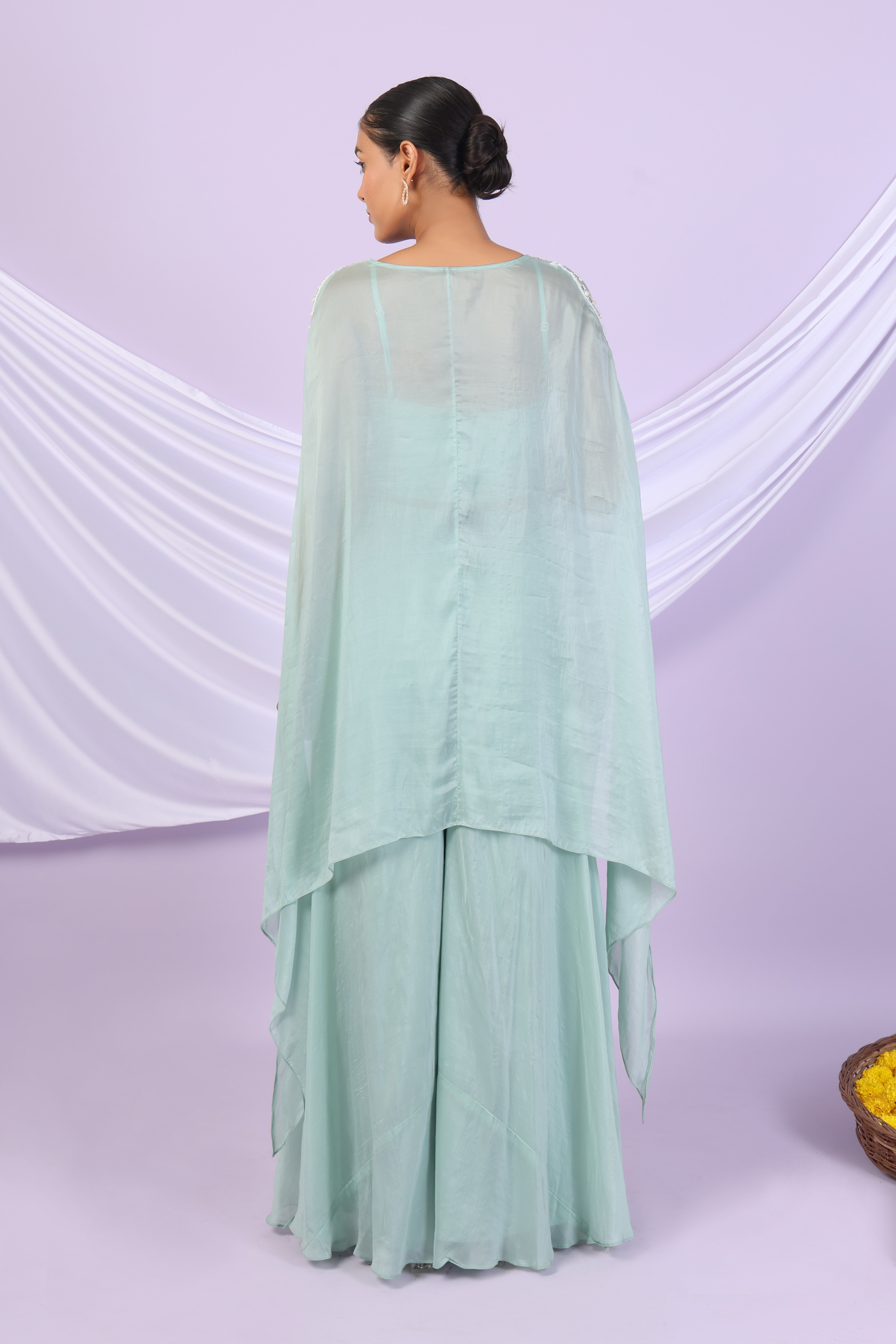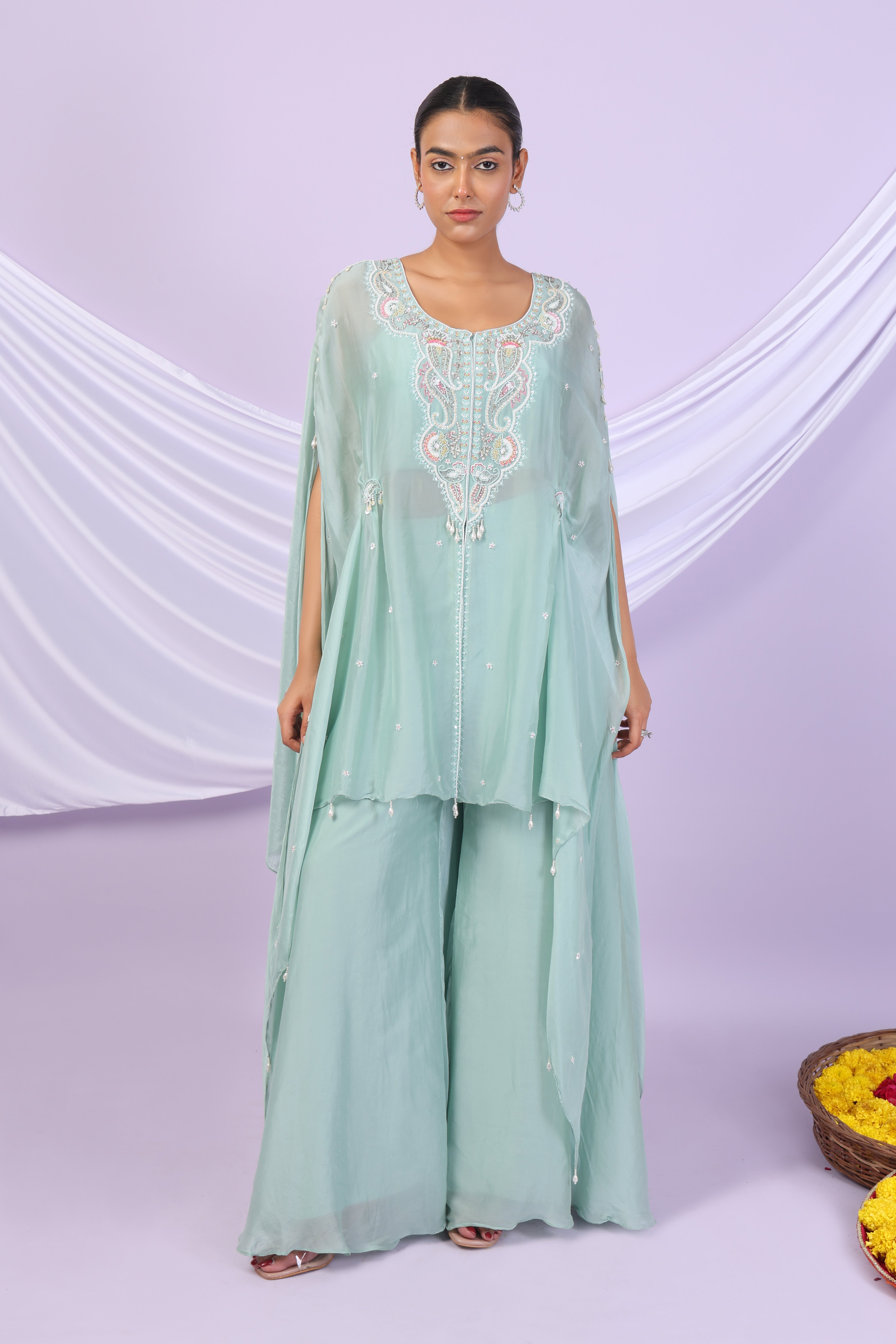 This three-piece sharara set is simply stunning! The pastel mint color is so soothing and perfect for daytime events. The embroidery on the kurta adds a touch of elegance, and the fabric is very comfortable to wear. I wore it for a festive brunch and it felt both classy and effortless. Got so many compliments – highly recommend this outfit for anyone who loves subtle yet graceful styles!