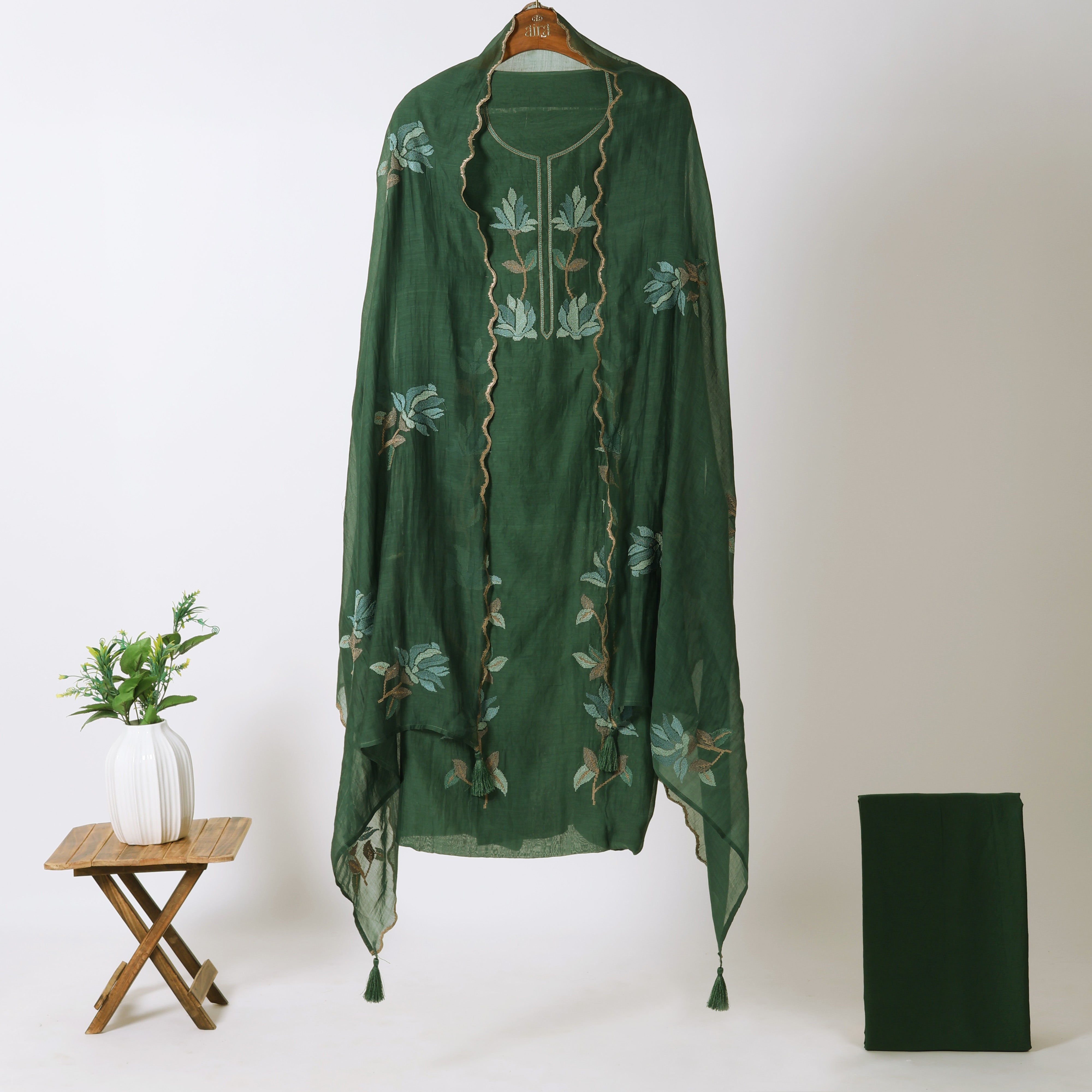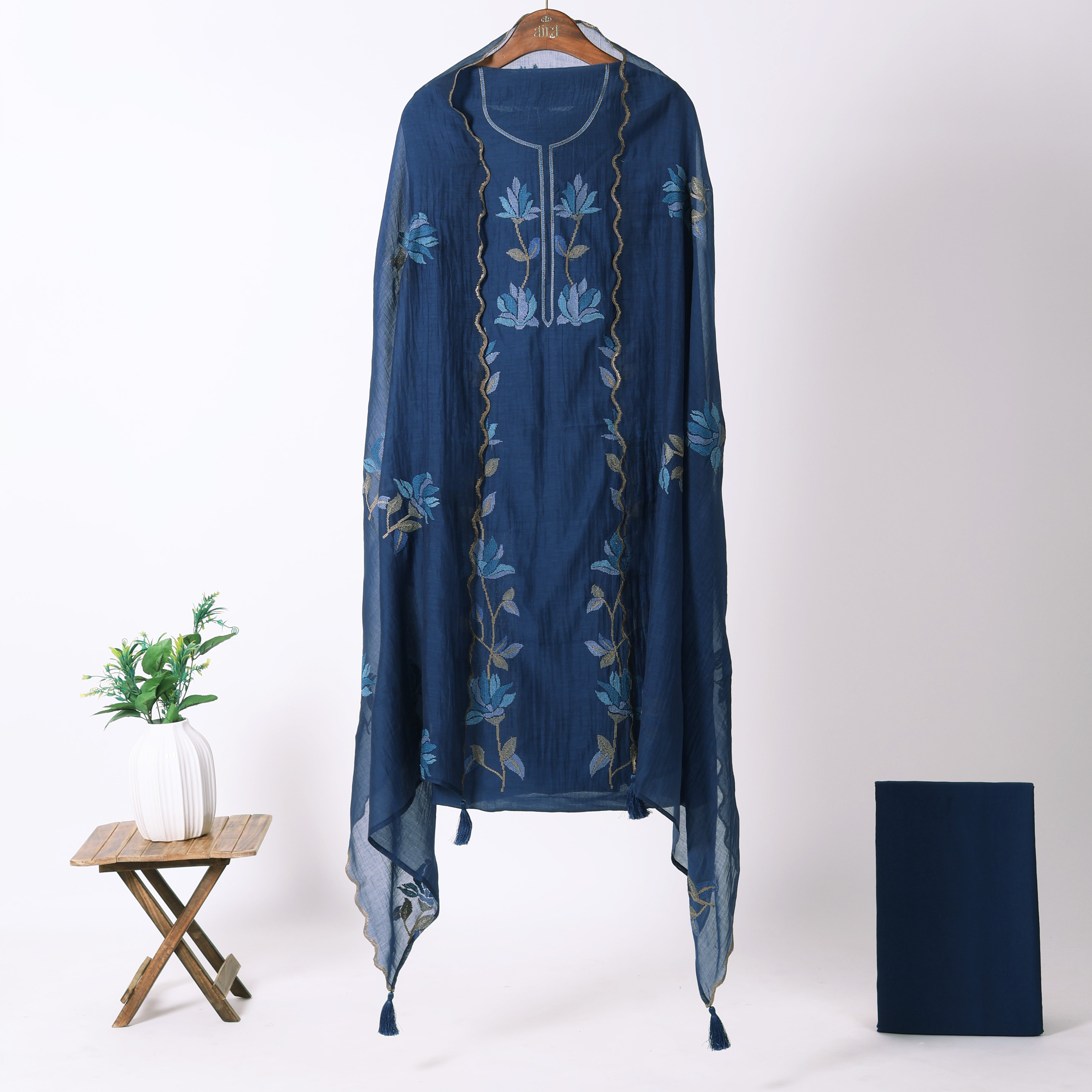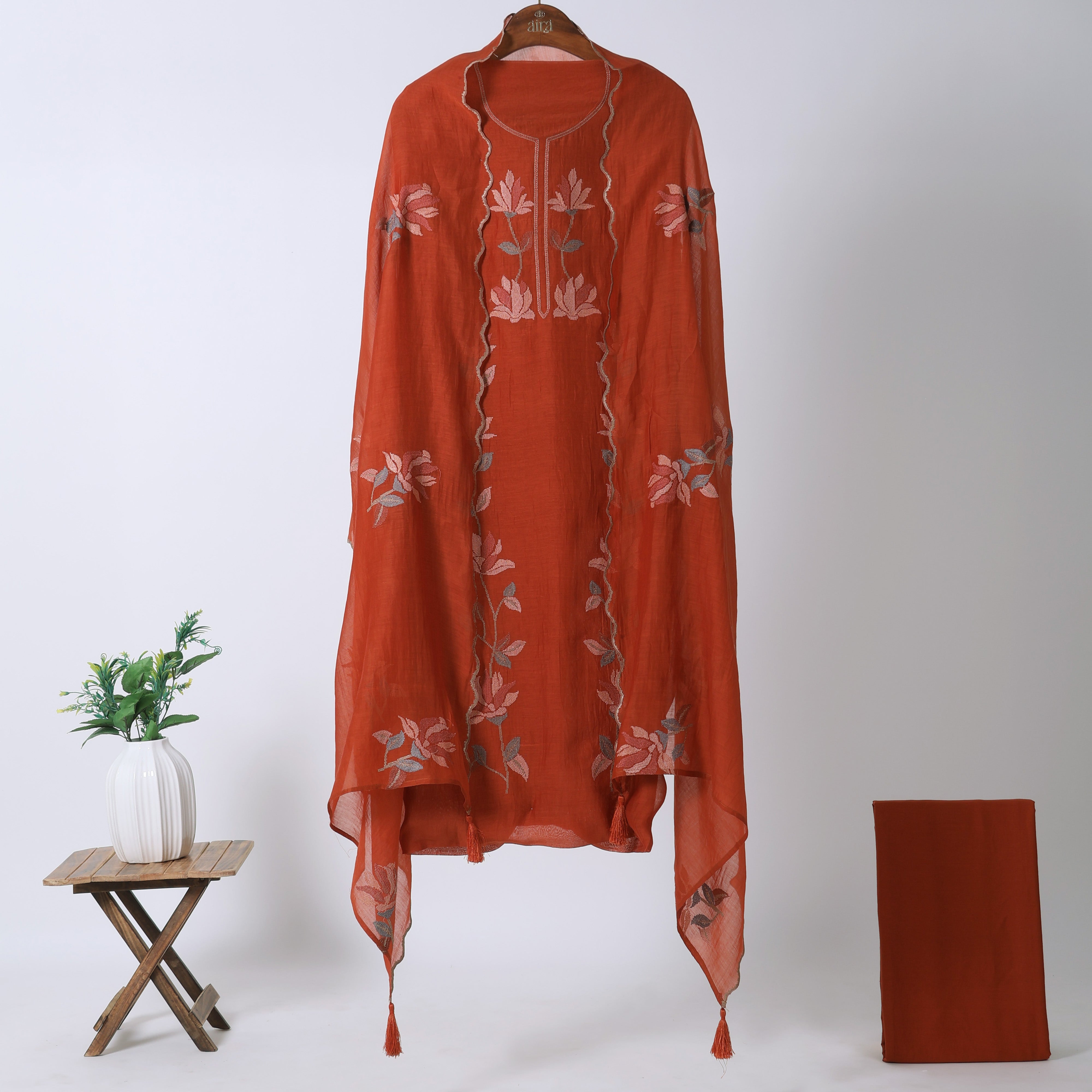 Accompanied by a coordinated dupatta showcasing subtle motifs or ornate borders and a matching bottom fabric, this ensemble lets you design your outfit to your perfect fit and style. Ideal for festive occasions, cultural gatherings, or elegant daytime events, this suit embodies classic sophistication and effortless grace.