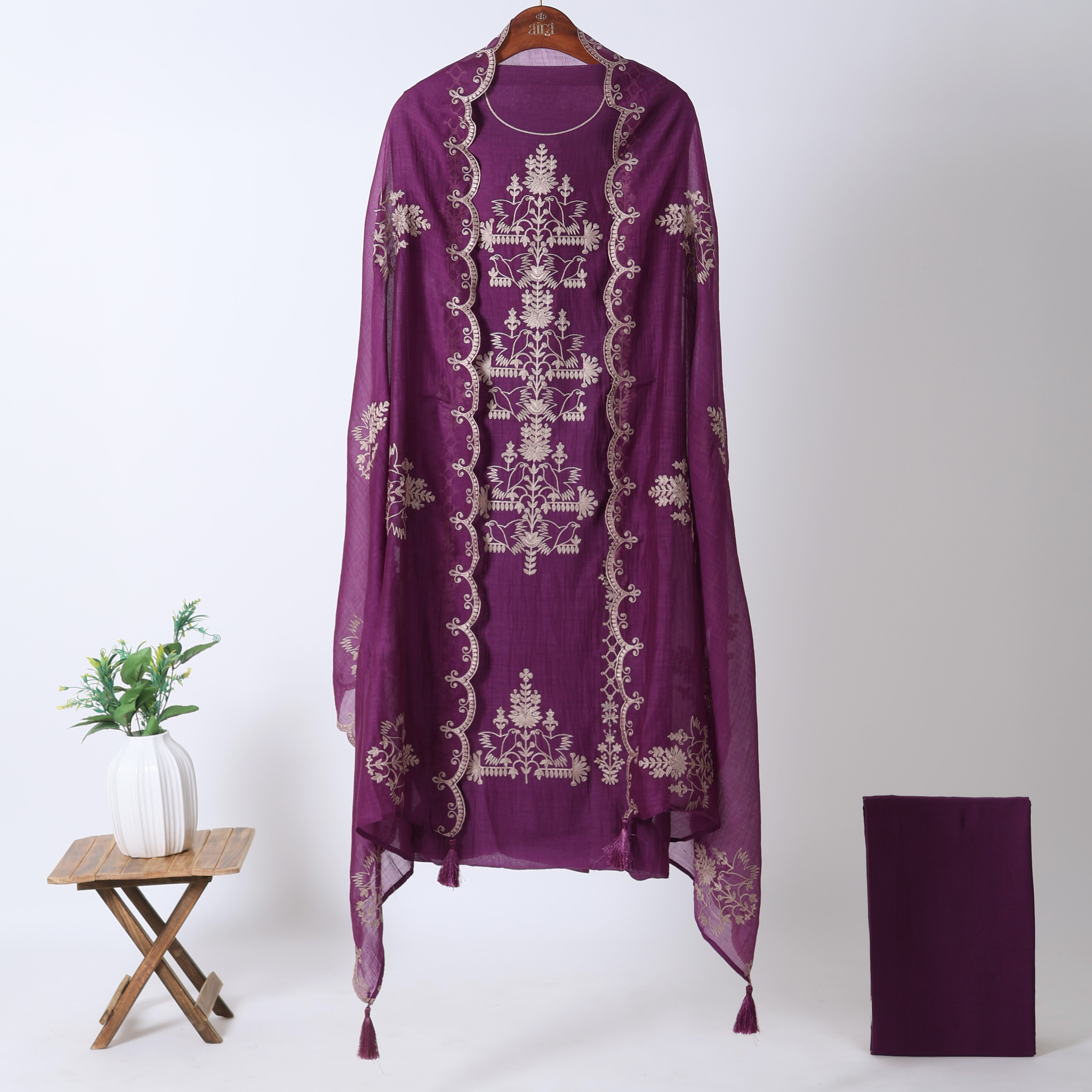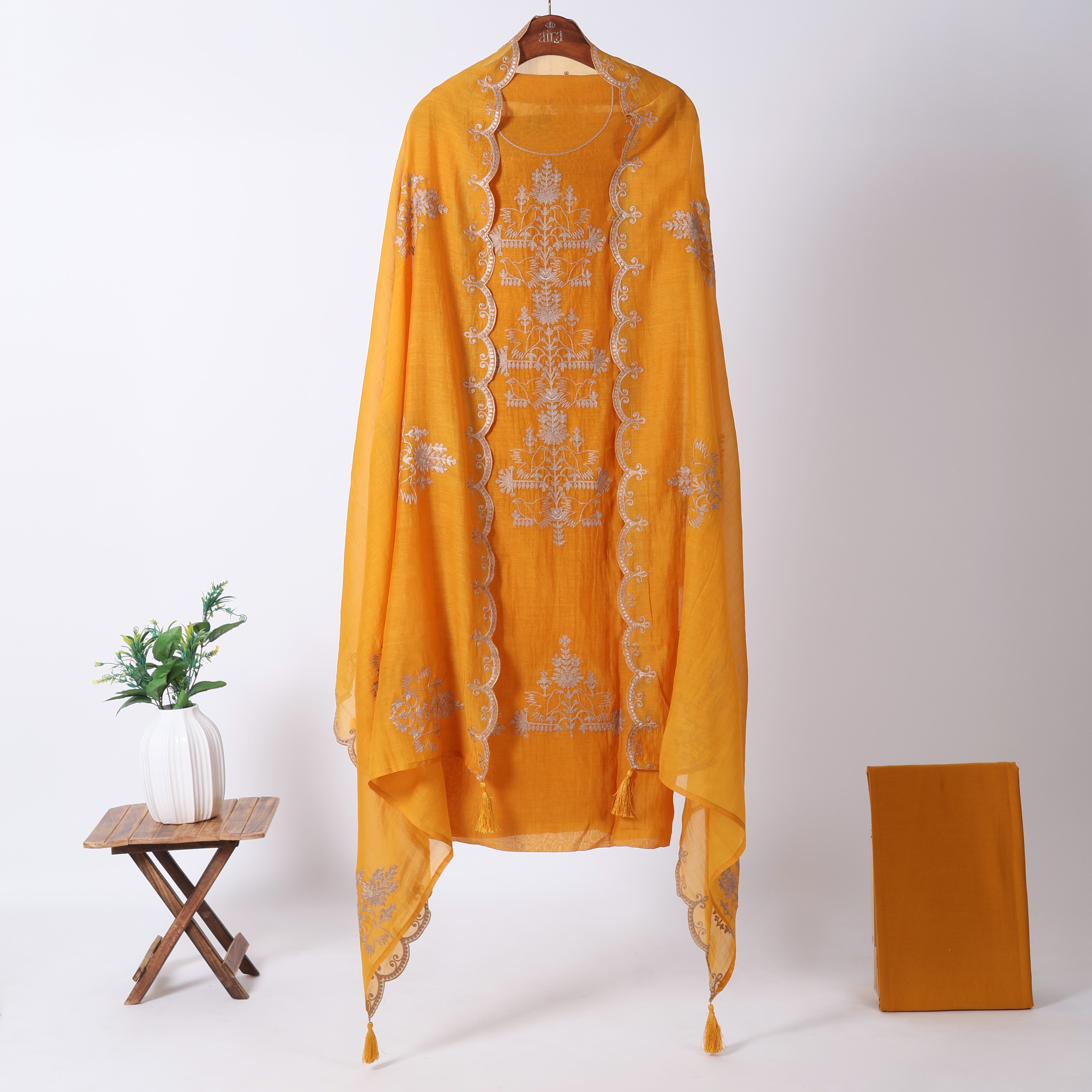 Refresh availabilityCrafted with timeless elegance, this Unstitched Chanderi Suit reflects the charm of Indian tradition and sophistication. Made from premium Chanderi fabric, it features a delicate sheen and a soft, breathable texture perfect for all seasons. The suit comes with intricate weaving or embroidery details that add grace and richness to your ethnic wardrobe.