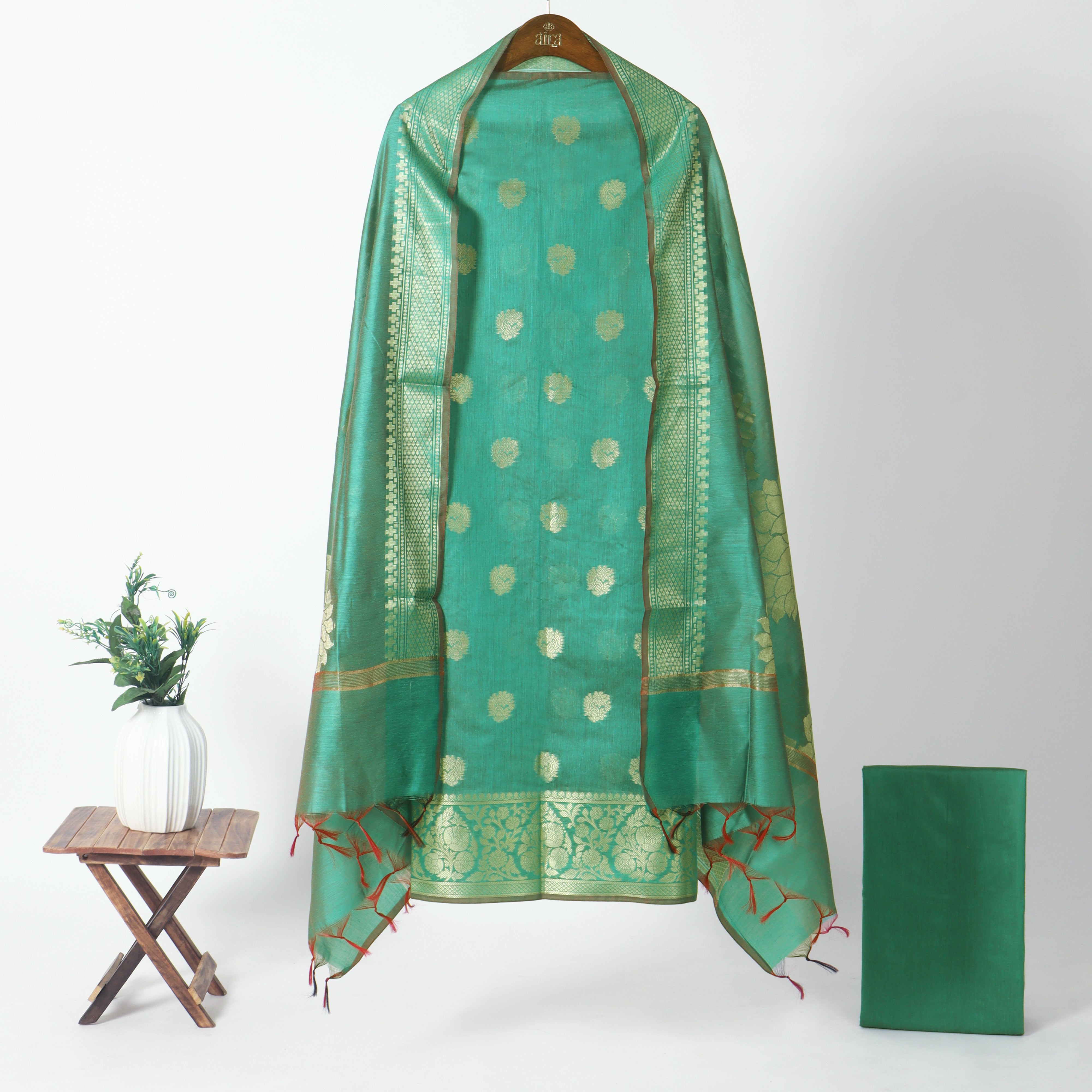 Refresh availabilityExperience timeless elegance with our Unstitched Chanderi Suit, crafted to reflect grace and refined ethnic charm. Made from premium Chanderi fabric, this suit features a luxurious texture with a natural sheen, offering a perfect blend of comfort, tradition, and sophistication.