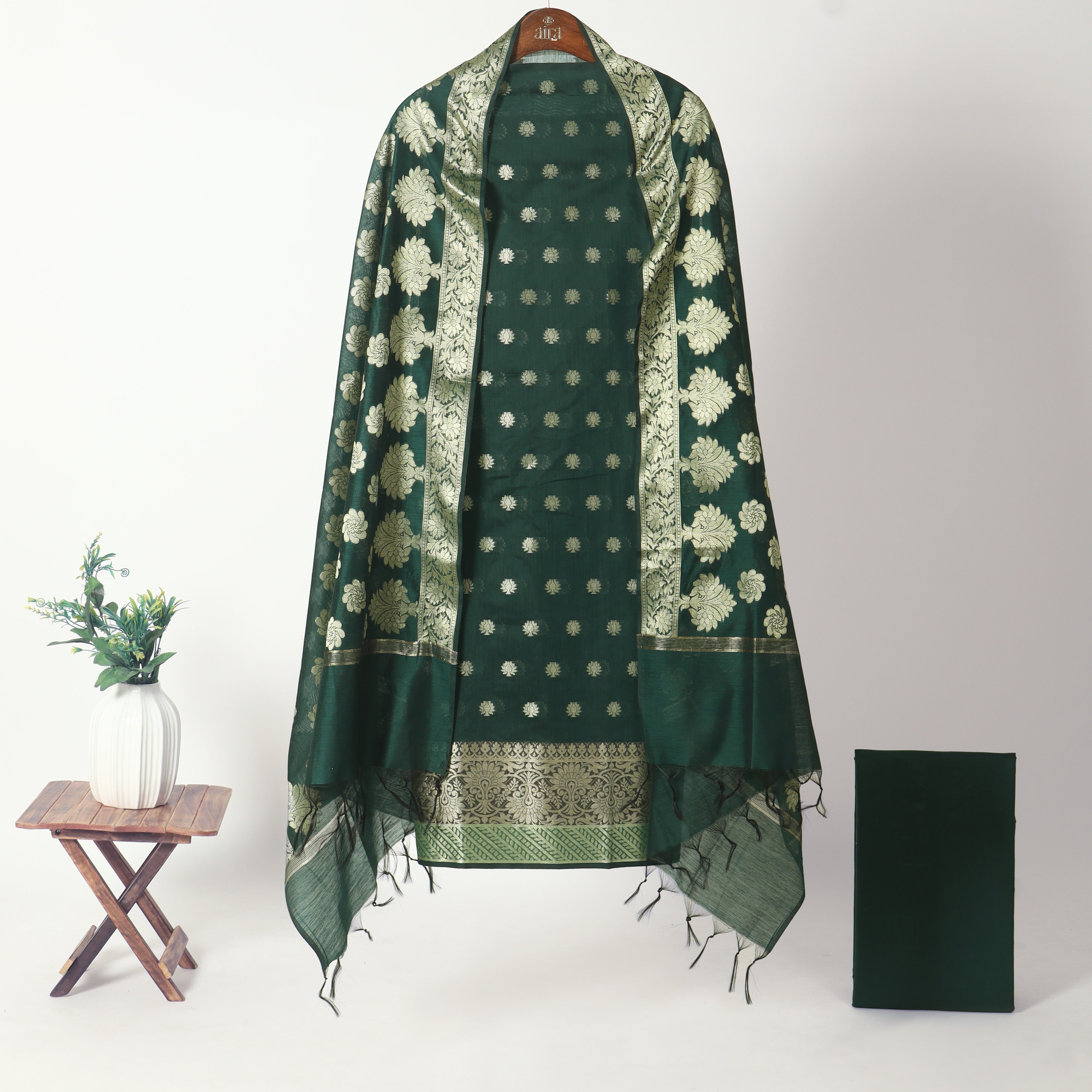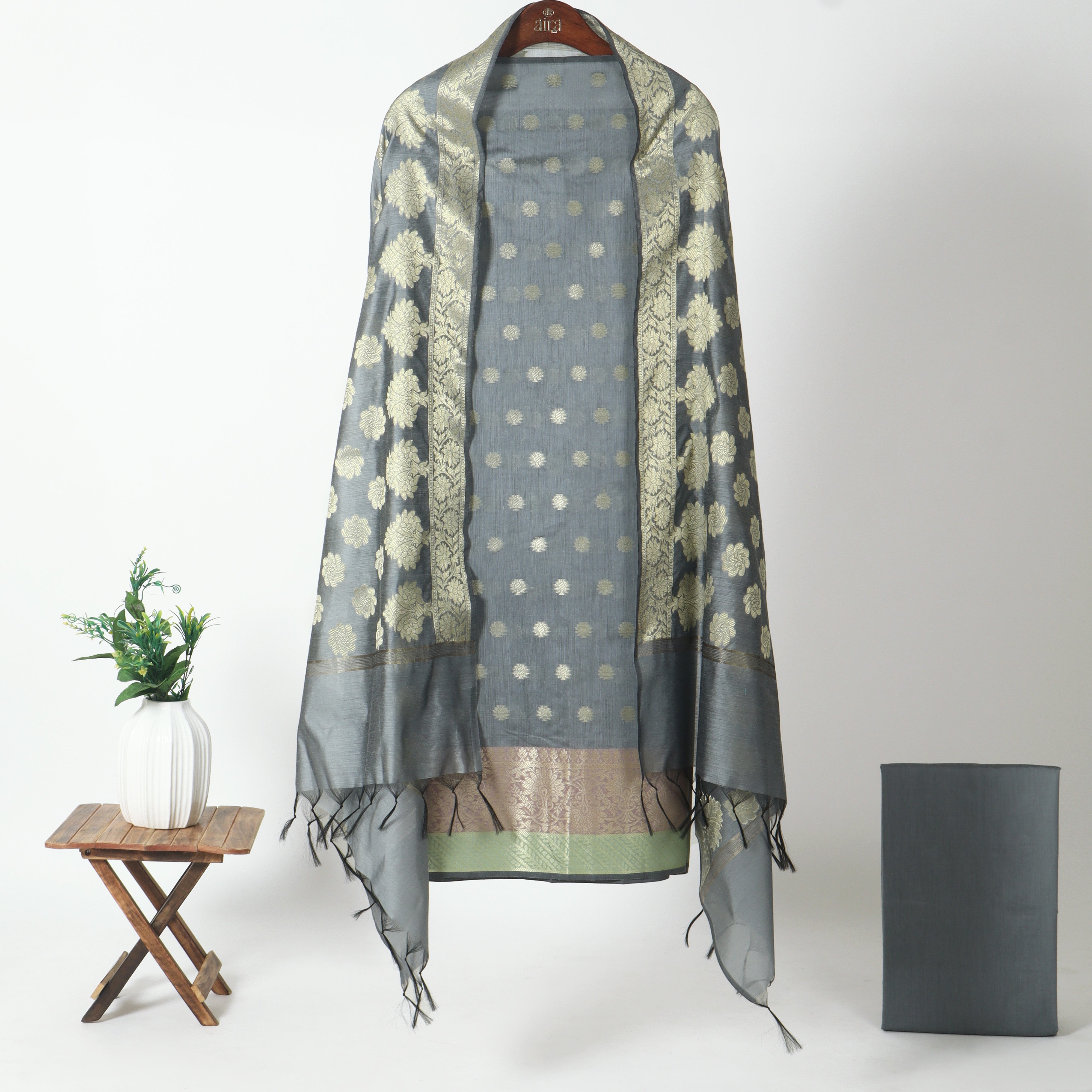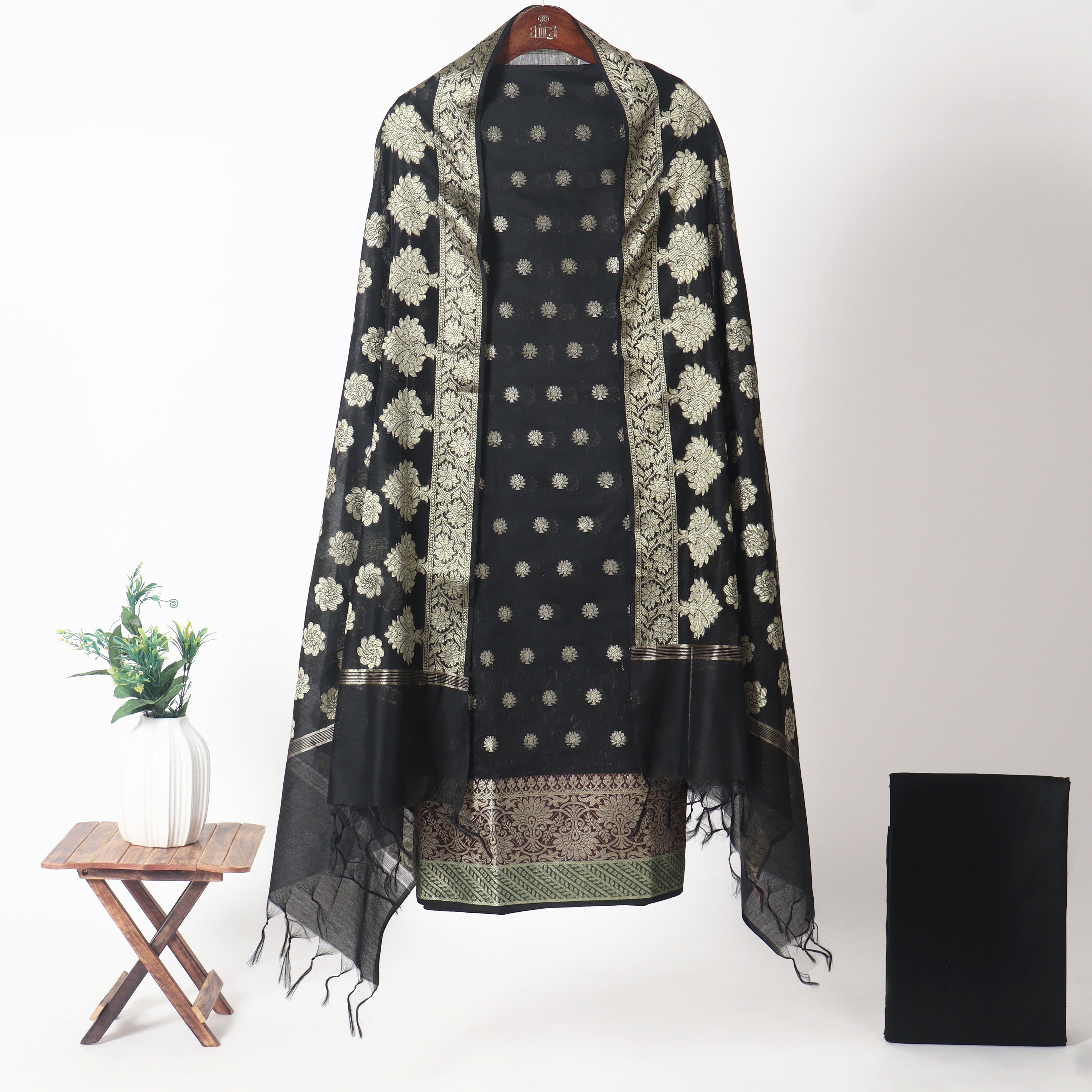 Refresh availabilityElevate your ethnic wardrobe with our Unstitched Chanderi Suit, known for its lightweight feel, natural sheen and graceful fall. Crafted from premium Chanderi fabric, this ensemble offers a perfect blend of traditional charm and modern elegance, making it ideal for festive occasions, family functions and celebratory gatherings.