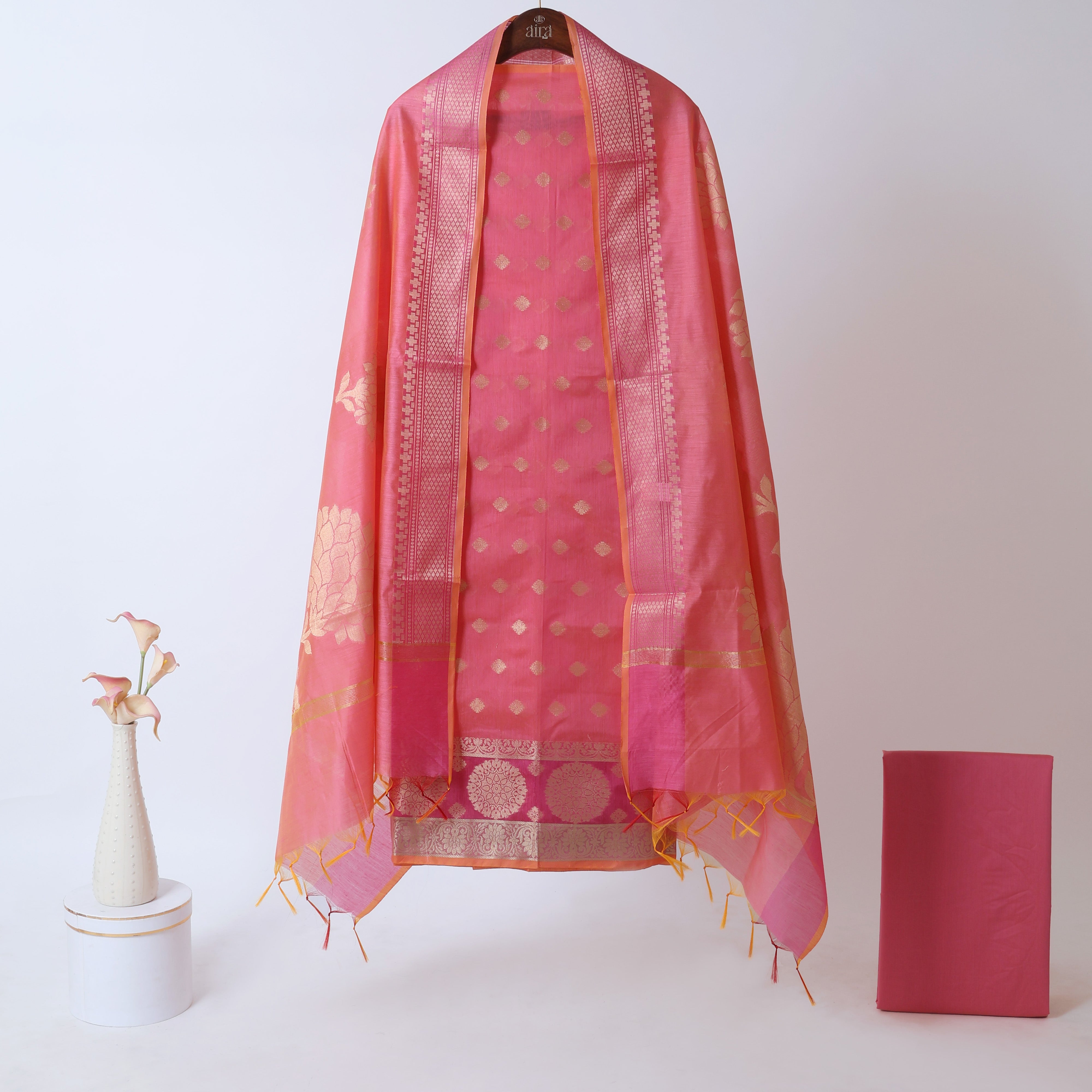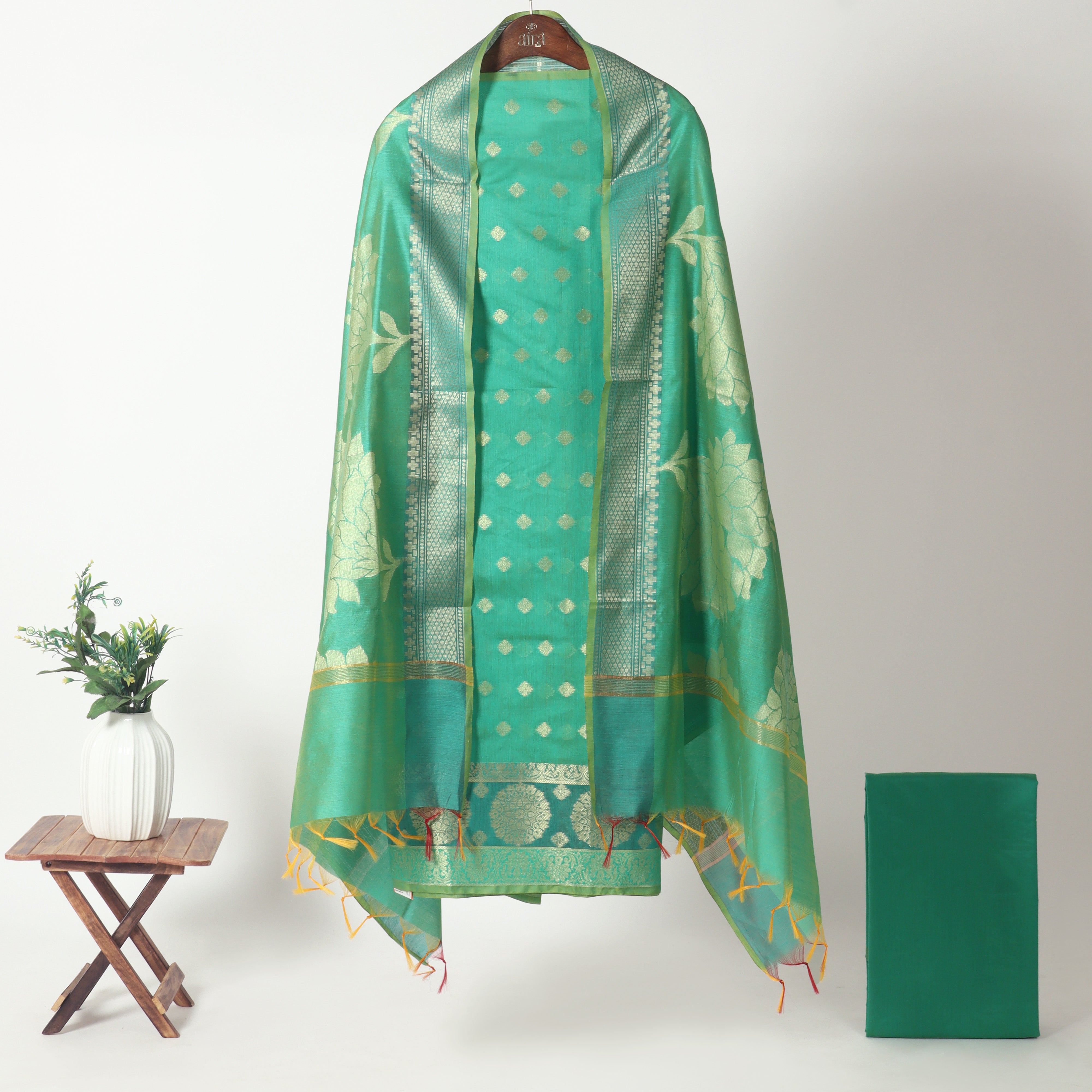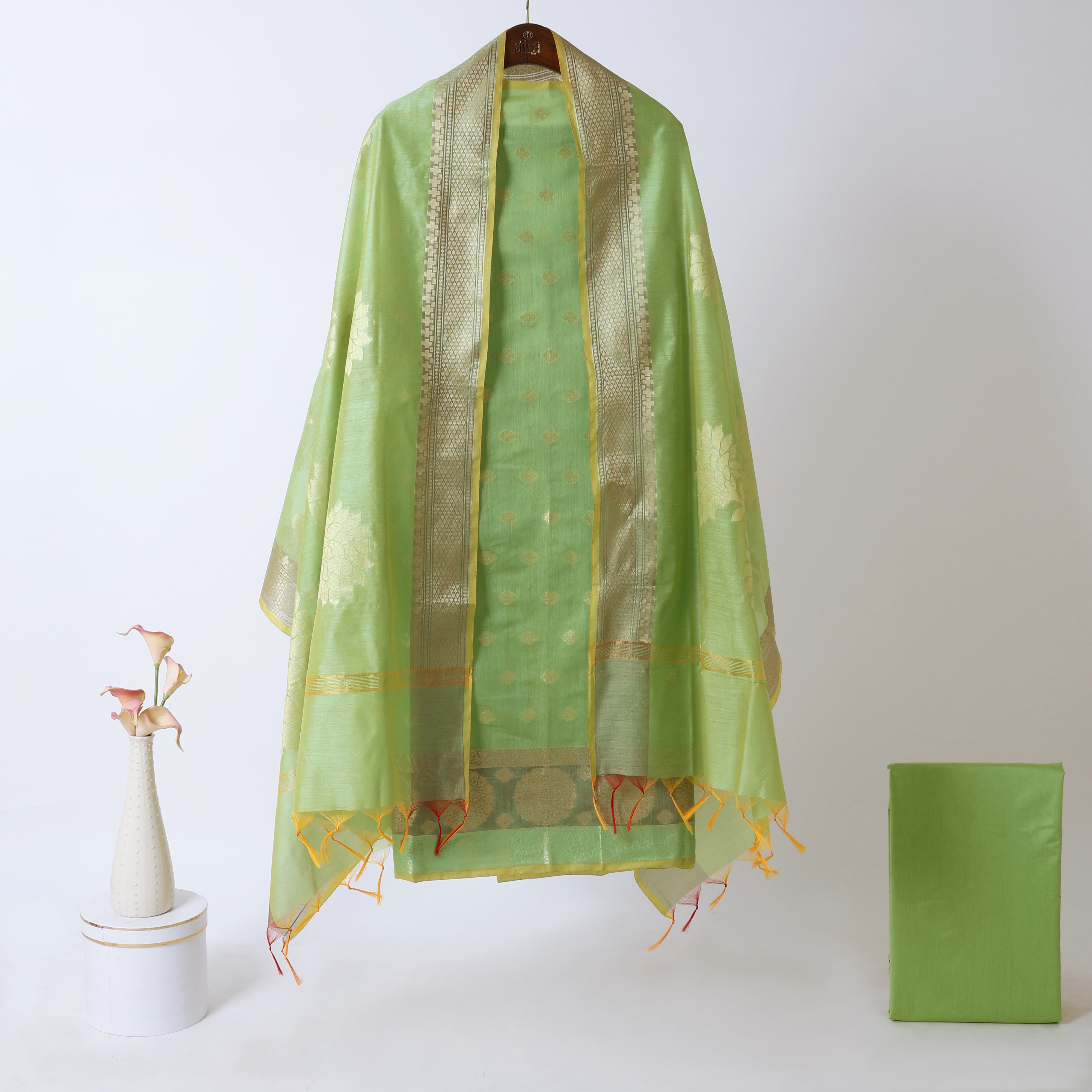 Refresh availabilityDiscover timeless elegance with our Unstitched Chanderi Suit, crafted from premium Chanderi fabric known for its lightweight feel and natural lustre. The fabric drapes beautifully, offering a graceful fall and a rich ethnic appeal that is perfect for festive gatherings, traditional ceremonies and special occasions.