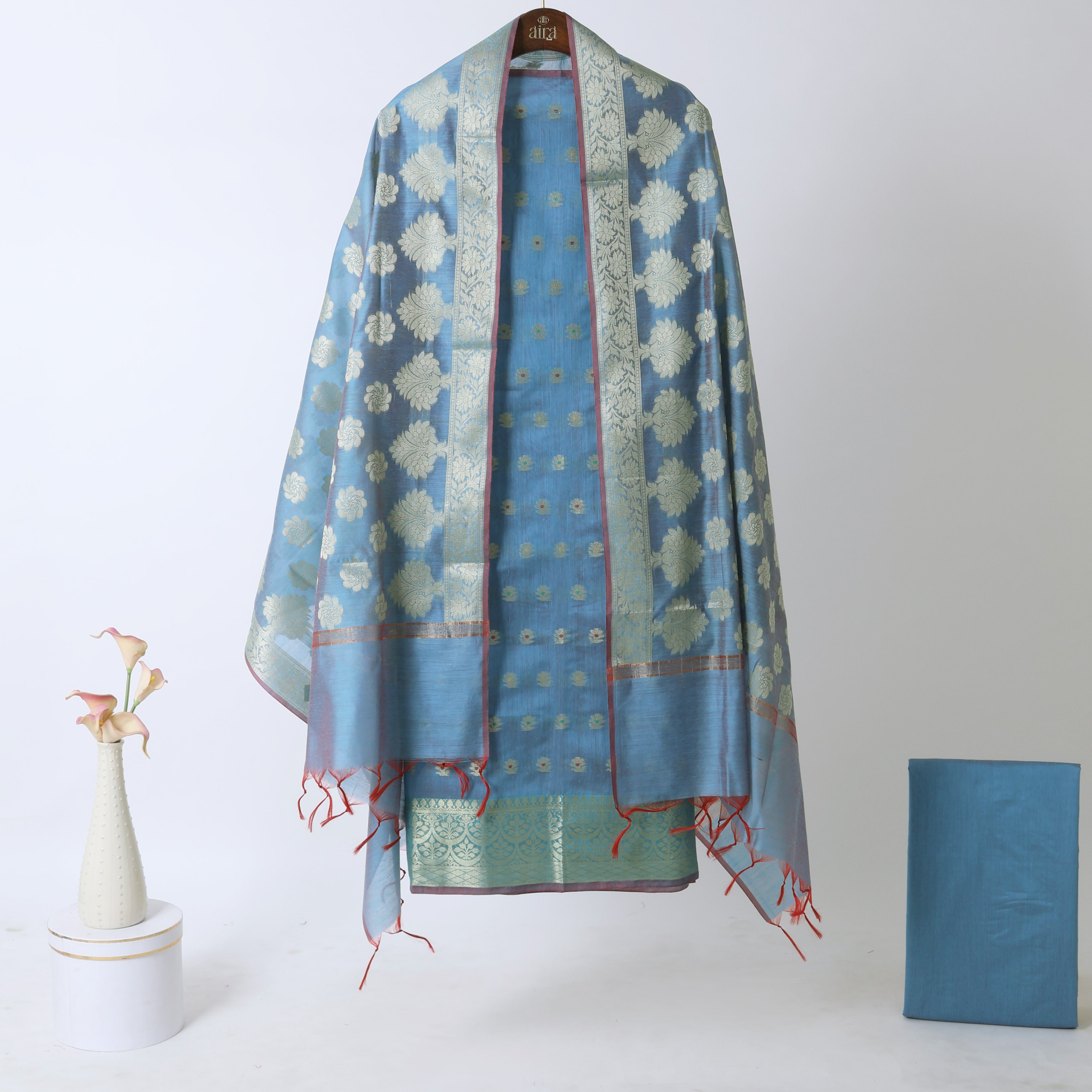 Refresh availabilityElevate your ethnic wardrobe with our elegant Unstitched Chanderi Suit, known for its subtle sheen and graceful drape. Crafted from premium Chanderi fabric, this ensemble beautifully blends traditional craftsmanship with timeless charm. The soft texture ensures comfort, while the intricate weaving and light shimmer add a touch of sophistication. Perfect for festive occasions, casual gatherings, or traditional celebrations — stitch it your way to create a look that reflects your unique style.