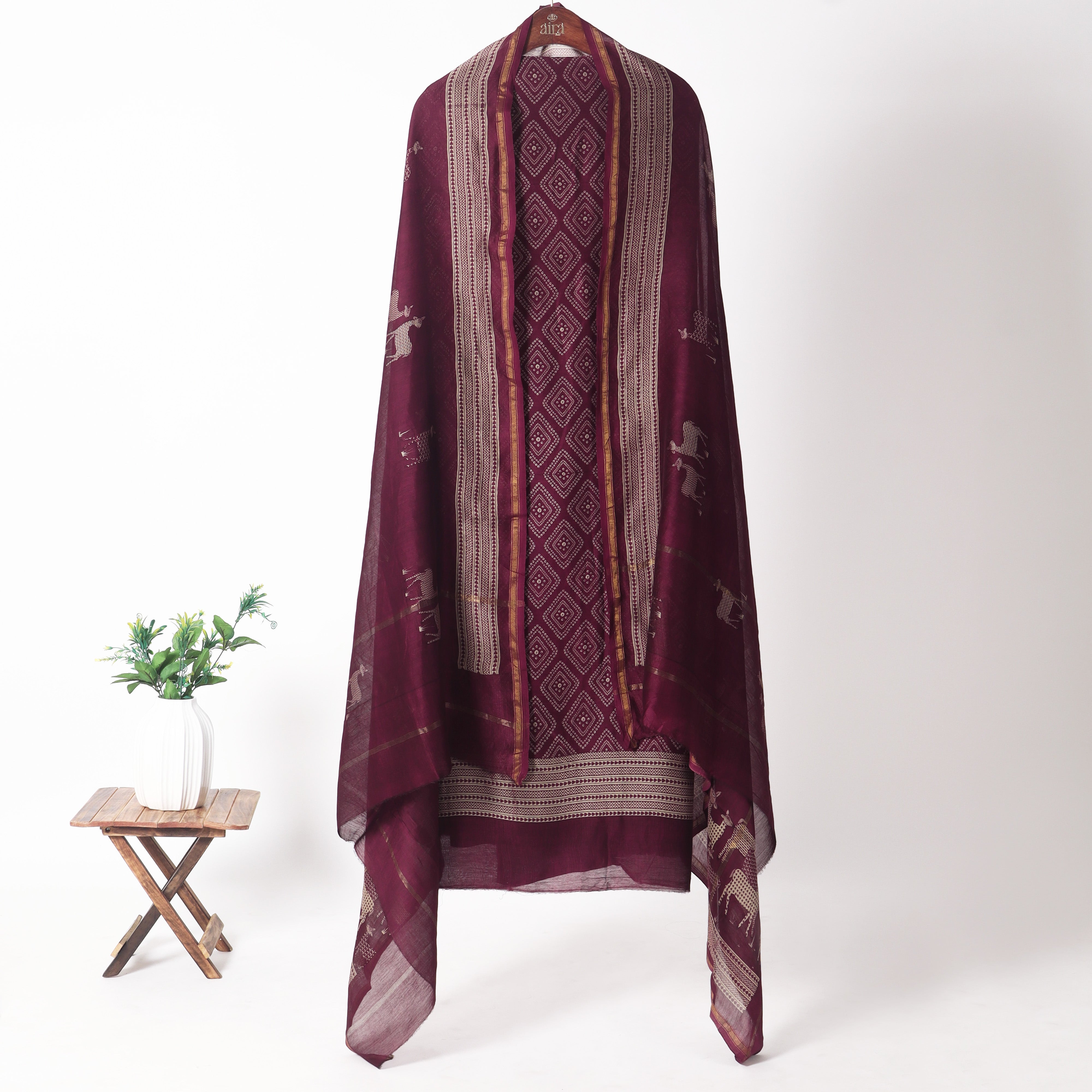 Refresh availabilityA graceful and elegant Unstitched Chanderi Suit designed to bring a soft festive glow to your look. The lightweight fabric offers a comfortable feel with a refined sheen, making it perfect for both day and evening occasions. Comes with a matching bottom and dupatta for a complete, tailor-ready ensemble.