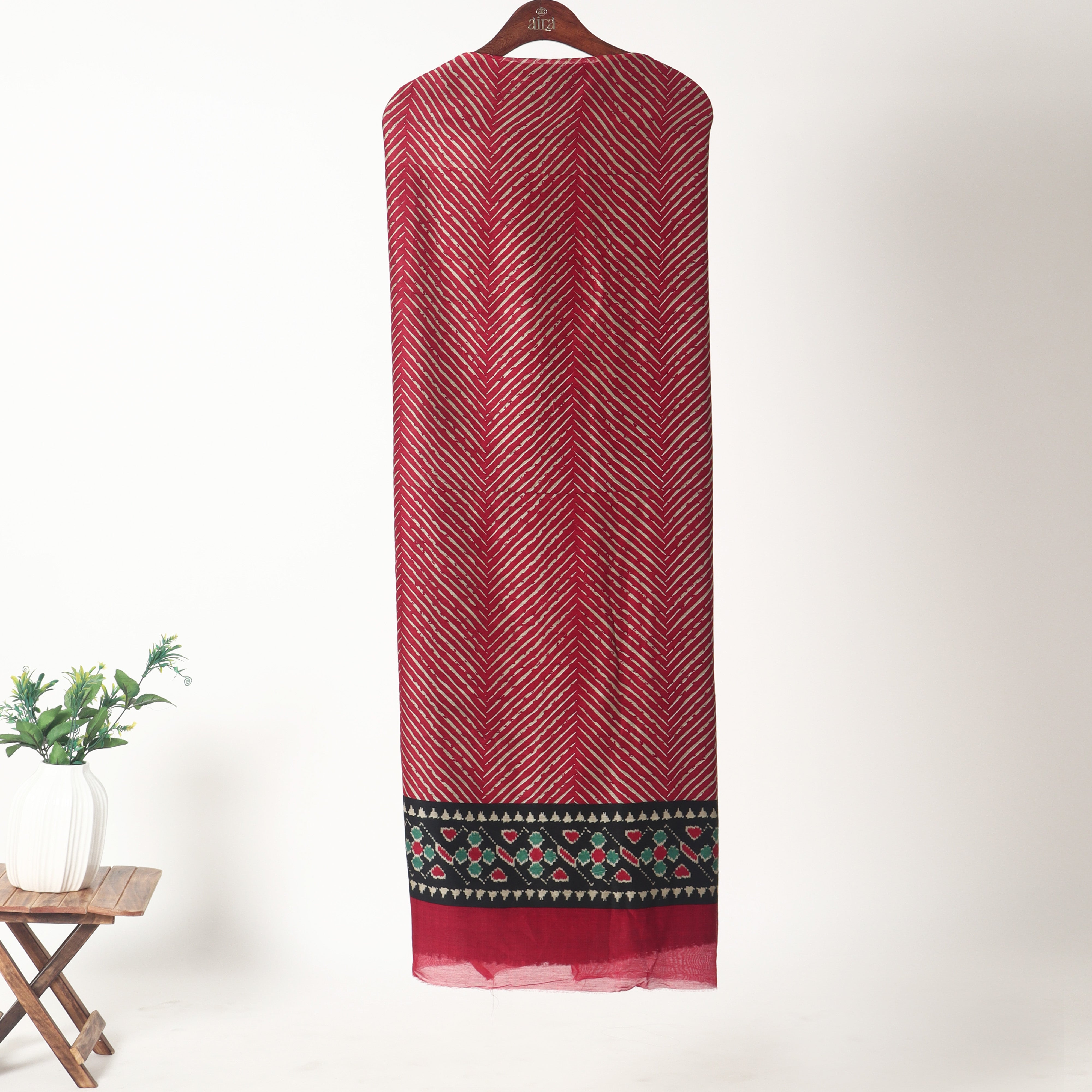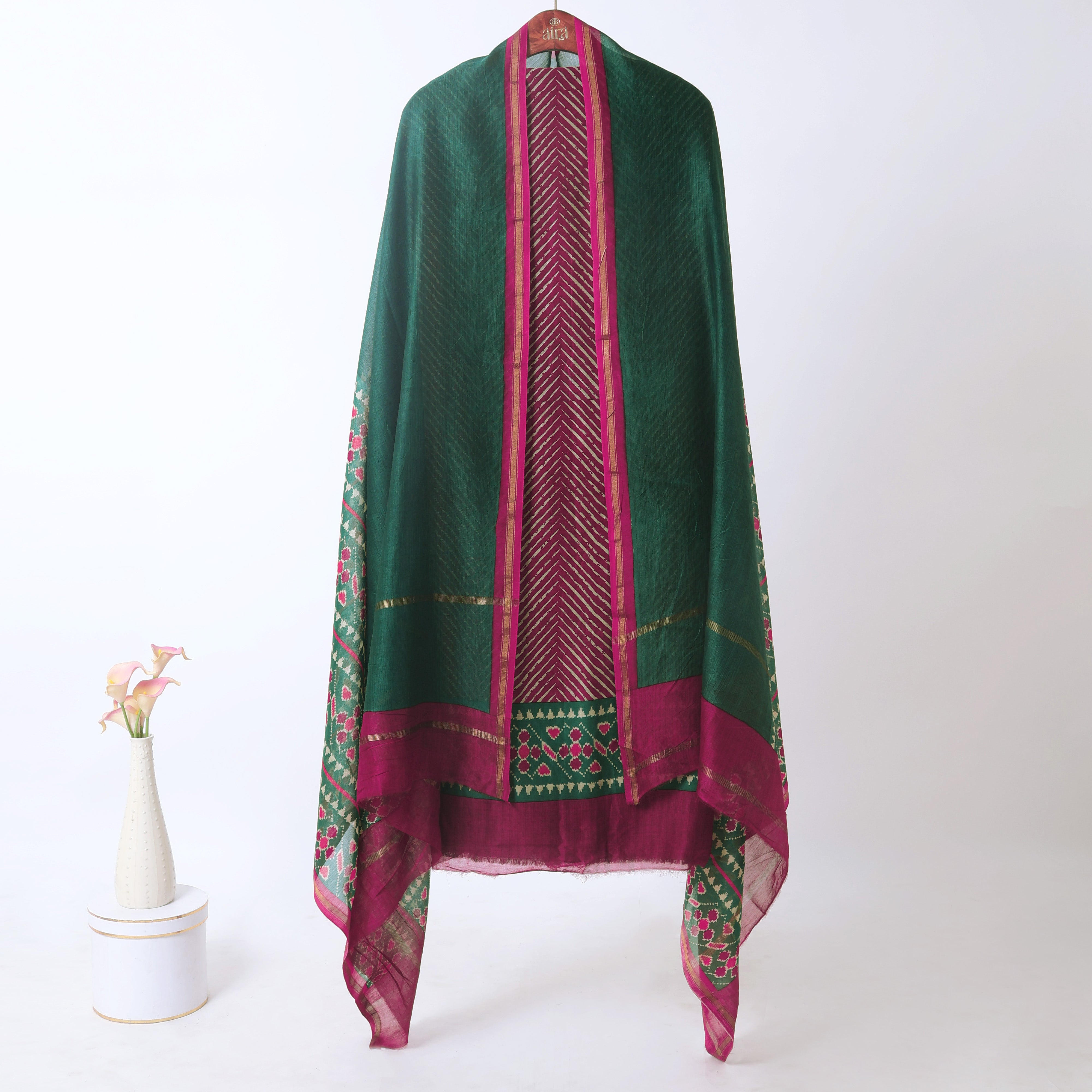 Refresh availabilityThis Unstitched Chanderi Suit is crafted in a soft, lightweight fabric that offers a natural sheen and a graceful look. Easy to carry and comfortable for all-day wear, it comes with a matching bottom and dupatta, allowing you to tailor it to your perfect fit. Ideal for festive and traditional occasions where elegance speaks softly.