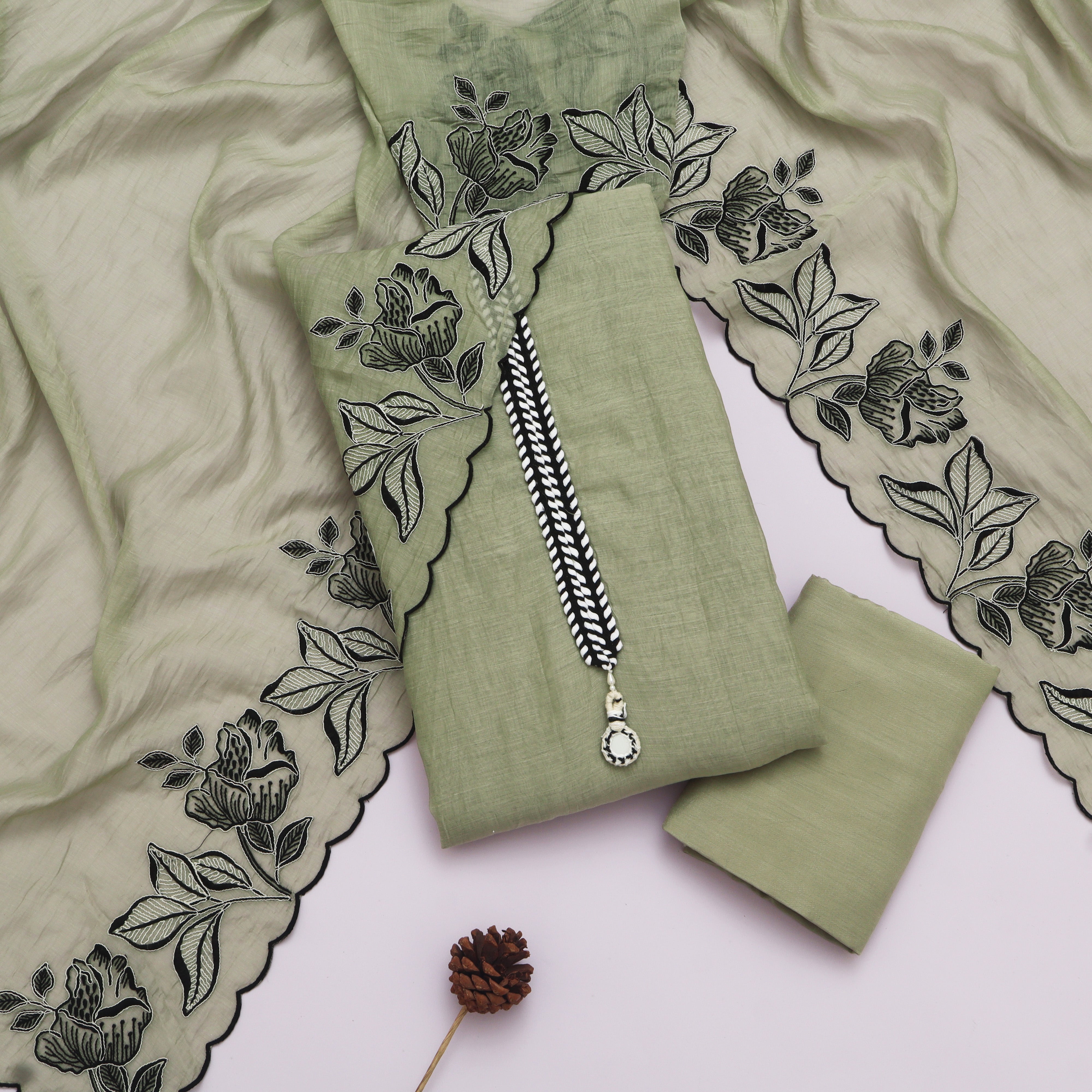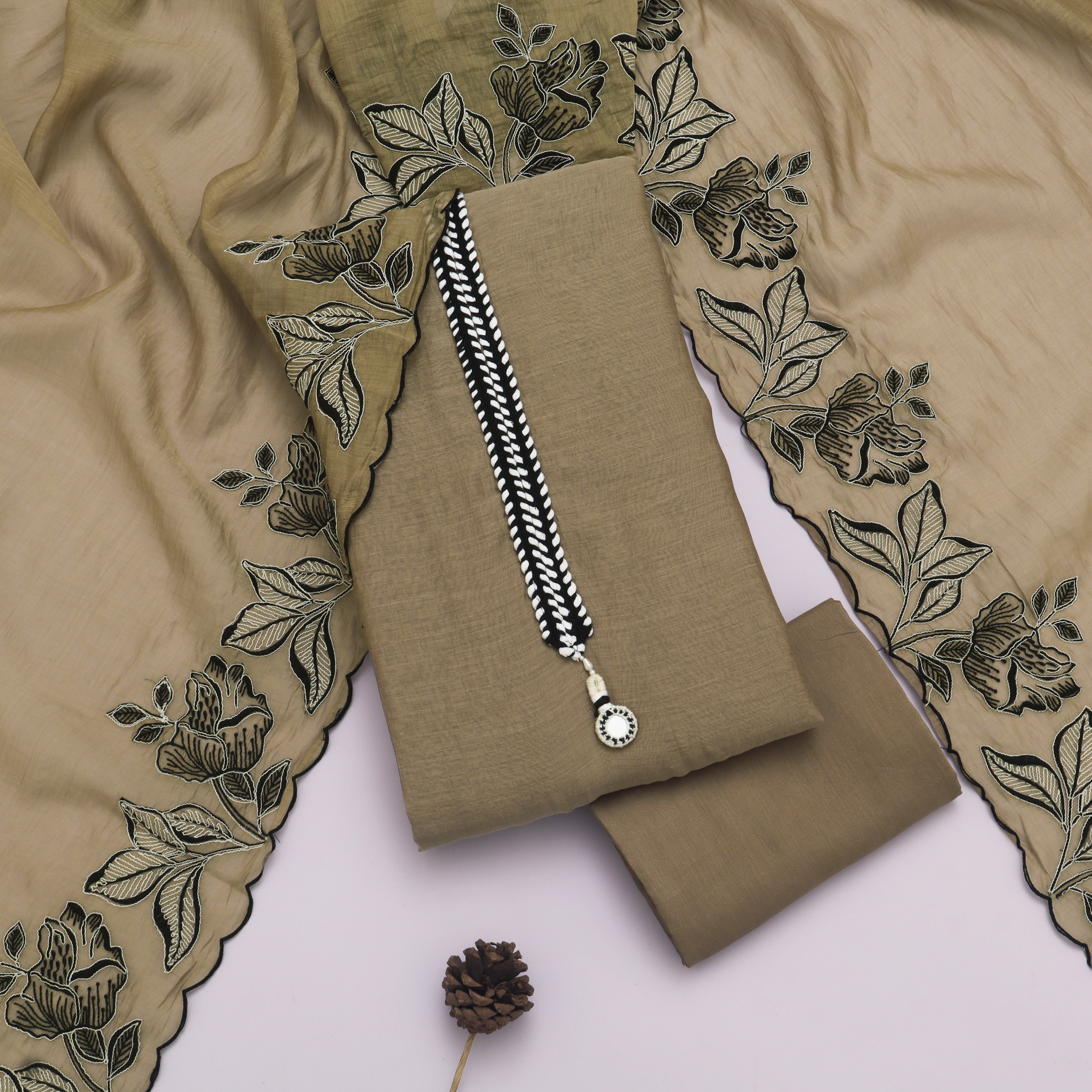 Refresh availabilityCrafted from premium Chanderi fabric, this unstitched suit offers remarkable breathability and a subtle sheen, making it ideal for creating elegant, customized attire. Its lightweight texture ensures comfort throughout the day while retaining durability. Perfect for tailoring to your precise measurements, this fabric lends itself well to both traditional and contemporary styles, providing versatility for various occasions. Elevate your wardrobe with this sophisticated foundation for a personalized ensemble that reflects expert craftsmanship.