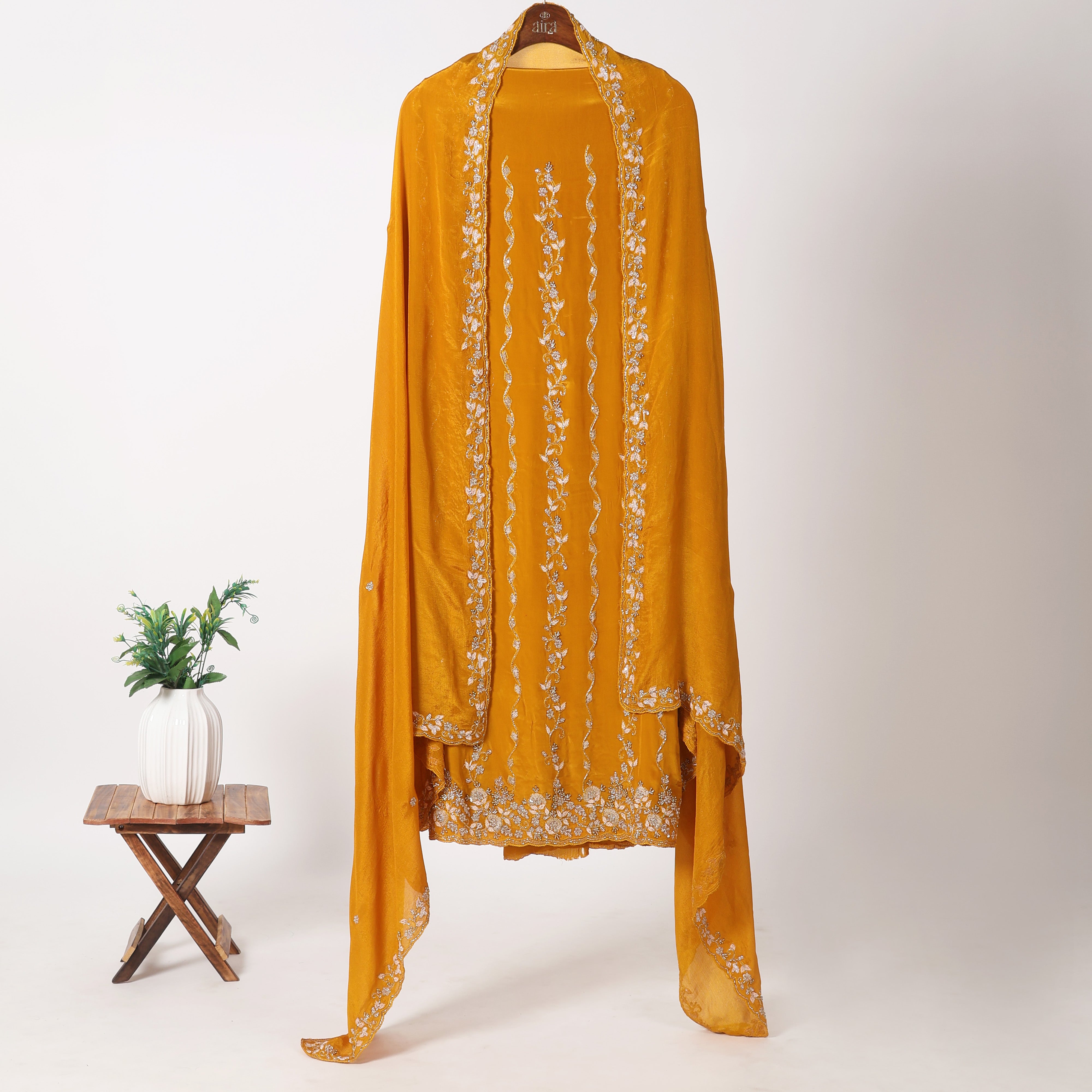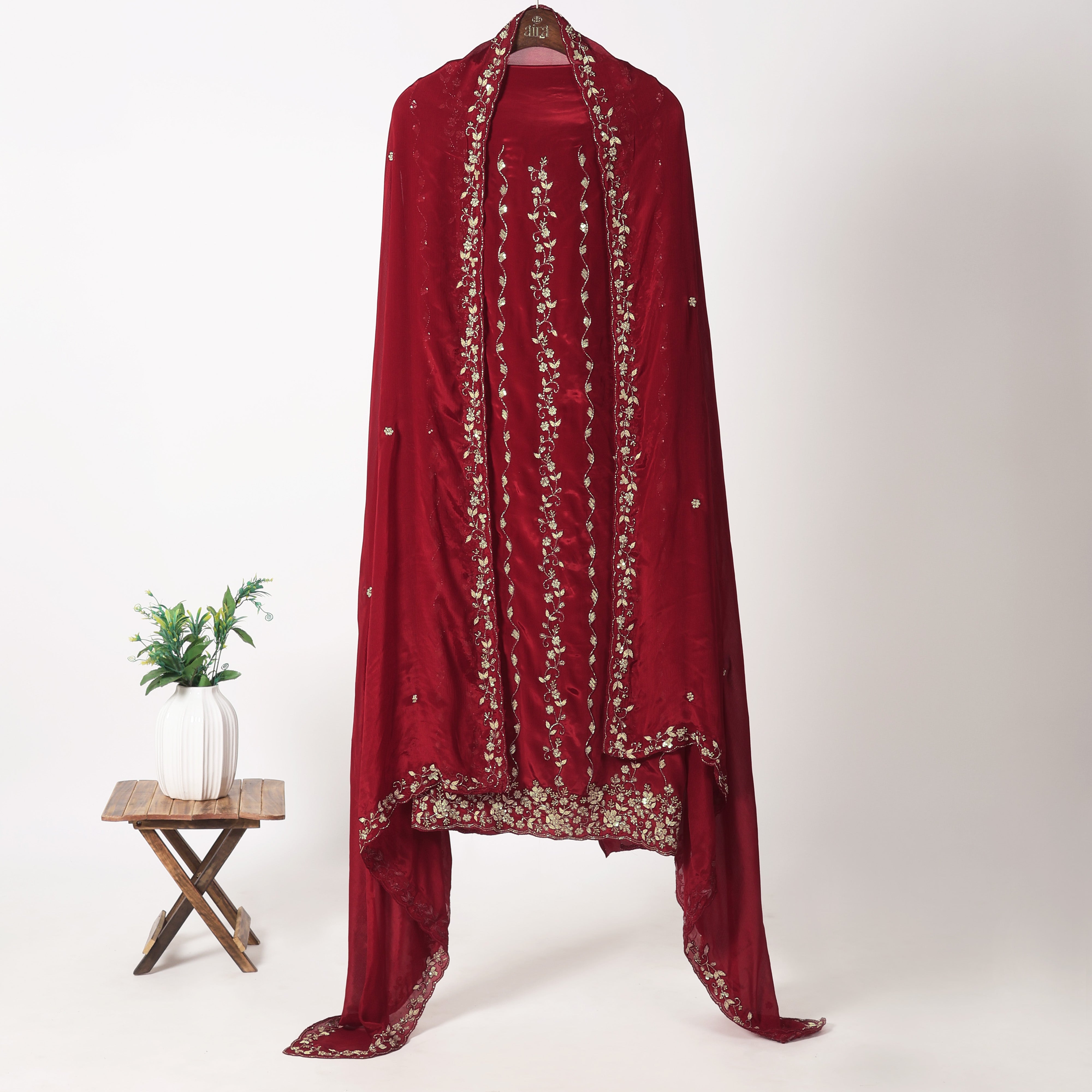 Refresh availabilityUpgrade your wardrobe with this Unstitched Crepe Suit, crafted from soft and smooth crepe fabric. The lightweight material drapes beautifully, offering all-day comfort and a refined look. Perfect for daily wear, office styling, and casual outings, this unstitched set lets you tailor it to your ideal fit and design.