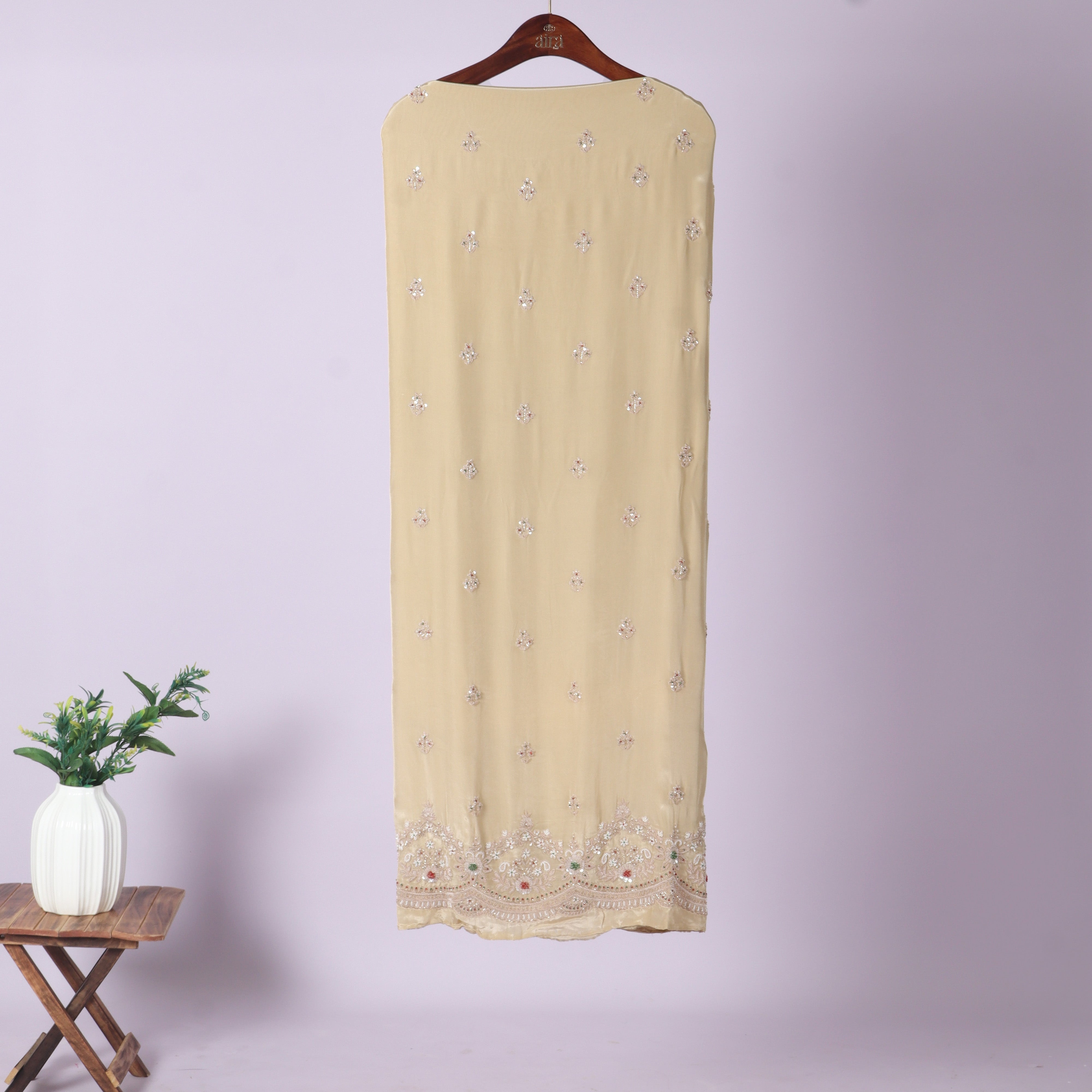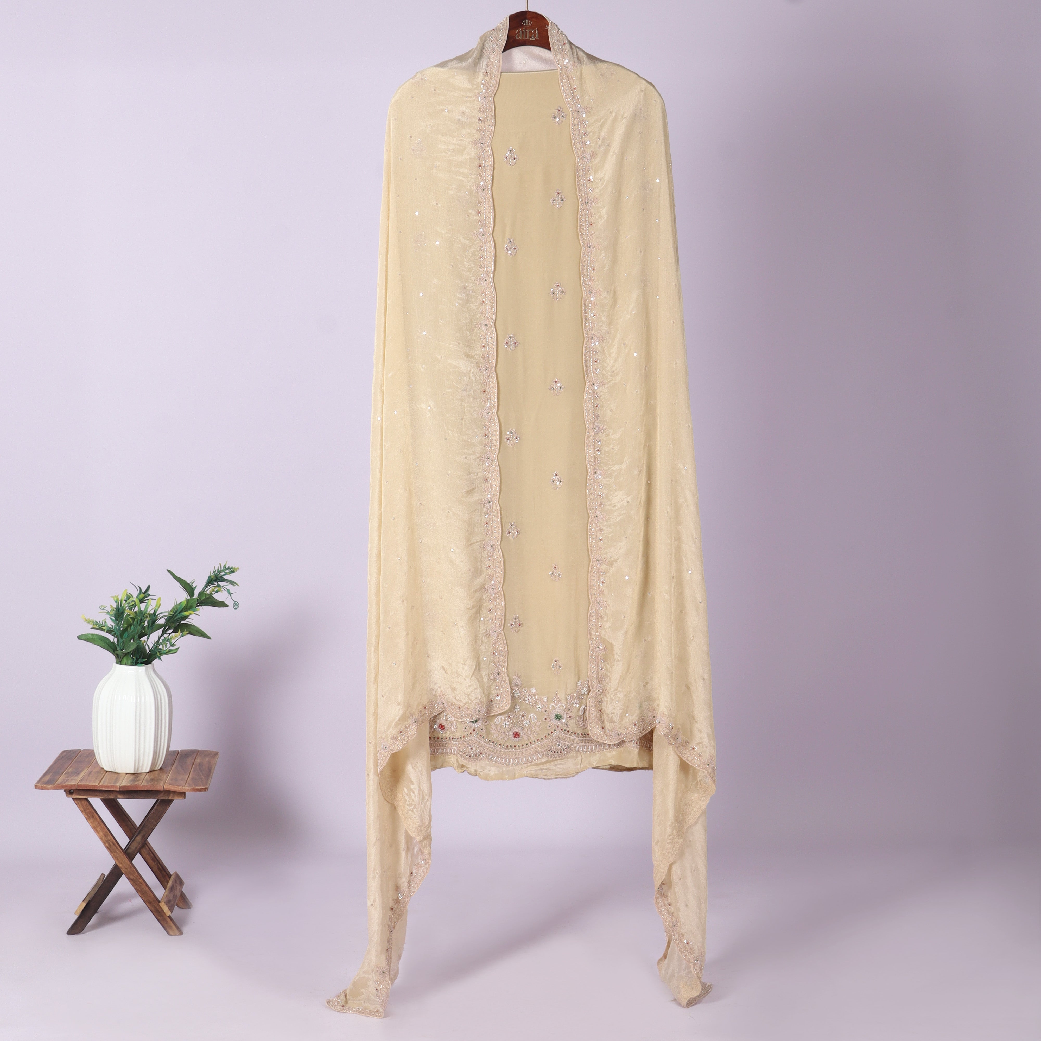 Refresh availabilityCrafted from luxuriously soft crepe, this unstitched suit brings a graceful fall and a refined texture that feels effortlessly stylish. The fabric drapes beautifully, offering a fluid silhouette once stitched, making it ideal for both casual elegance and festive dressing. With its lightweight feel and smooth finish, this crepe suit lets you customise your look with ease—be it a contemporary style or a traditional charm. A perfect blend of comfort and sophistication, ready to be tailored into your signature outfit.