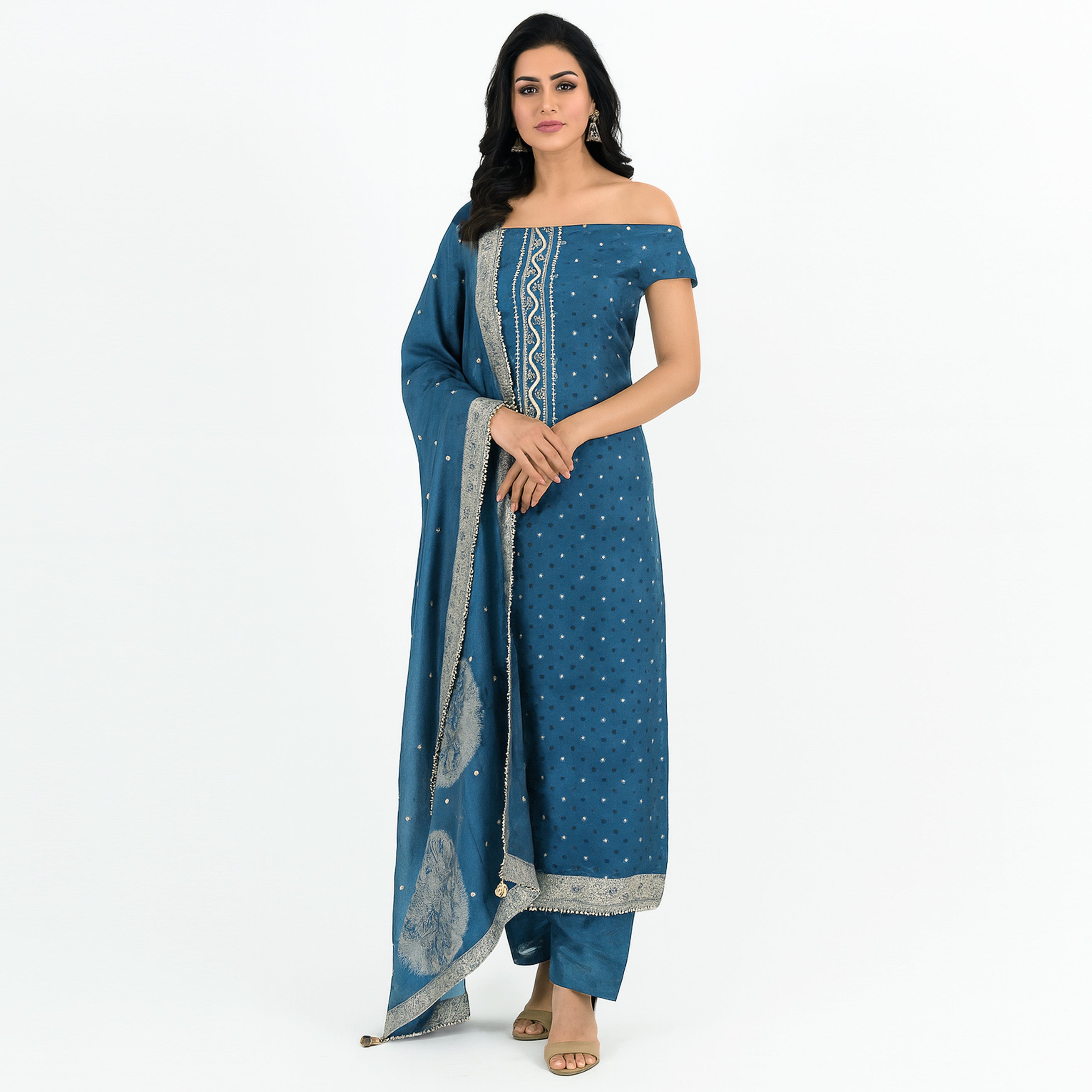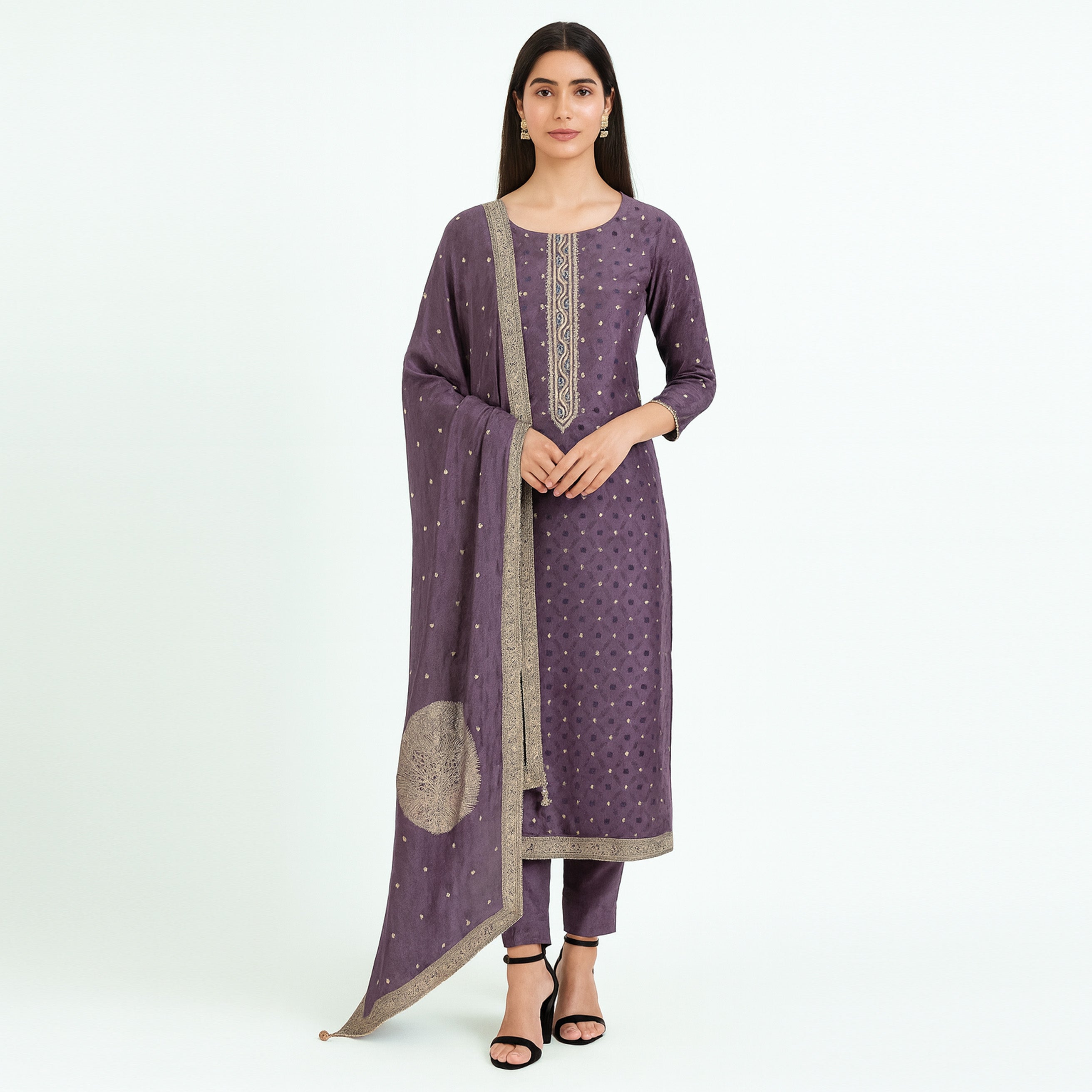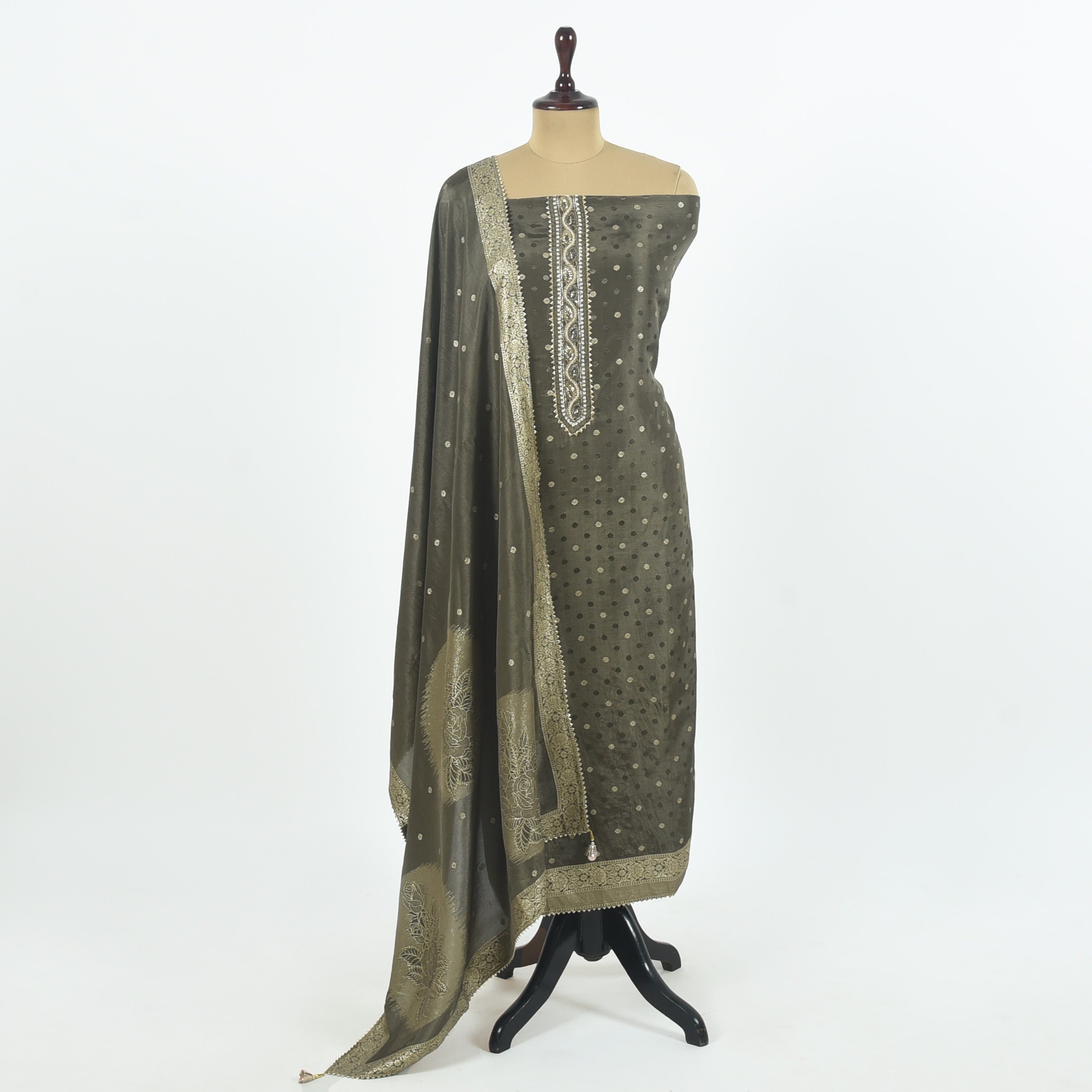 Refresh availabilityCrafted from premium Dola silk, this unstitched suit offers luxurious texture and subtle sheen, ideal for custom tailoring to your precise measurements. The breathable fabric ensures comfort while maintaining an elegant drape, suitable for festive or formal occasions. Perfect for those seeking a versatile, high-quality base to create a personalized ensemble with a refined finish.