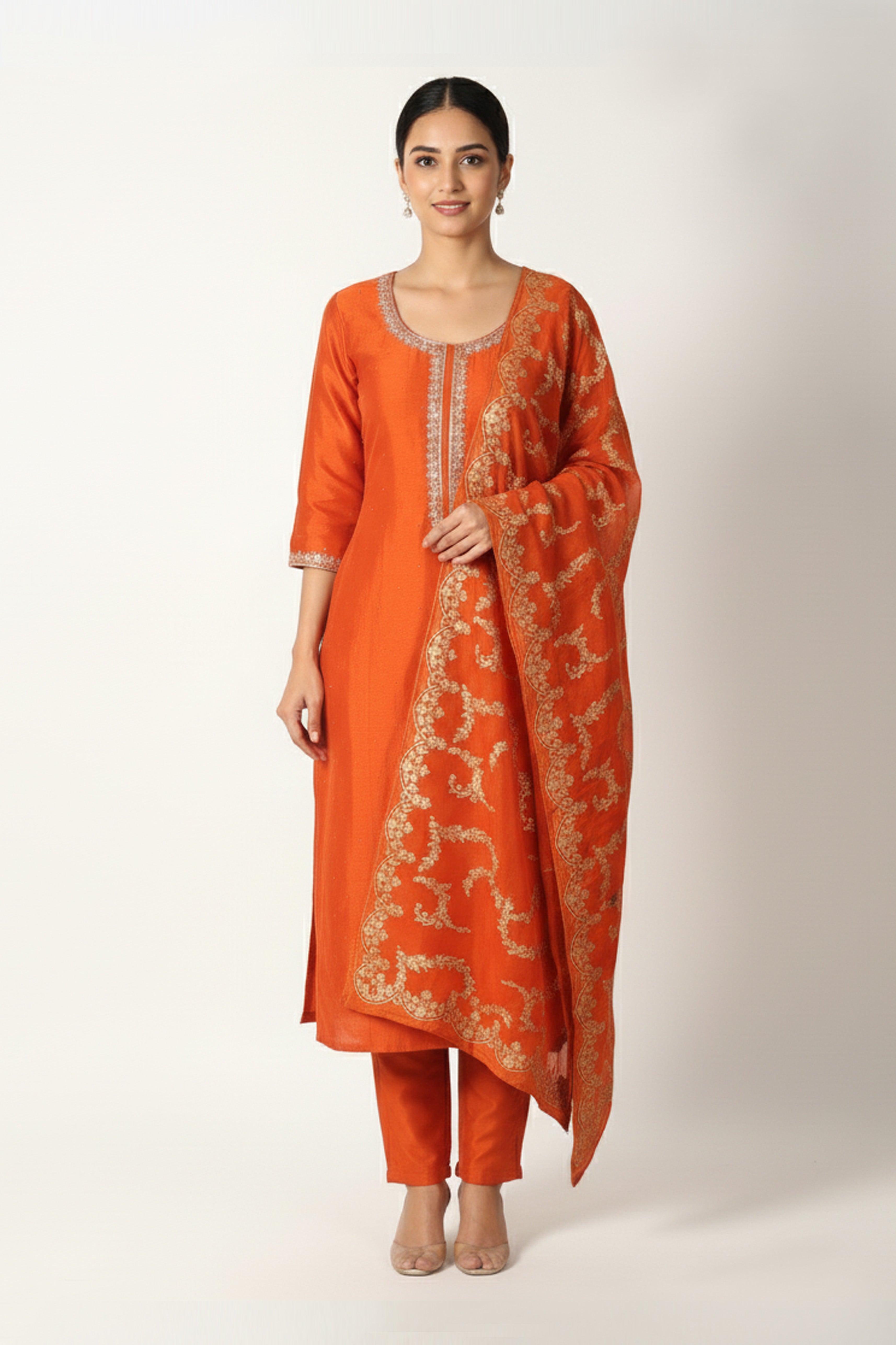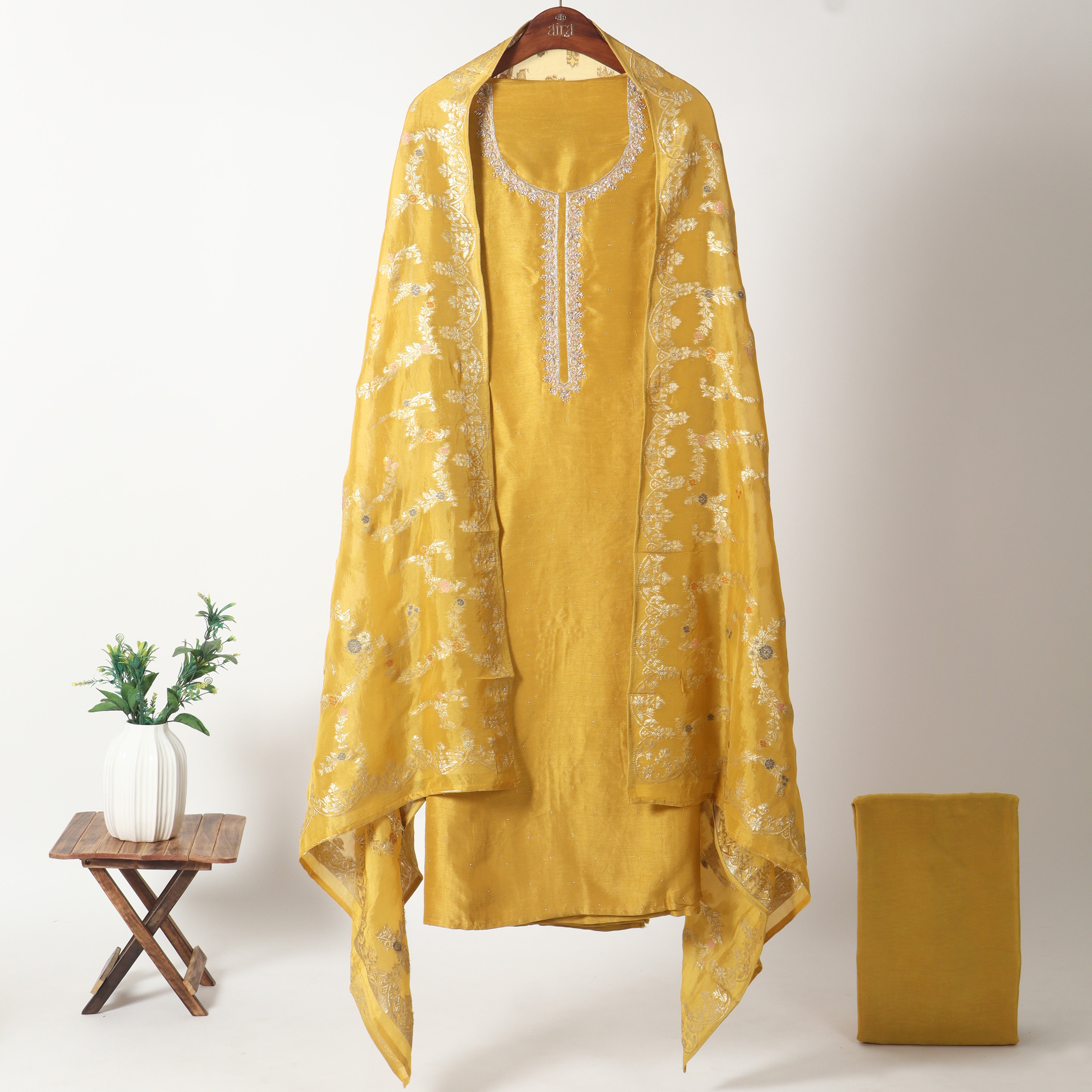 Refresh availabilityExperience sheer elegance with this unstitched Dola silk suit, crafted from premium-quality fabric known for its rich texture and subtle sheen. The luxurious drape and smooth finish make it perfect for festive occasions, weddings, and celebrations. Its refined appeal allows you to style it in various silhouettes — from classic straight suits to flowing anarkalis — ensuring a timeless and graceful ensemble.