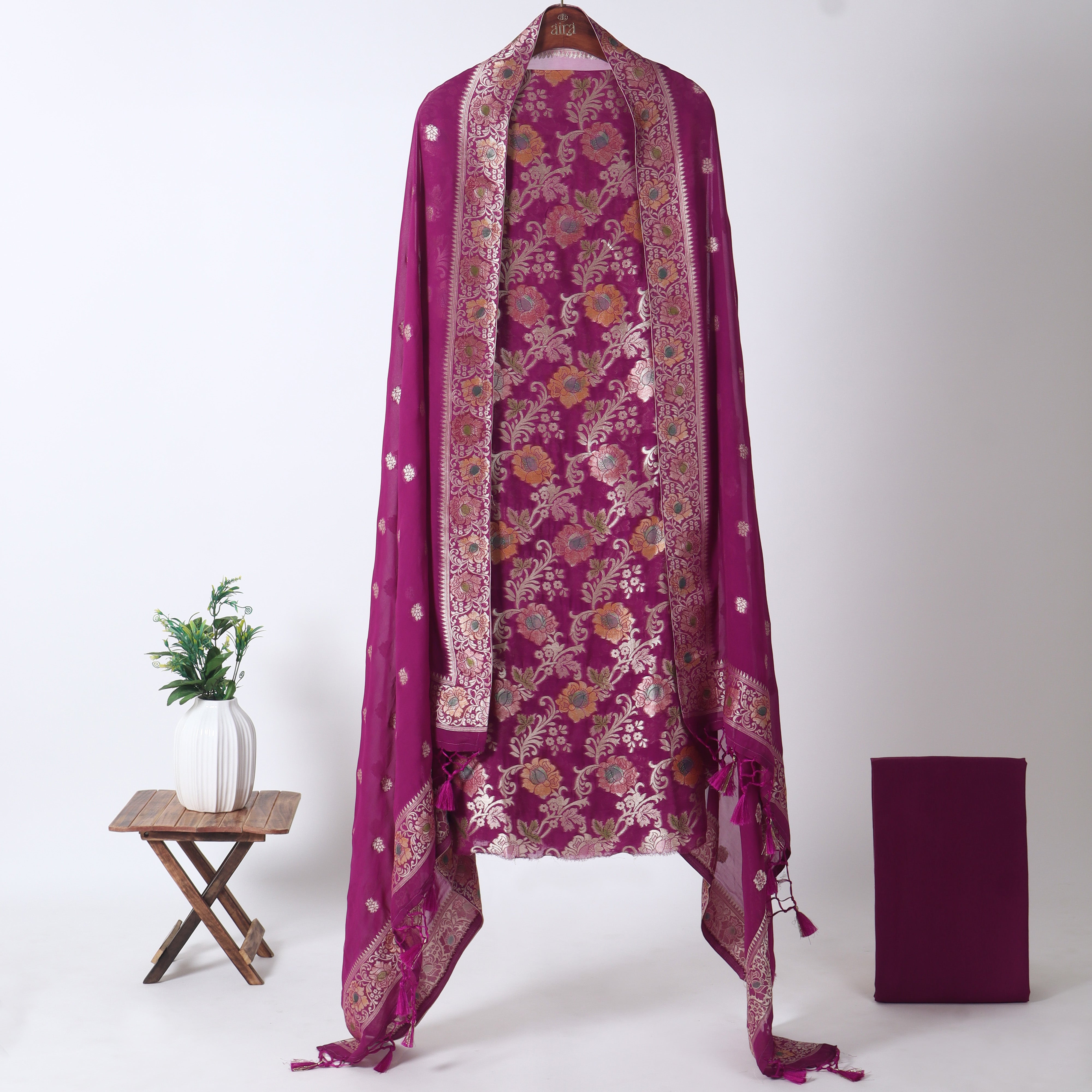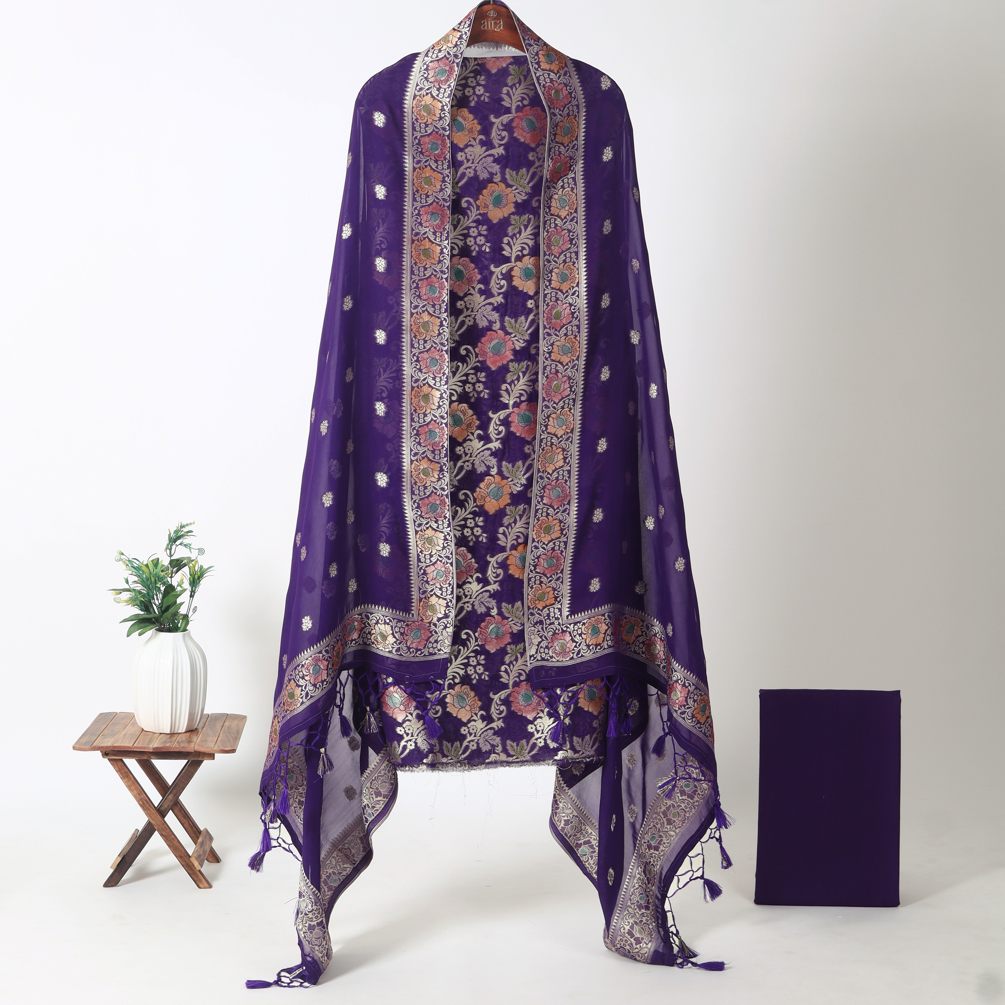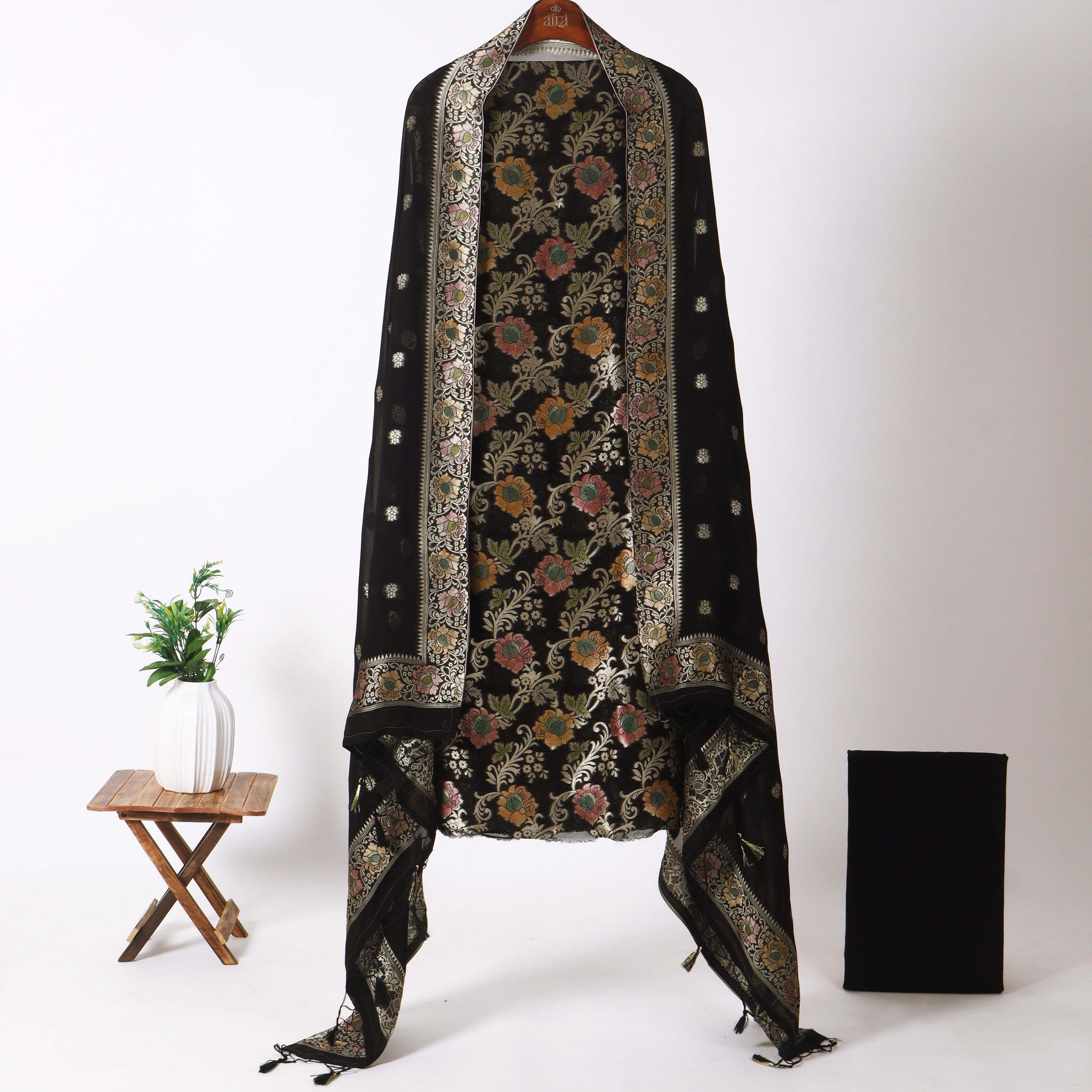 Complemented with a coordinated georgette dupatta and matching bottom fabric, this ensemble gives you the freedom to tailor it to your desired style and fit. Perfect for festive occasions, celebrations, or evening gatherings, it radiates a timeless allure and refined femininity.