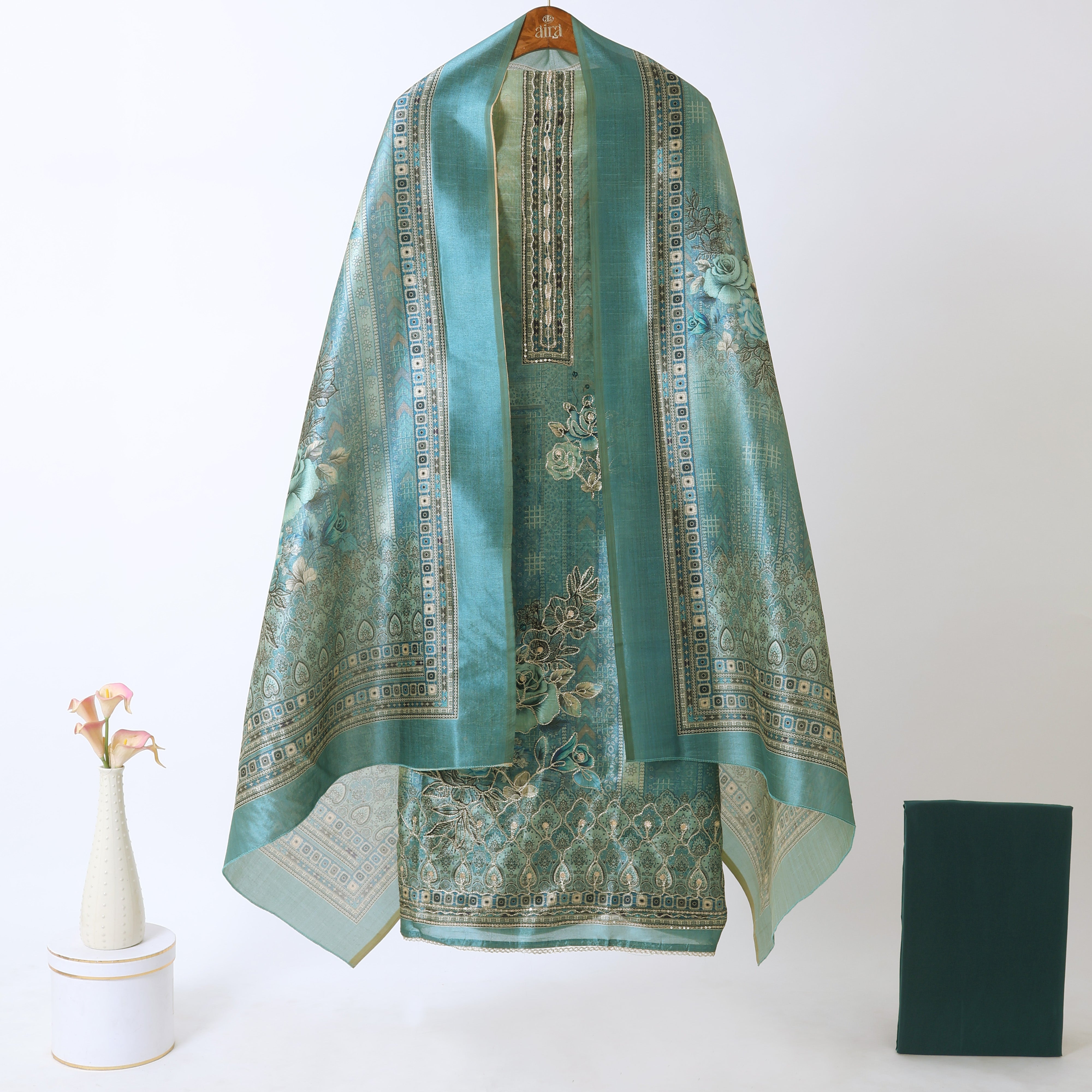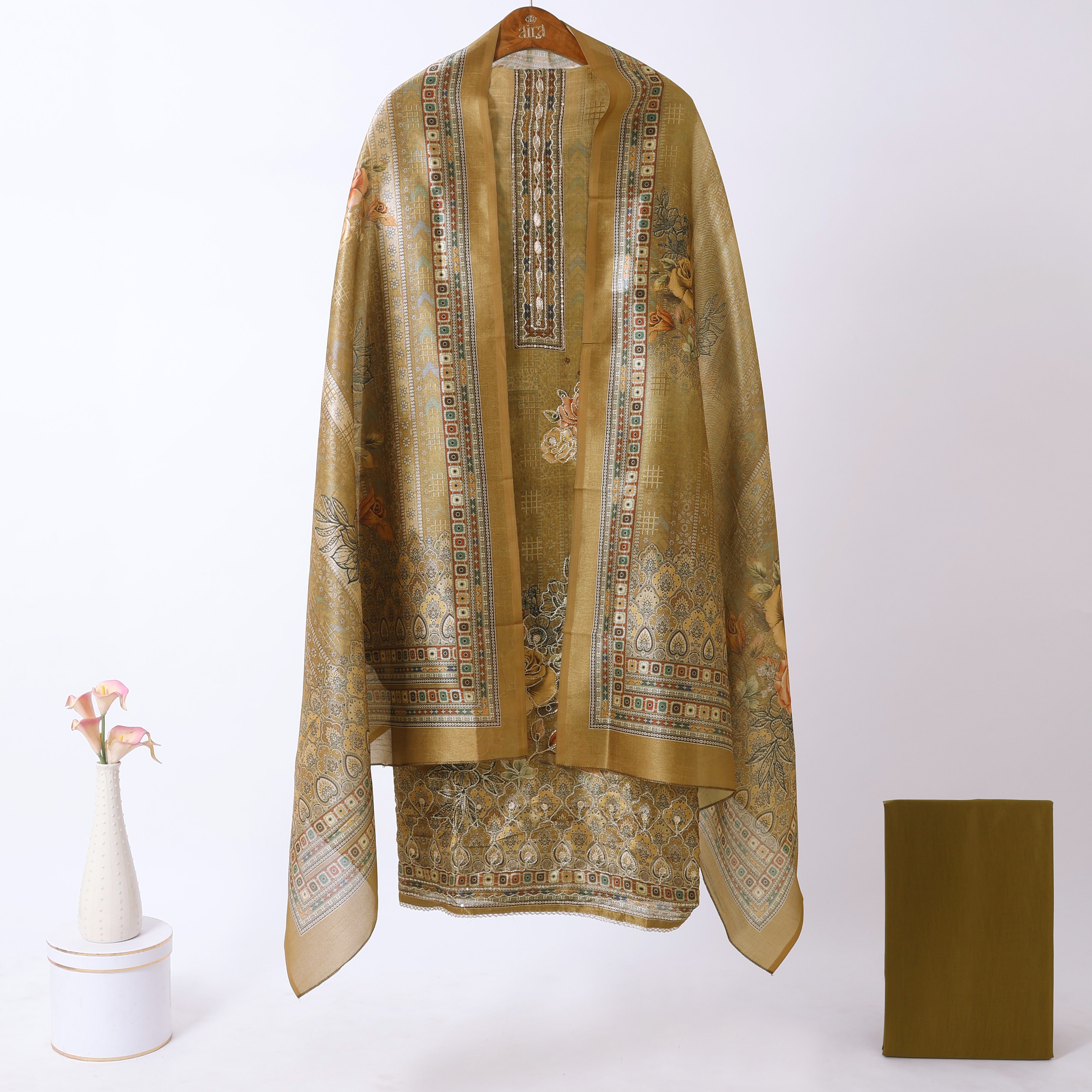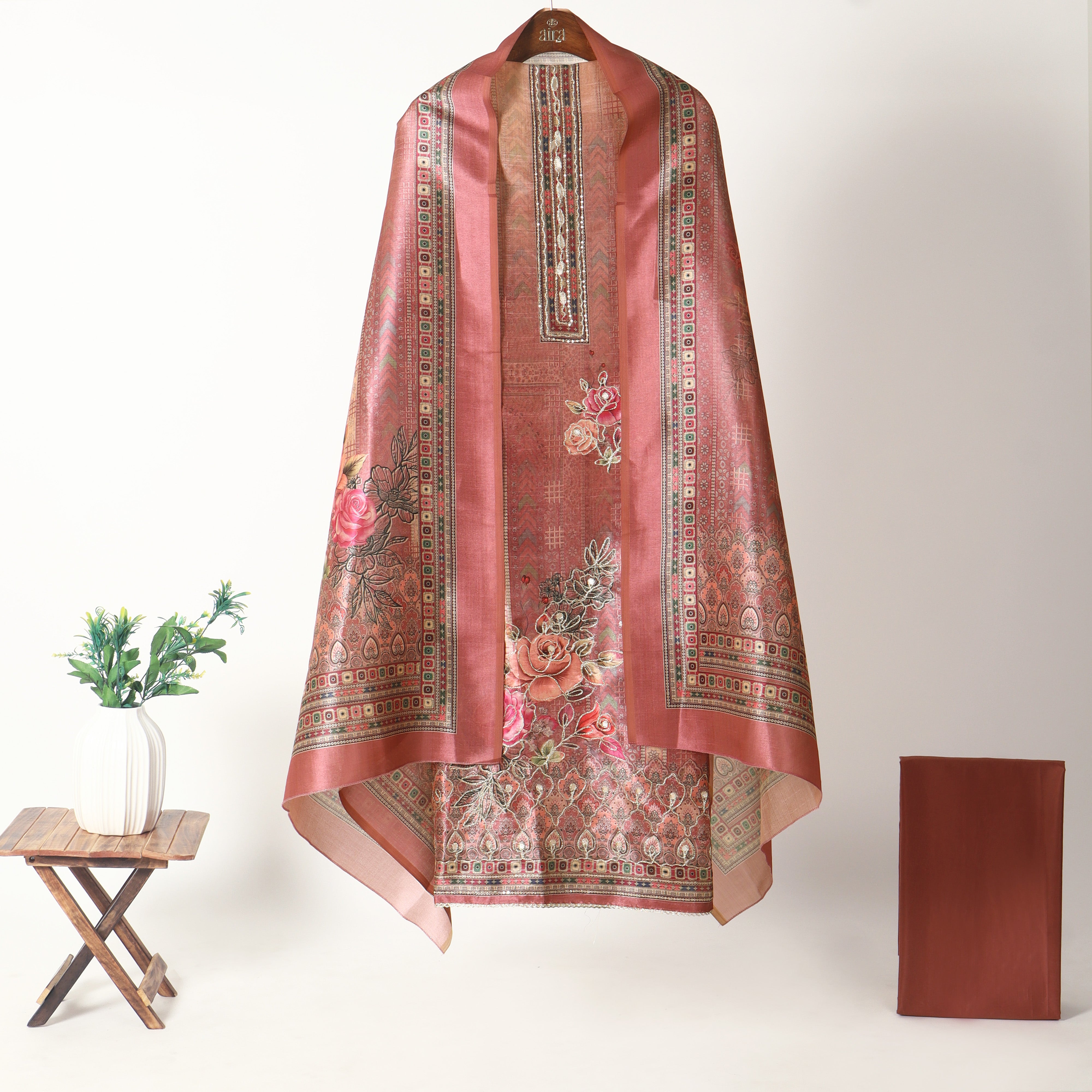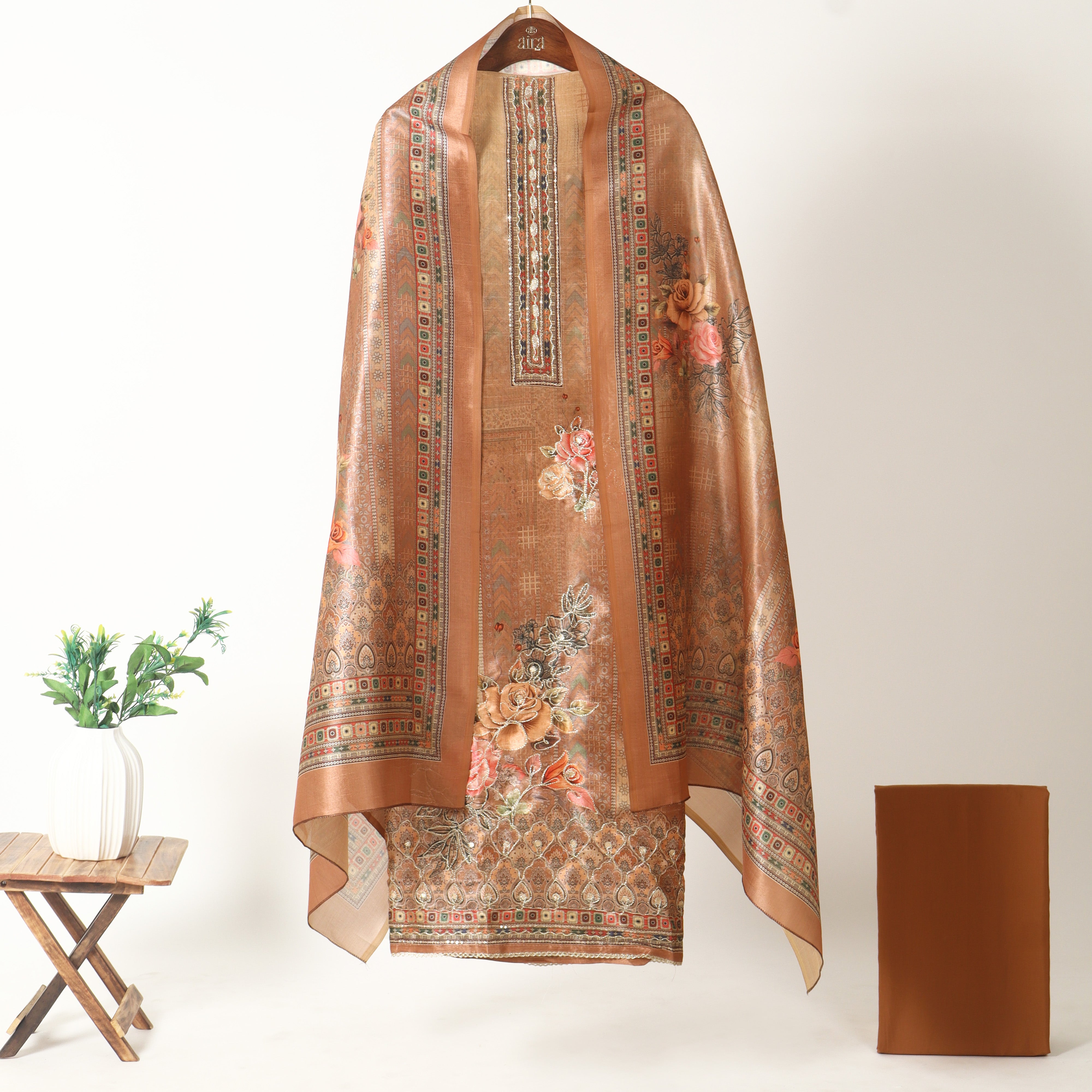 Refresh availabilityExperience effortless grace in our Unstitched Modal Satin Suit, crafted in a luxuriously soft and smooth fabric that offers a natural sheen and fluid drape. This suit features delicate embroidery detailing and comes with a beautifully coordinated dupatta, making it a perfect choice for festive gatherings and special occasions. Dress it up or keep it subtle — the versatility is all yours.