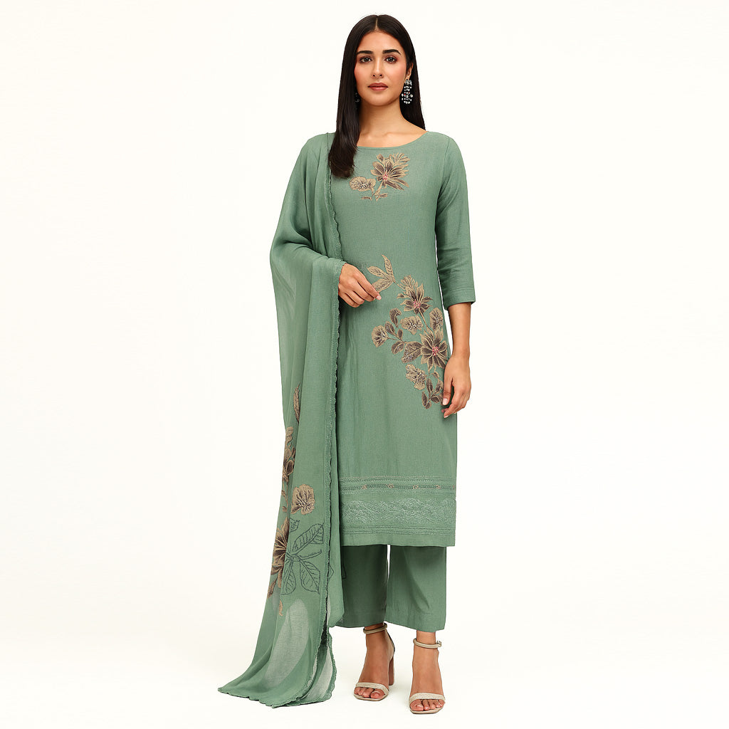 Refresh availabilityExperience the natural comfort and breathability of our Unstitched Muslin Suit, crafted from premium muslin fabric. Ideal for customization, this suit offers a lightweight, soft texture that keeps you cool in warm climates. Its unstitched form allows you to tailor the fit perfectly, ensuring both style and comfort. Perfect for those seeking versatile, high-quality fabric for personalized ethnic wear.