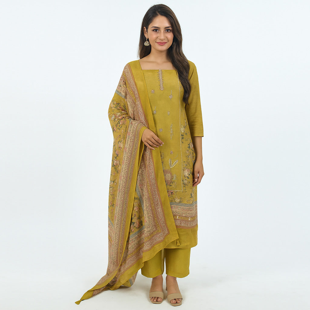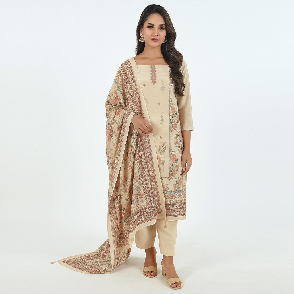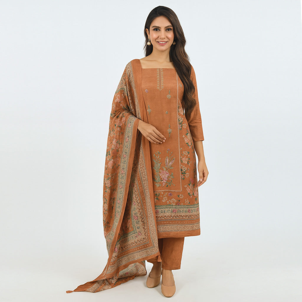 Refresh availabilityExperience the natural breathability and softness of our Unstitched Muslin Suit, crafted from premium muslin fabric. Ideal for customization, this fabric offers excellent comfort and versatility, allowing you to tailor a garment that fits perfectly and suits your style. Its lightweight texture ensures cool wear in warm climates while maintaining durability for everyday use. A wardrobe essential for those who value quality and personalized fashion.
