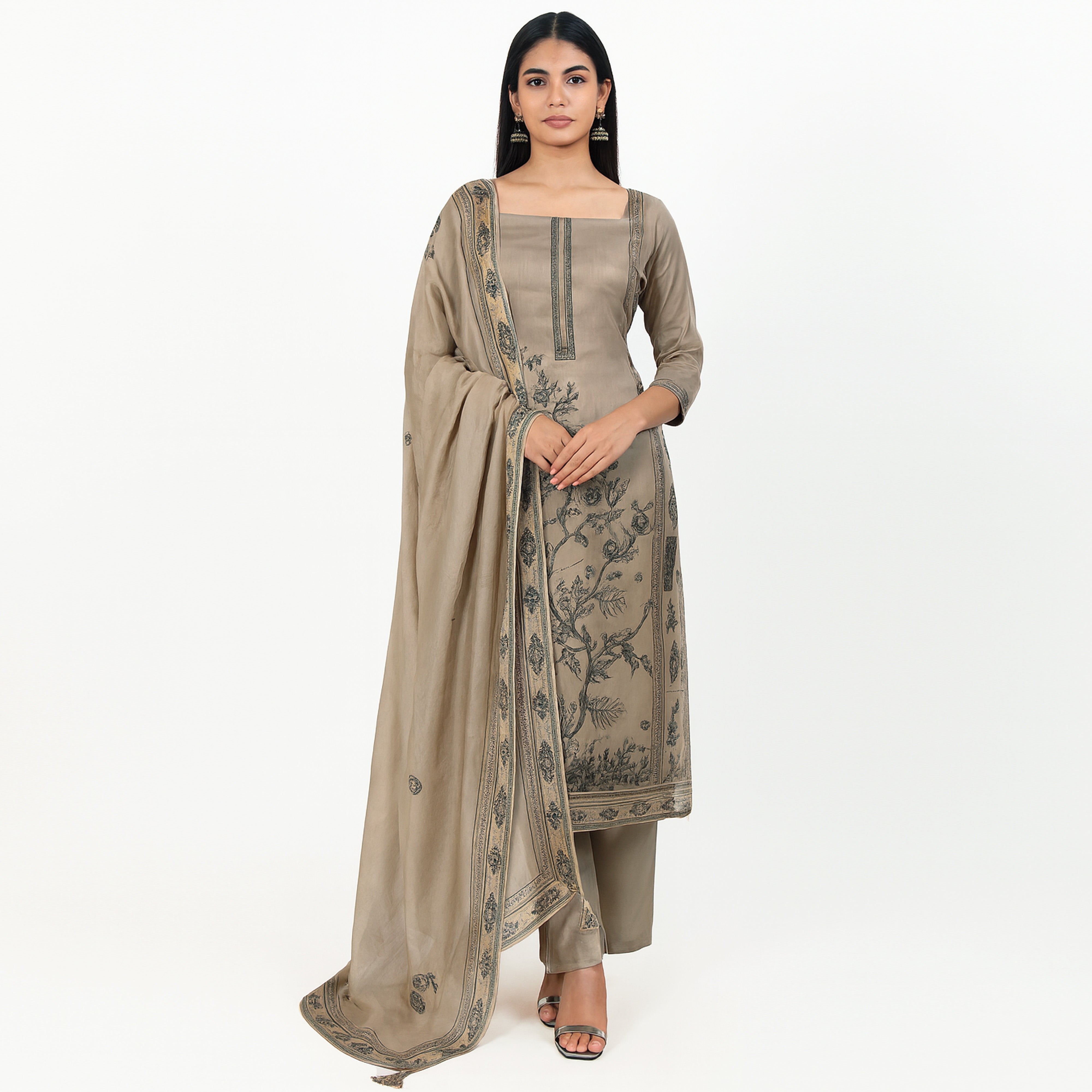 Refresh availabilityCrafted from delicate organza fabric, this unstitched suit offers an elegant foundation for tailored customization. Its breathable, lightweight texture ensures comfort while providing a luxurious sheer finish. Ideal for creating refined, formal ensembles, the fabric’s natural sheen and structure allow for sophisticated draping and detailed stitching, perfect for expert tailoring to achieve a flawless fit and design.
