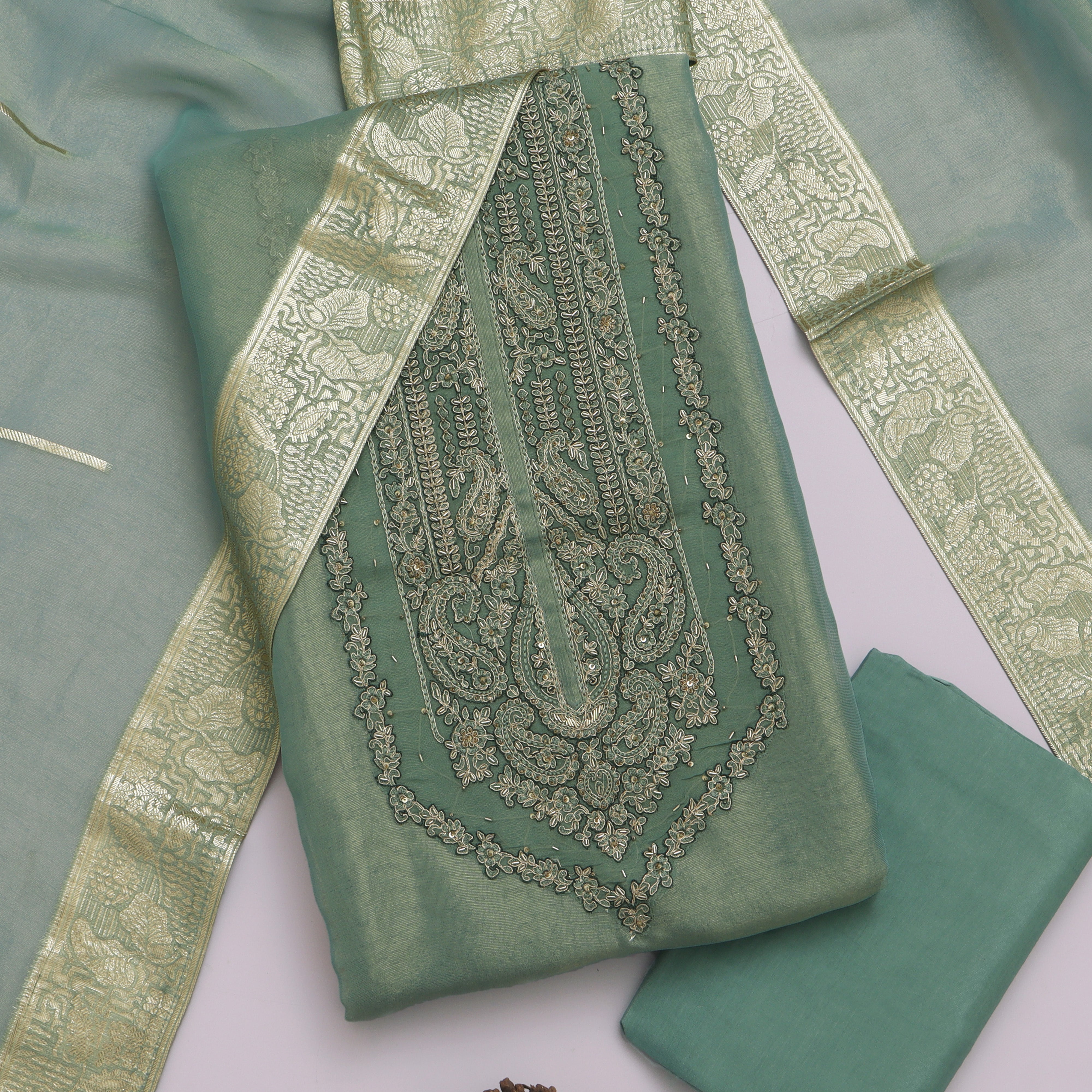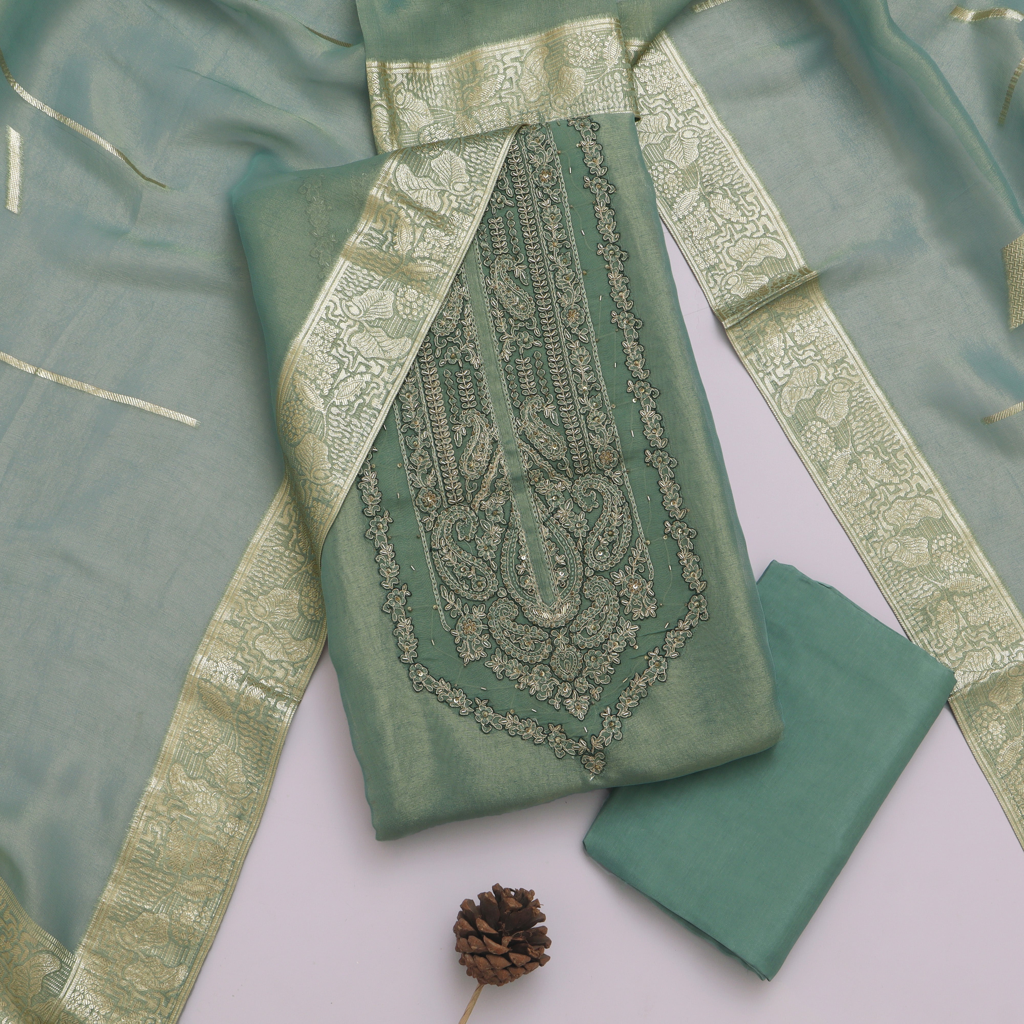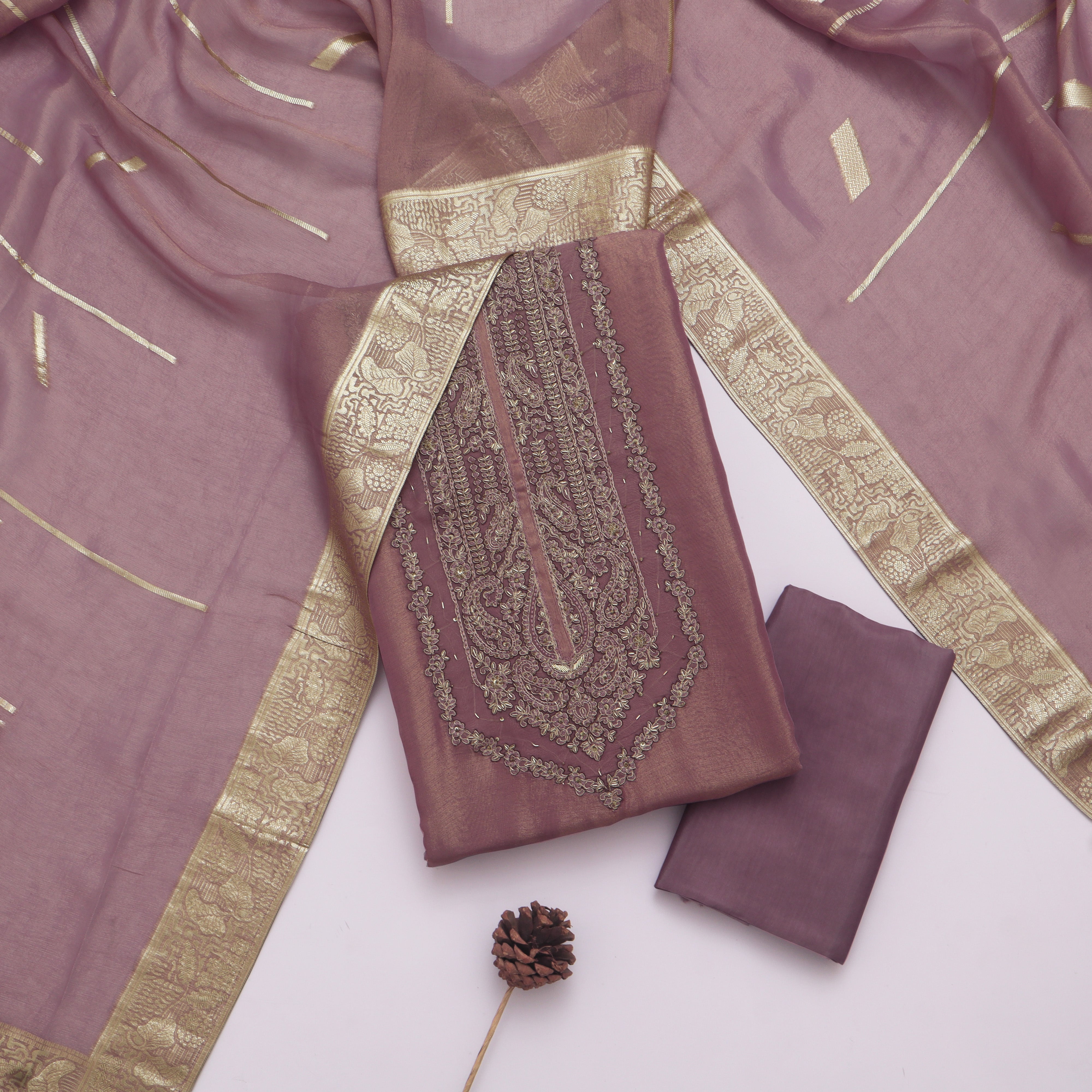 Refresh availabilityExperience the delicate elegance of our Unstitched Tissue Suit fabric, crafted for those who appreciate fine texture and premium quality. This lightweight fabric offers a soft, airy feel with a subtle sheen, ideal for creating custom-tailored outfits that combine comfort and sophistication. Perfect for professional tailoring, it allows you to define your style with precision while ensuring breathability and ease throughout wear. Elevate your wardrobe with this versatile, high-quality tissue fabric designed to suit various occasions.