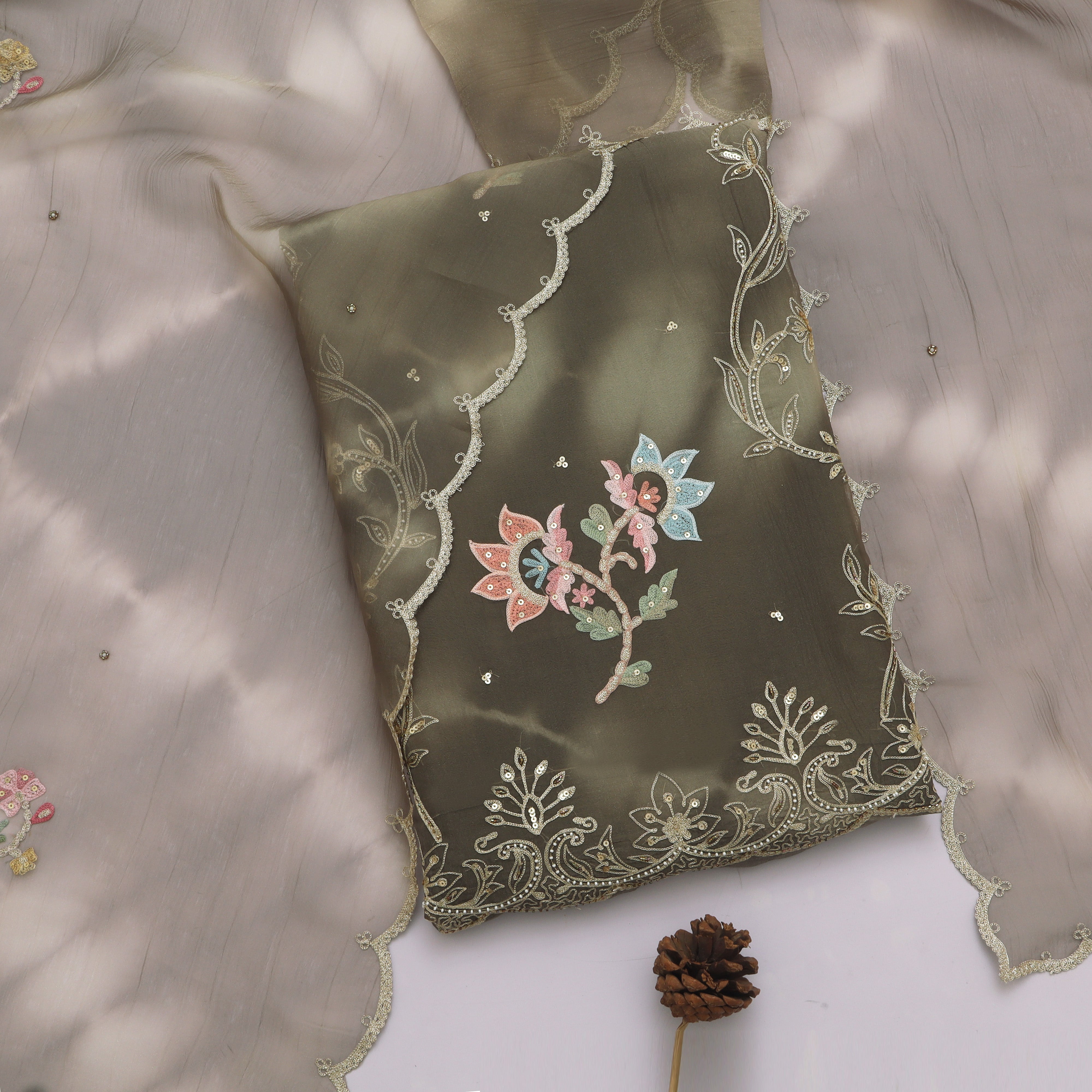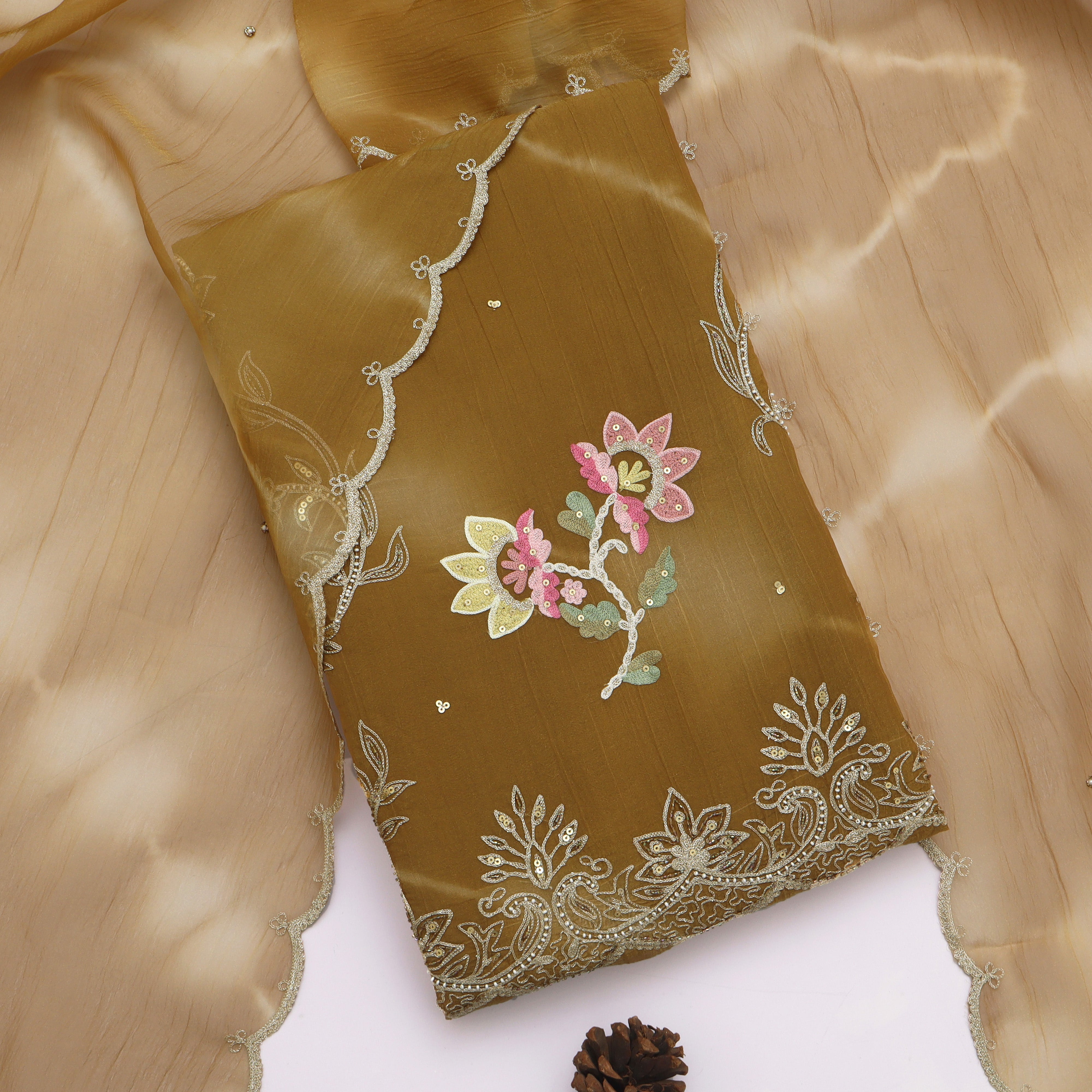 Refresh availabilityExperience sheer elegance with this Unstitched Tissue Suit, crafted from premium-quality tissue fabric known for its delicate sheen and lightweight texture. The fabric drapes beautifully, making it ideal for festive occasions, parties, and traditional celebrations.