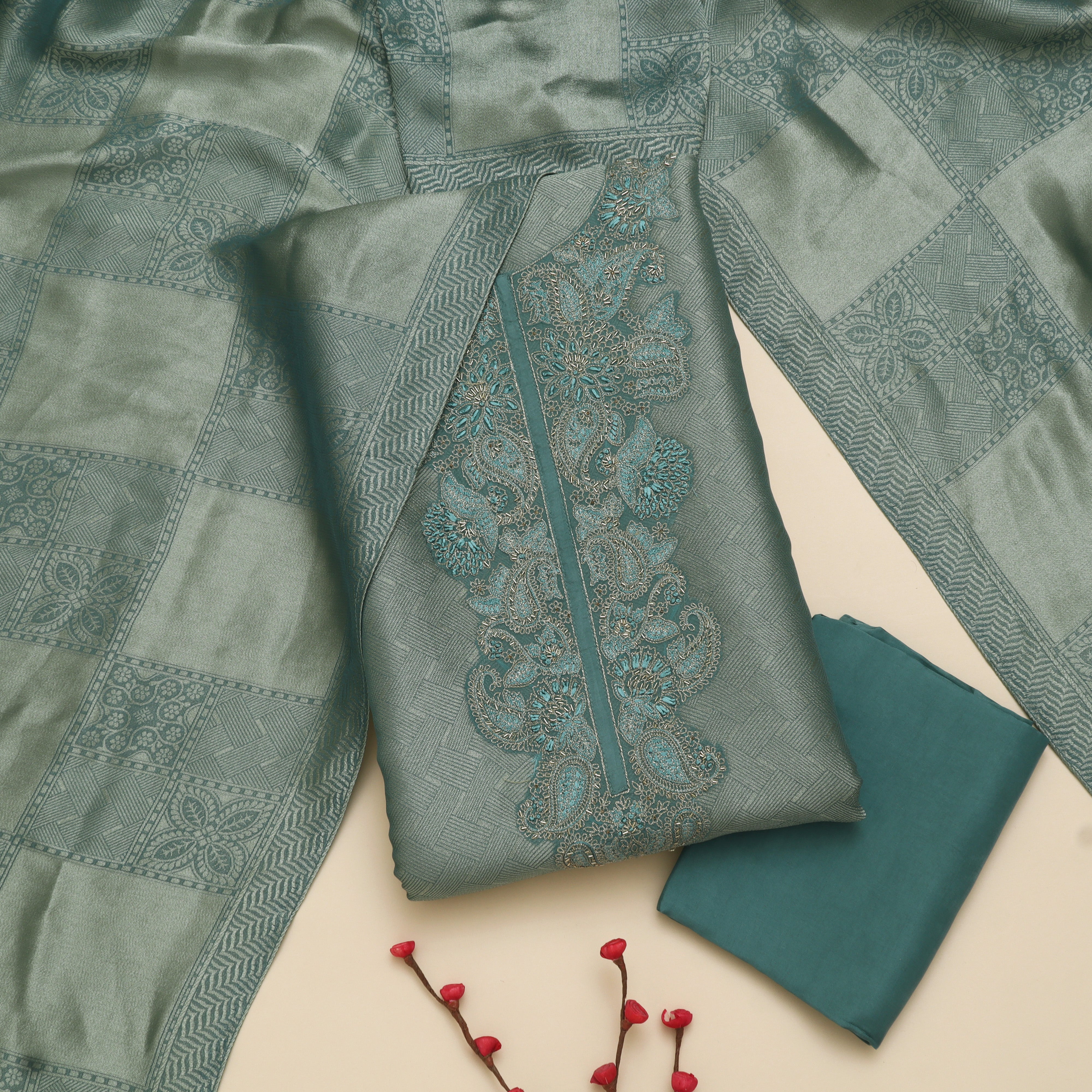 Refresh availabilityCrafted from luxurious tissue fabric, this unstitched suit is perfect for creating a statement ensemble. Known for its subtle sheen and lightweight texture, tissue fabric adds a graceful charm to any outfit. The fabric drapes beautifully, making it ideal for both traditional and contemporary silhouettes. Customize it into a kurta, sharara, lehenga, or any design of your choice to match your personal style. A versatile choice for festive occasions, weddings, or elegant evening wear.