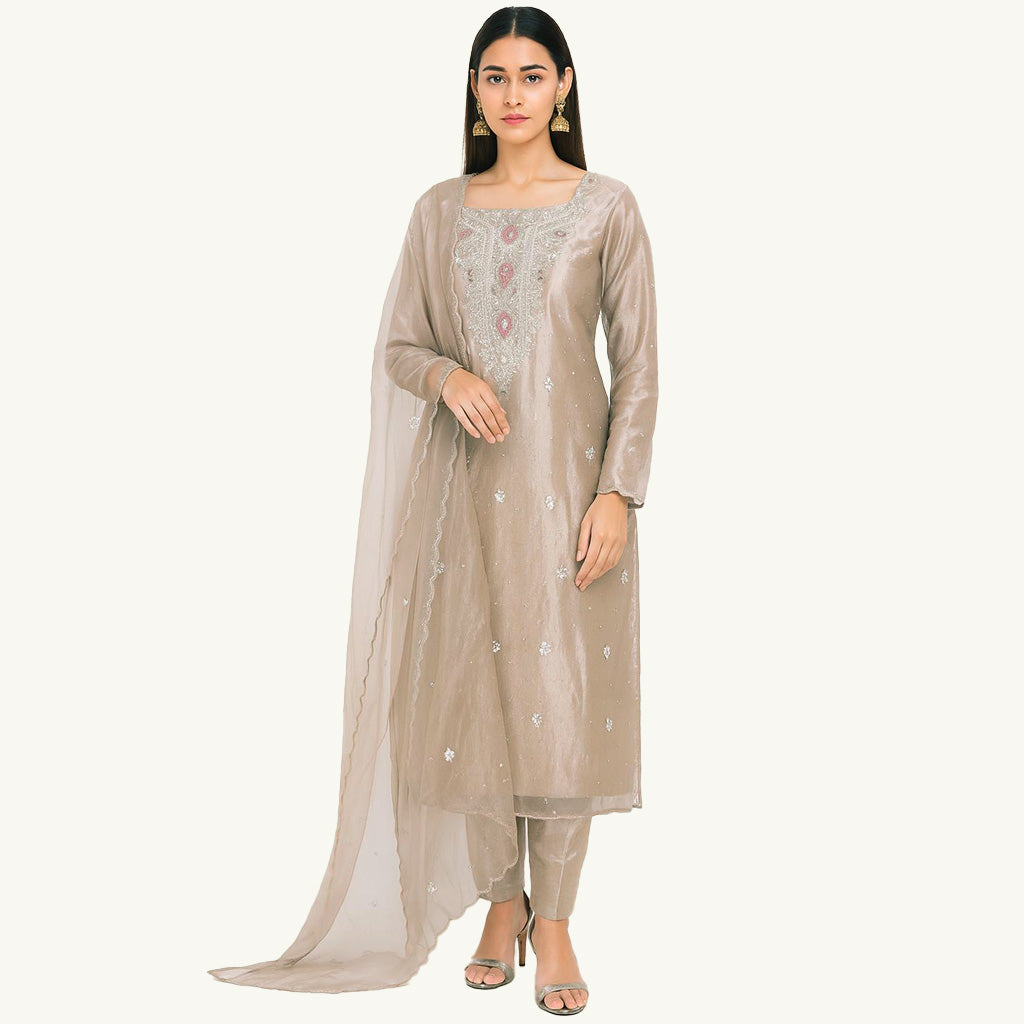 Refresh availabilityThis grey unstitched tissue suit fabric offers a versatile foundation for custom tailoring. Crafted from lightweight, breathable tissue material, it ensures comfort while maintaining an elegant drape. Ideal for creating personalized traditional or contemporary outfits, this fabric allows for precise measurement and fit, catering to individual style preferences. Its subtle grey shade provides a neutral base suitable for various embellishments or accessories. Perfect for those seeking both quality and flexibility in their garment construction.