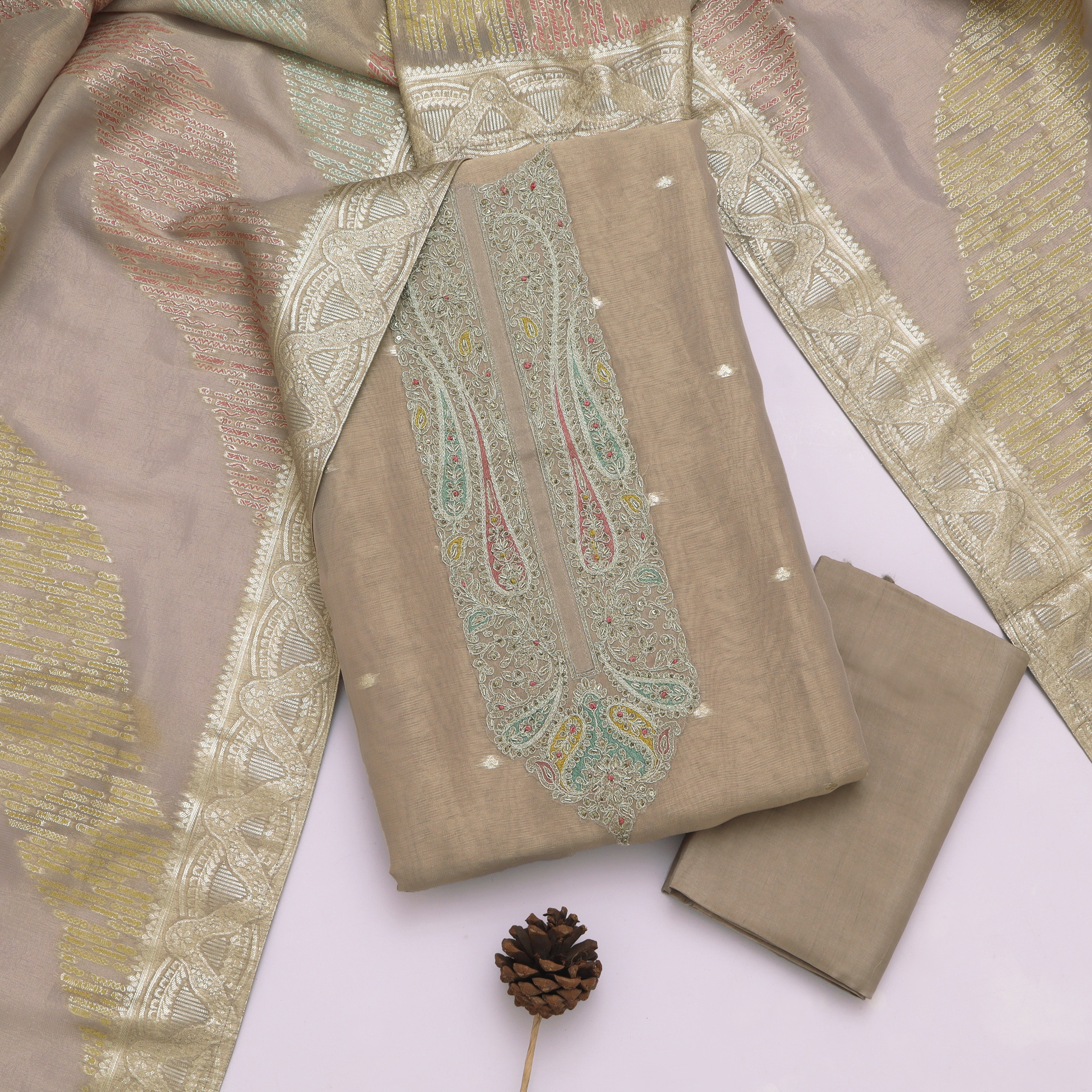Refresh availabilityCrafted from lightweight tissue fabric, this unstitched suit offers premium softness and breathability. Ideal for tailoring a personalized outfit, it allows for expert customization while ensuring comfort in warmer climates. Perfect for those seeking refined elegance with versatile styling options.