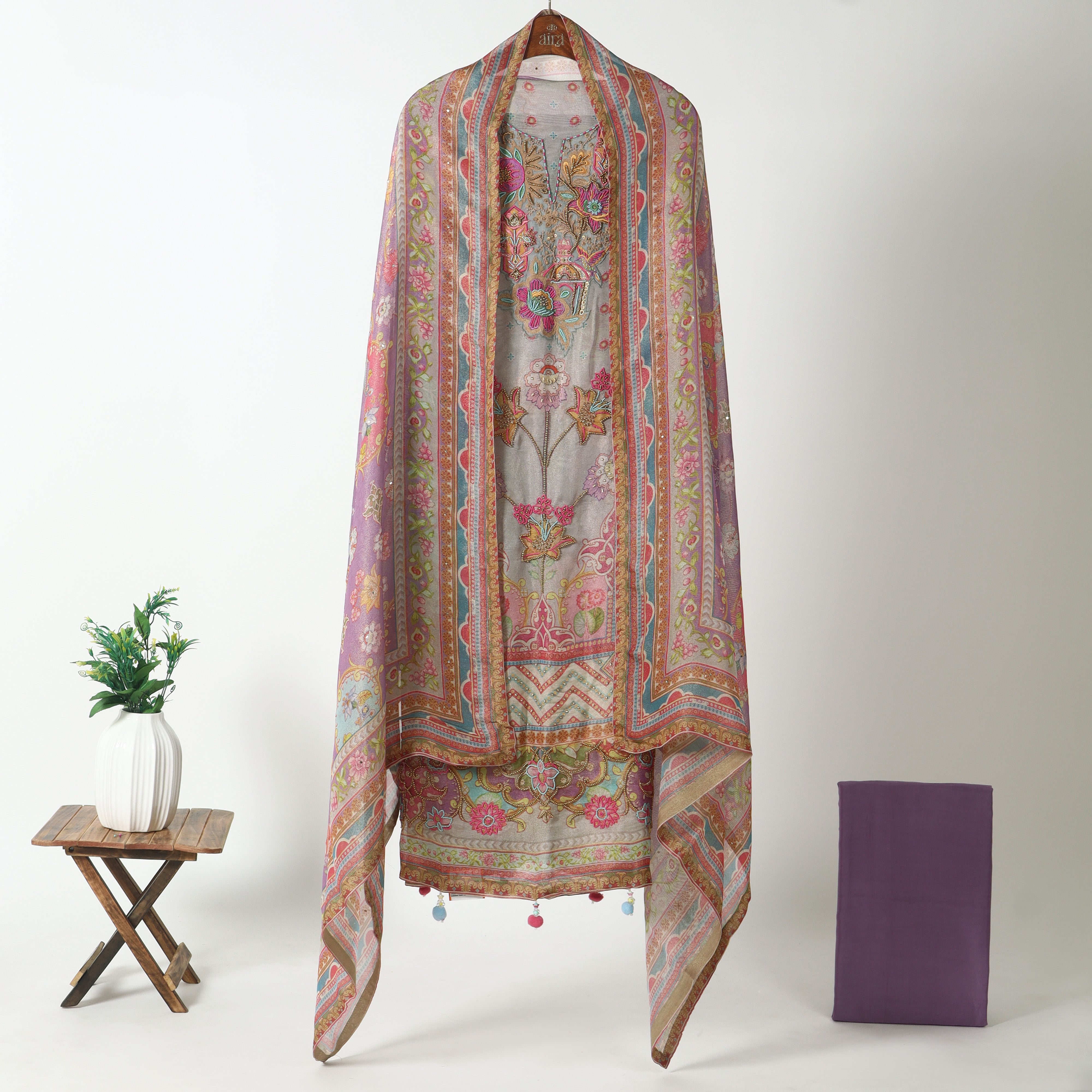 Refresh availabilityEmbrace a touch of luxury with this Unstitched Tissue Suit, woven to perfection with a soft metallic sheen and delicate texture. The rich fabric reflects grace and grandeur, making it a perfect choice for festive occasions and elegant celebrations.
