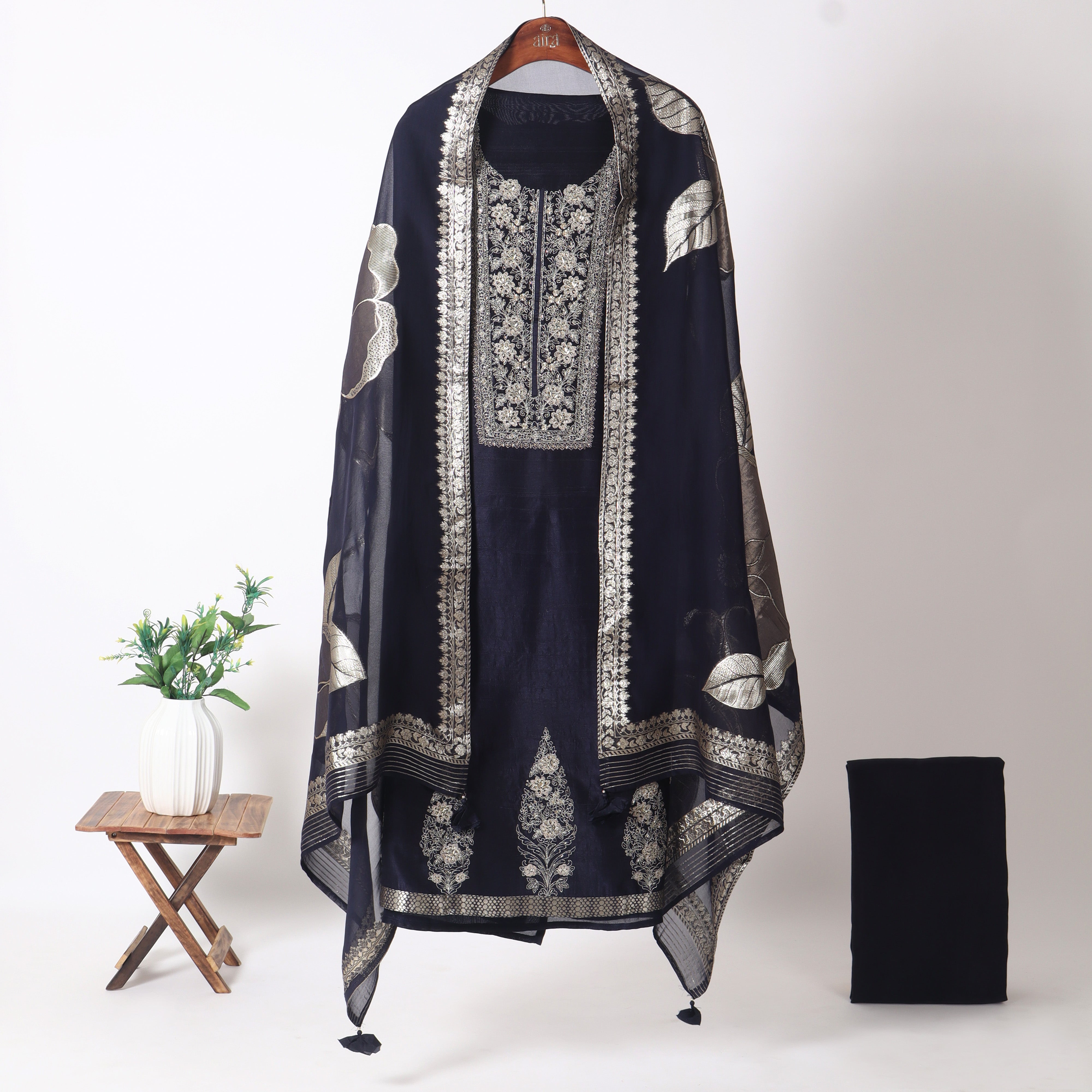 Refresh availabilityMake a graceful style statement with this Unstitched Dola Silk Suit, crafted from luxurious Dola Silk known for its soft texture, elegant fall, and natural sheen. Light in weight yet rich in appearance, this ensemble is perfect for festive occasions, wedding functions, and traditional celebrations.
