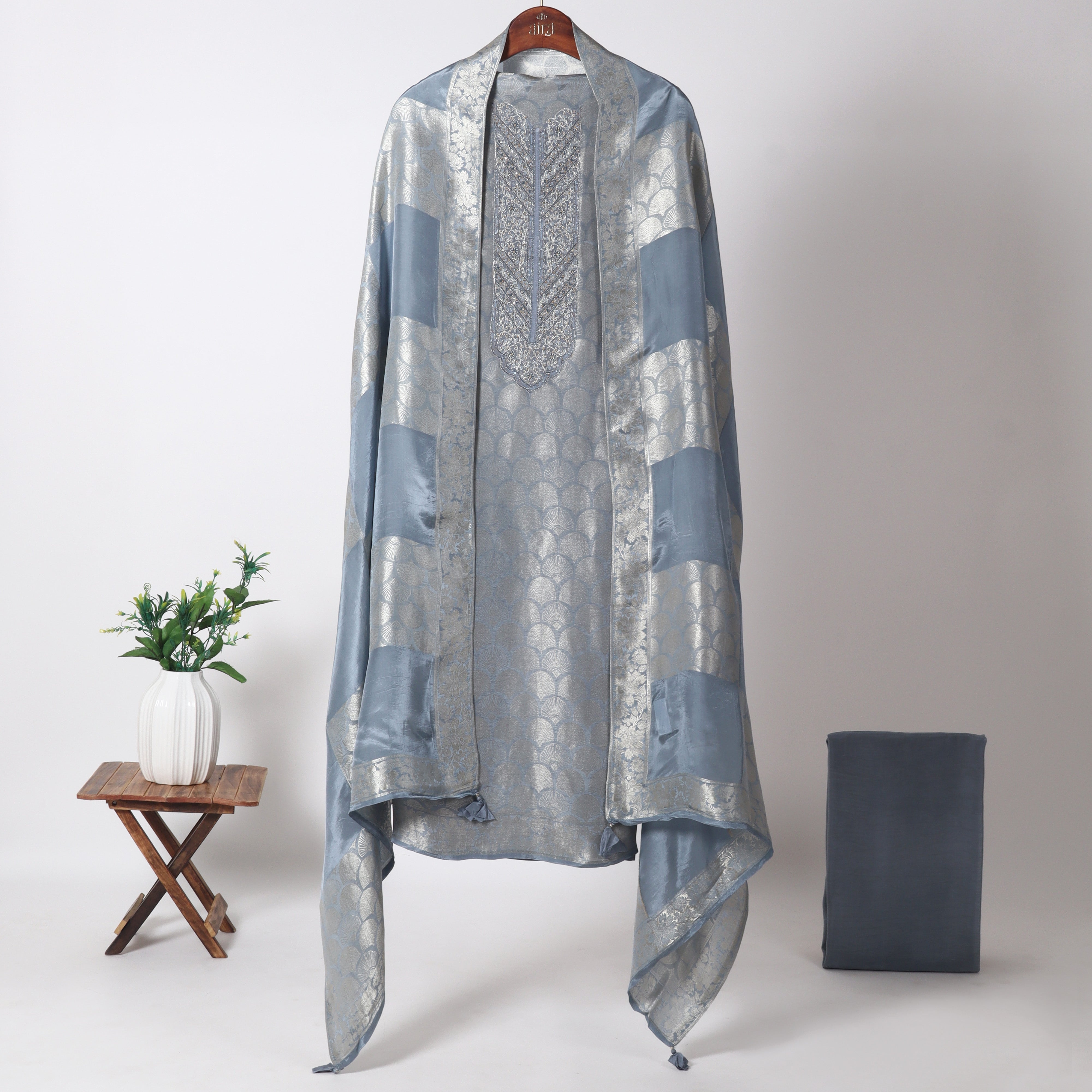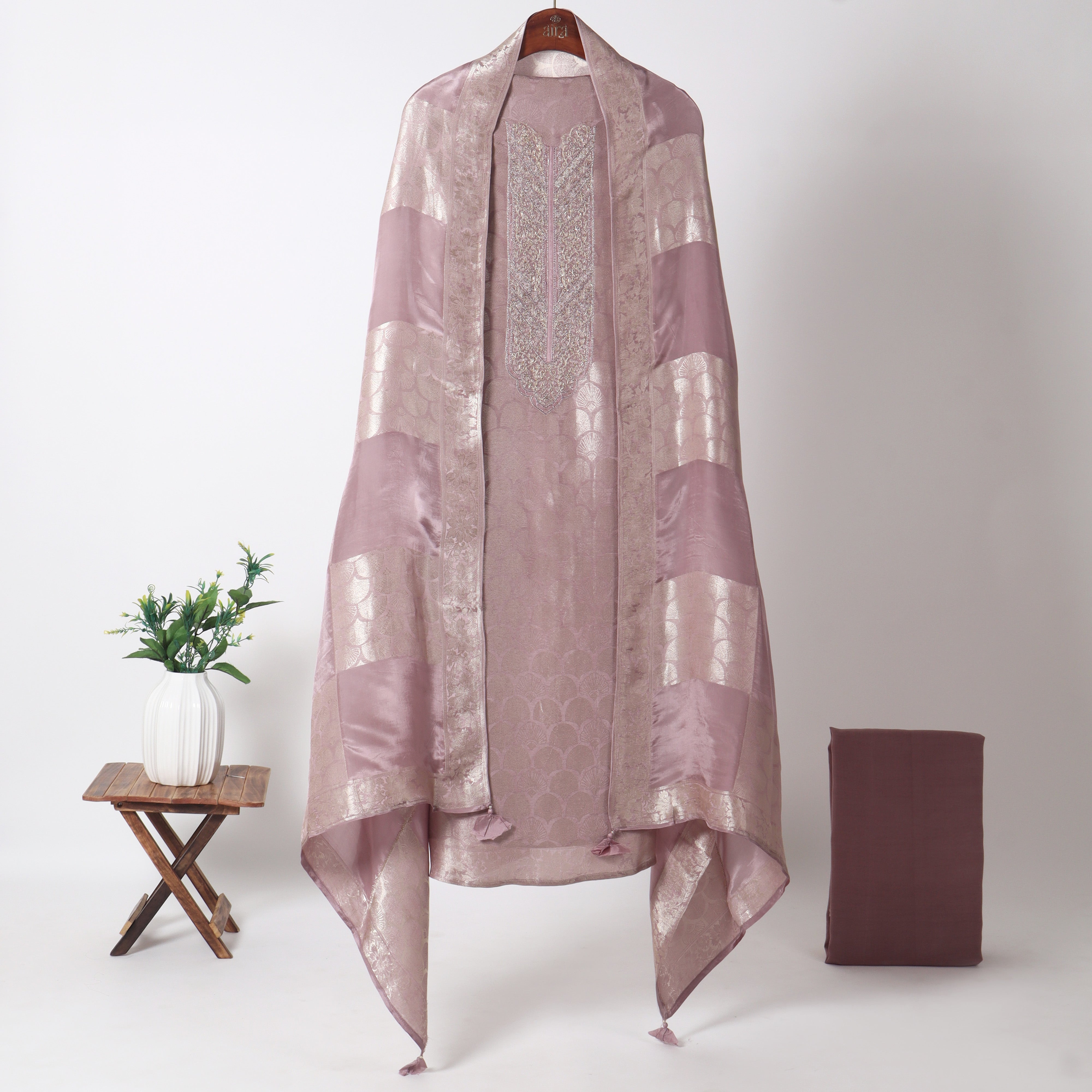 Refresh availabilityStep into elegant radiance with this Unstitched Tissue Suit, crafted from luxurious tissue fabric known for its soft shimmer, lightweight feel and graceful drape. Its festive sheen and rich texture make it a perfect choice for weddings, parties and traditional celebration