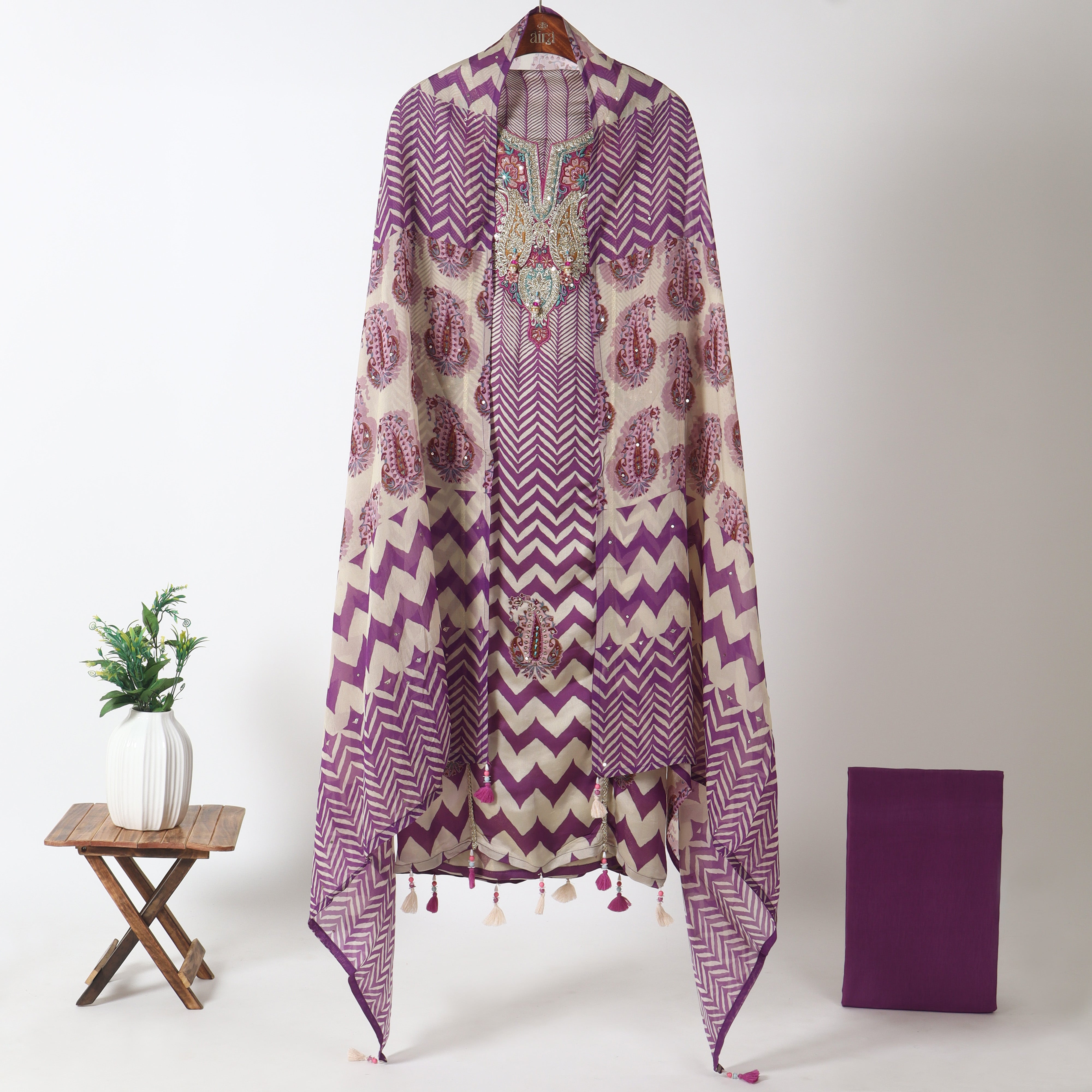 Refresh availabilityElevate your festive wardrobe with our Unstitched Tissue Suit, crafted from premium tissue fabric that offers a subtle shimmer, graceful fall and rich traditional appeal. Lightweight yet luxurious, this fabric drapes beautifully and brings an instant festive charm to your look.