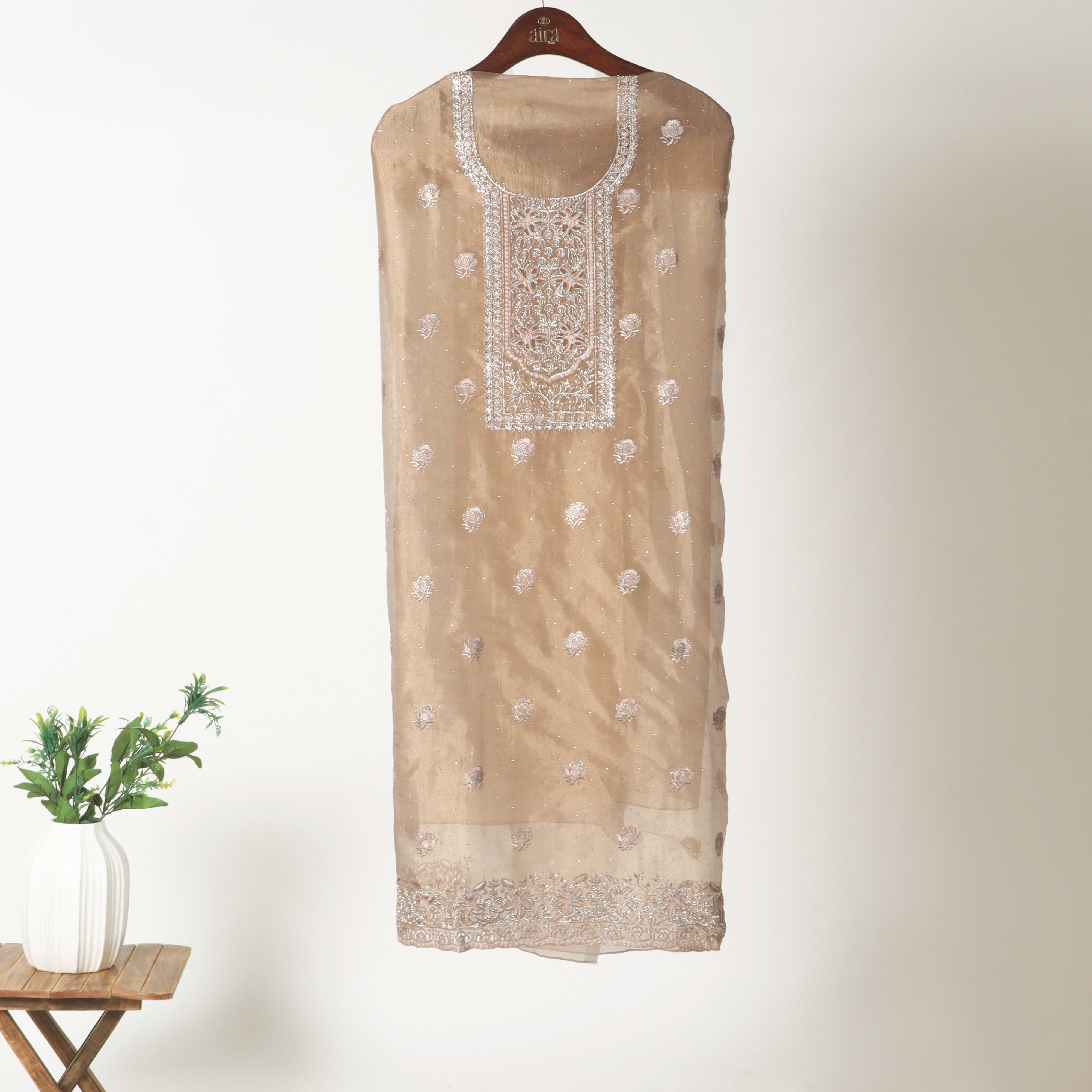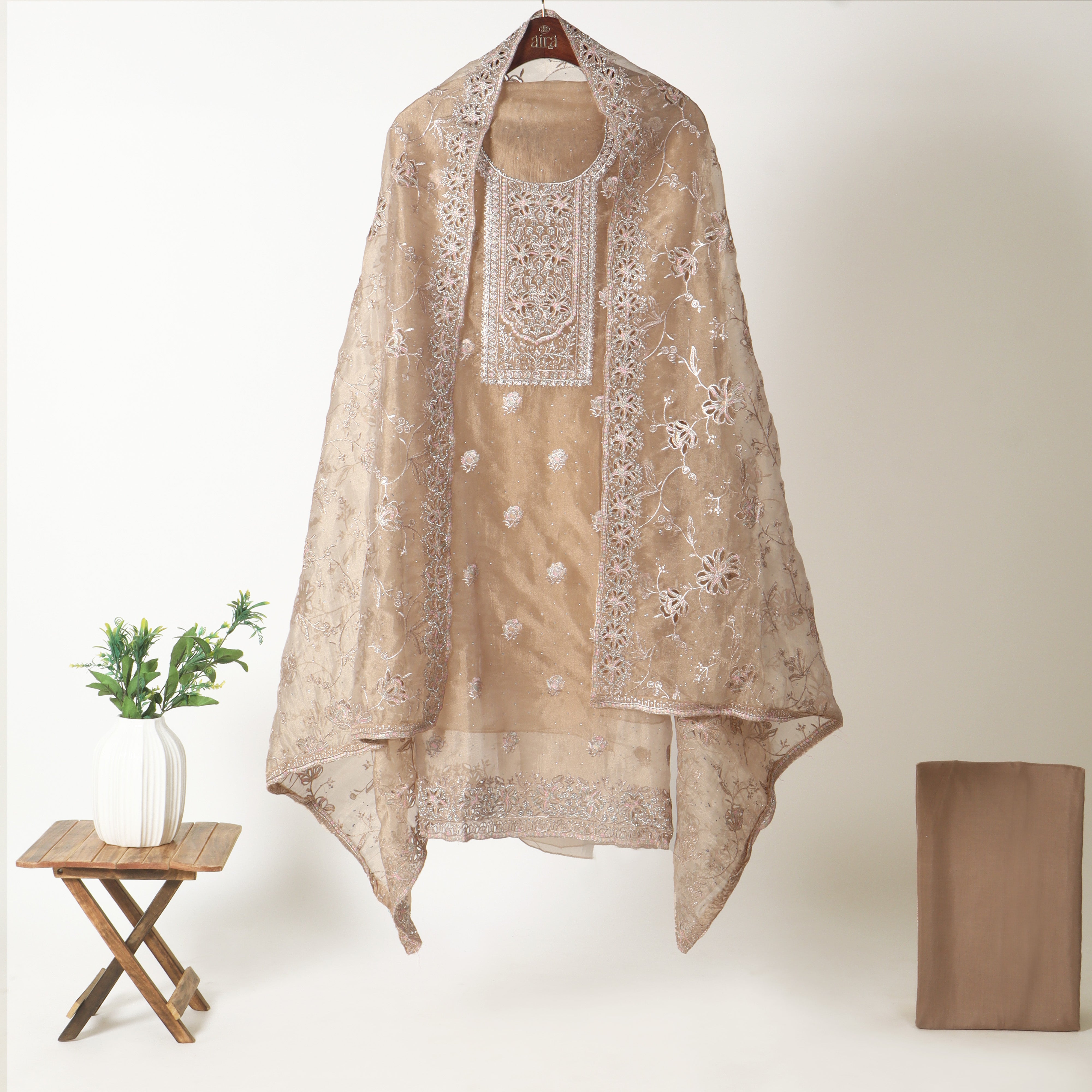 Refresh availabilityDiscover timeless elegance with this Unstitched Tissue Suit, crafted with a natural glossy texture and smooth finish.