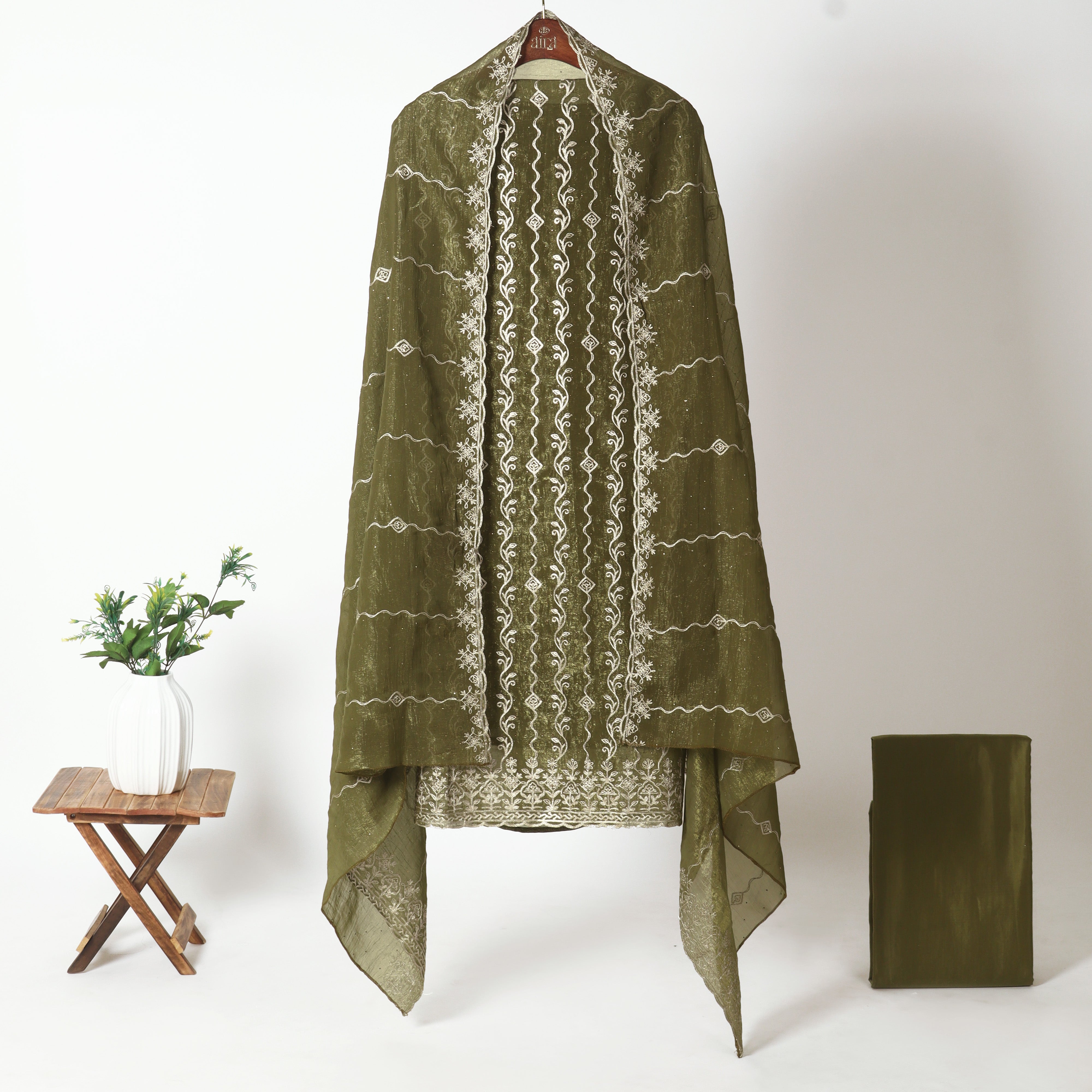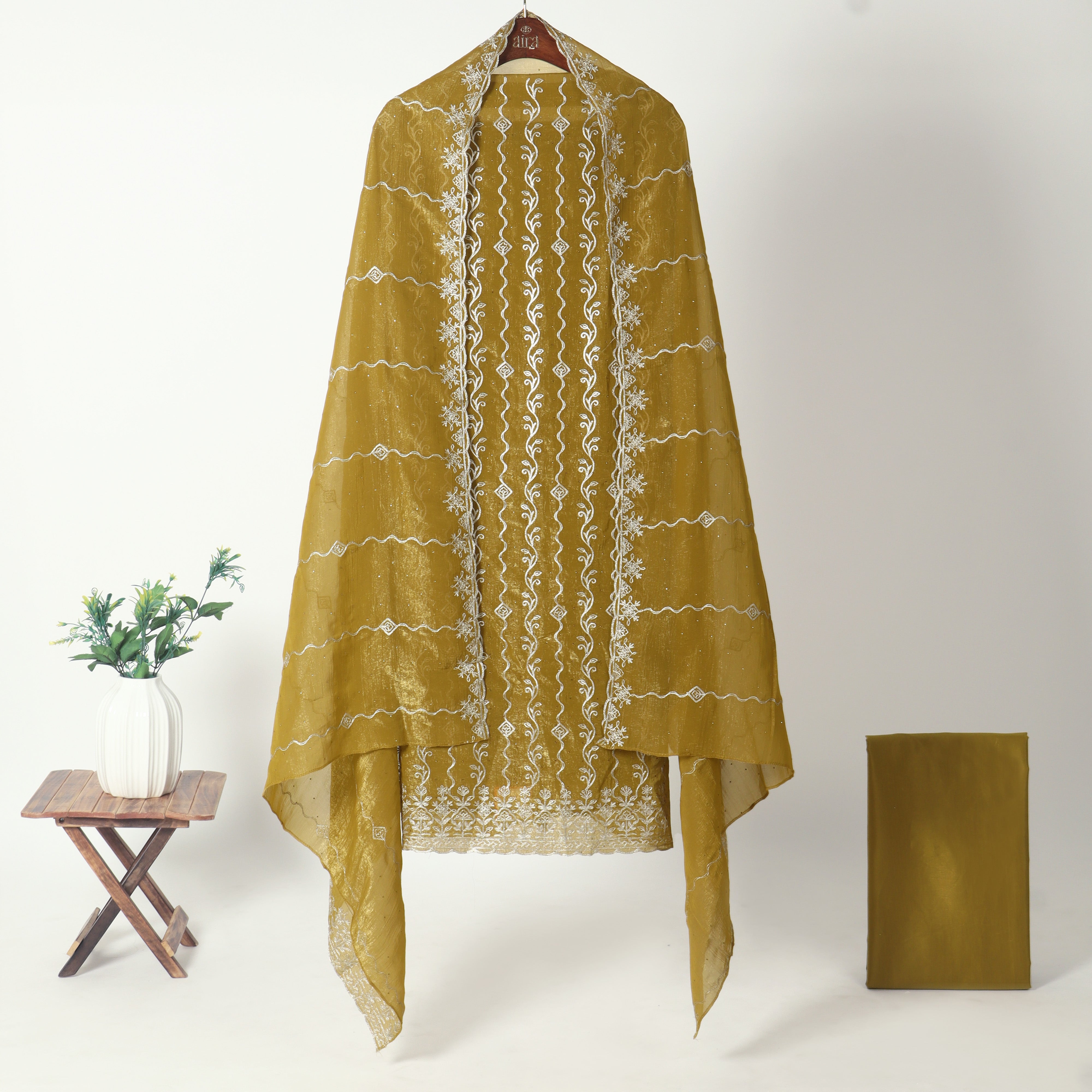Refresh availabilityElevate your festive wardrobe with our elegant Unstitched Tissue Suit. Known for its soft shimmer and graceful fall, Tissue fabric brings a refined luxury to your look. The suit comes with a beautifully coordinated dupatta and matching bottom, allowing you to tailor it perfectly to your style.