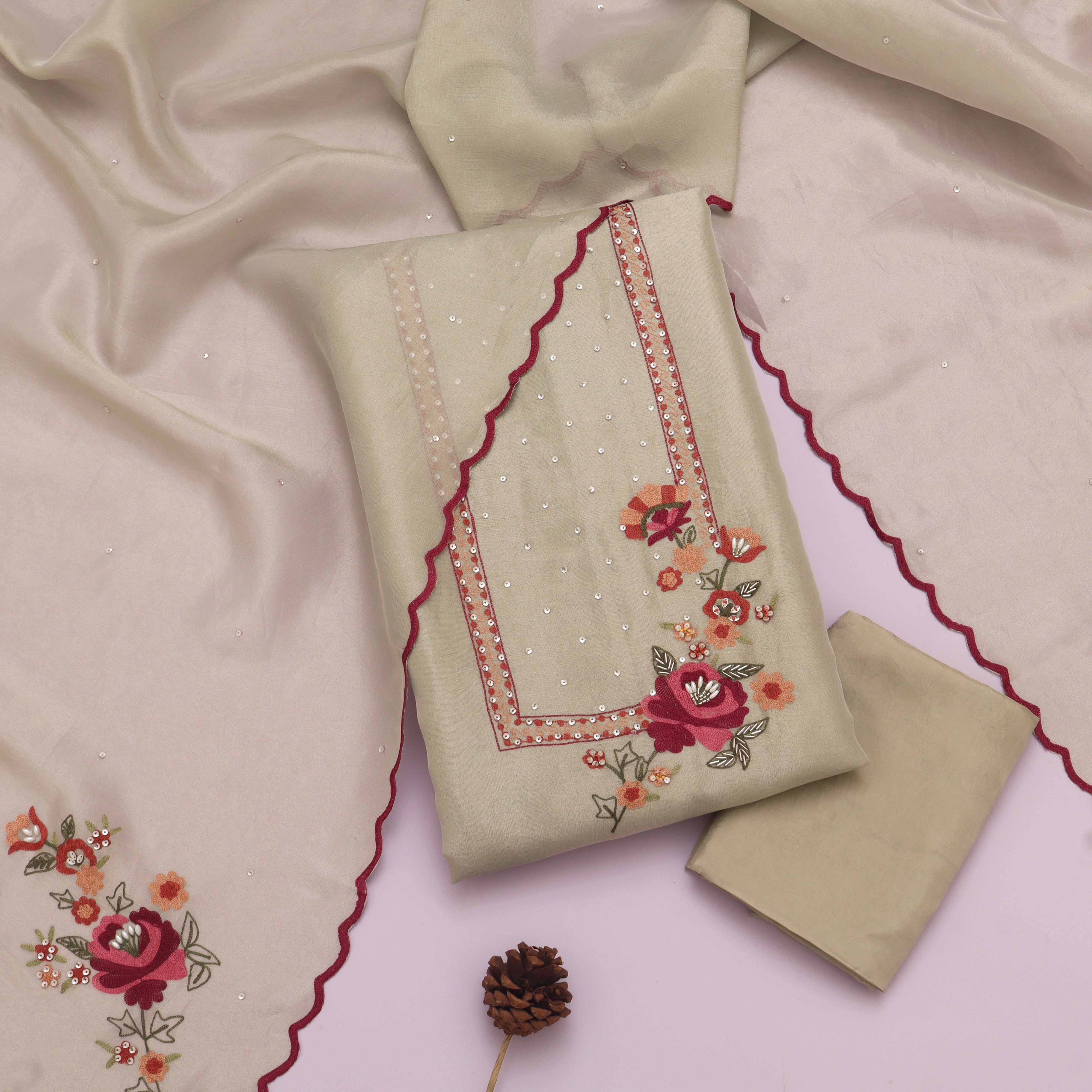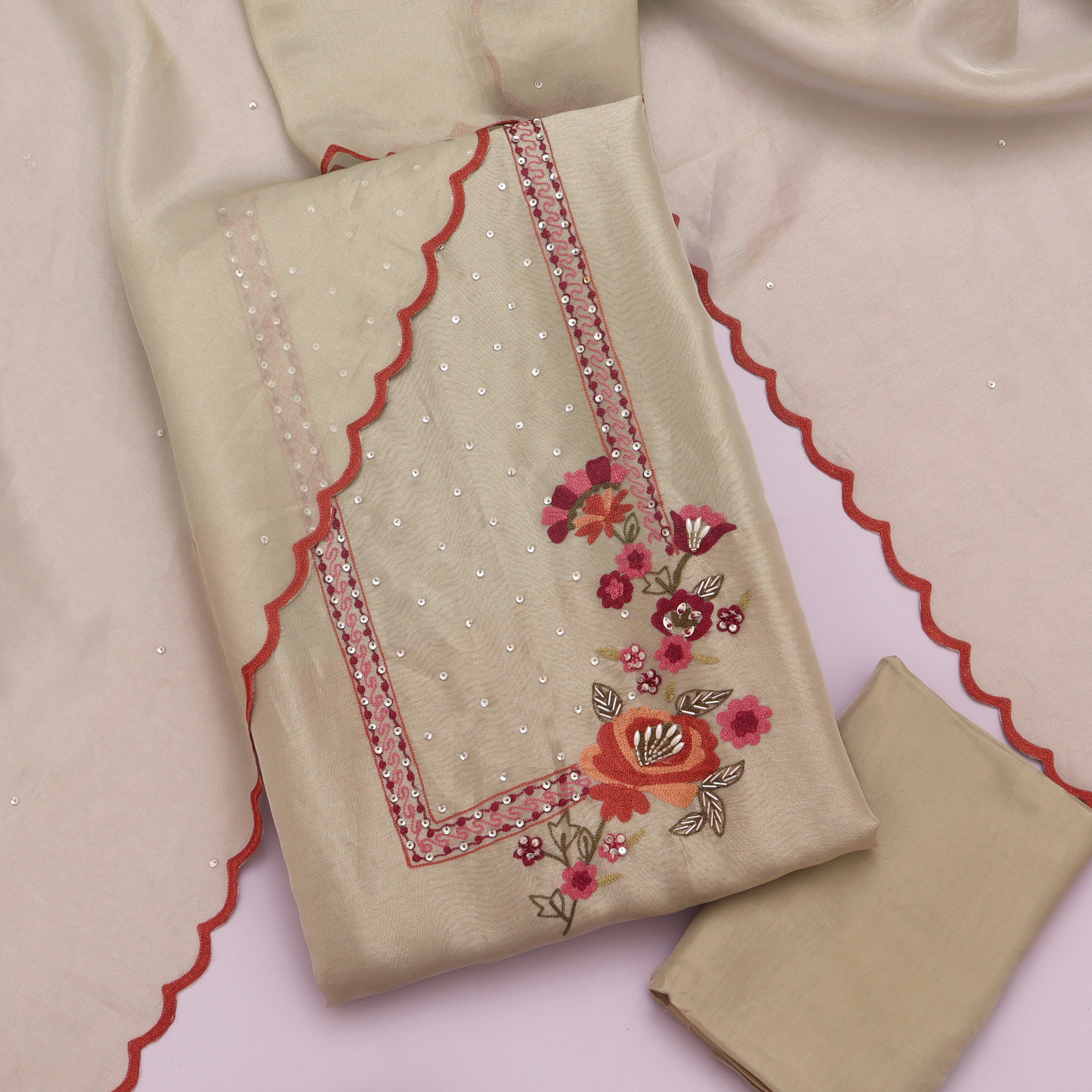 Refresh availabilityCrafted from delicate, breathable tissue fabric, this unstitched suit offers versatile customization for tailored elegance. Its lightweight texture ensures comfort in warm climates while allowing you to design a garment that fits perfectly to your measurements and style preferences. Ideal for those seeking a premium foundation for bespoke outfits.