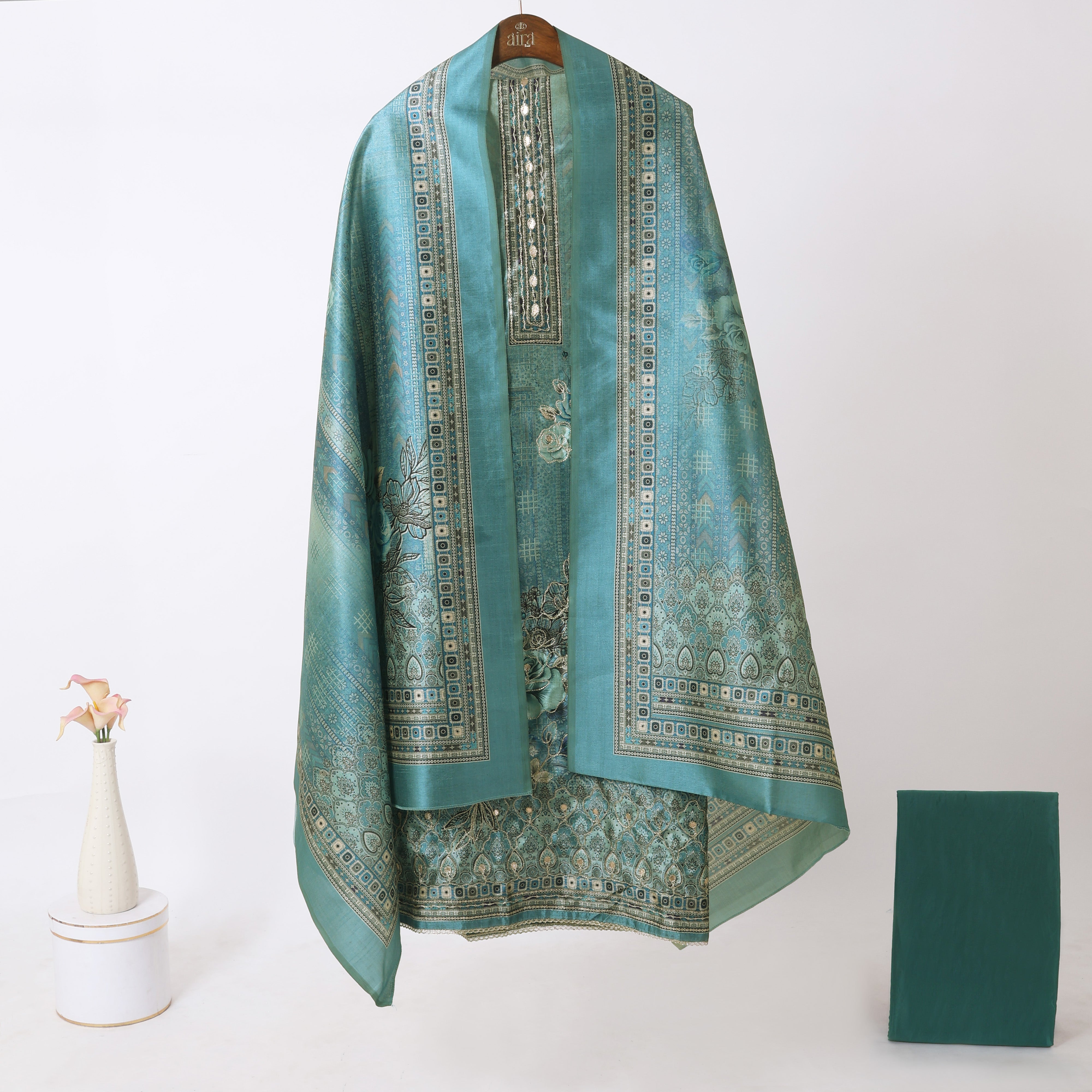 Refresh availabilityAdd a touch of refined elegance to your wardrobe with this luxurious Unstitched Tussar Suit, crafted from finest Tussar silk known for its natural texture, subtle sheen, and lightweight comfort. The fabric drapes beautifully, making it ideal for festive occasions, wedding functions, and sophisticated everyday wear.