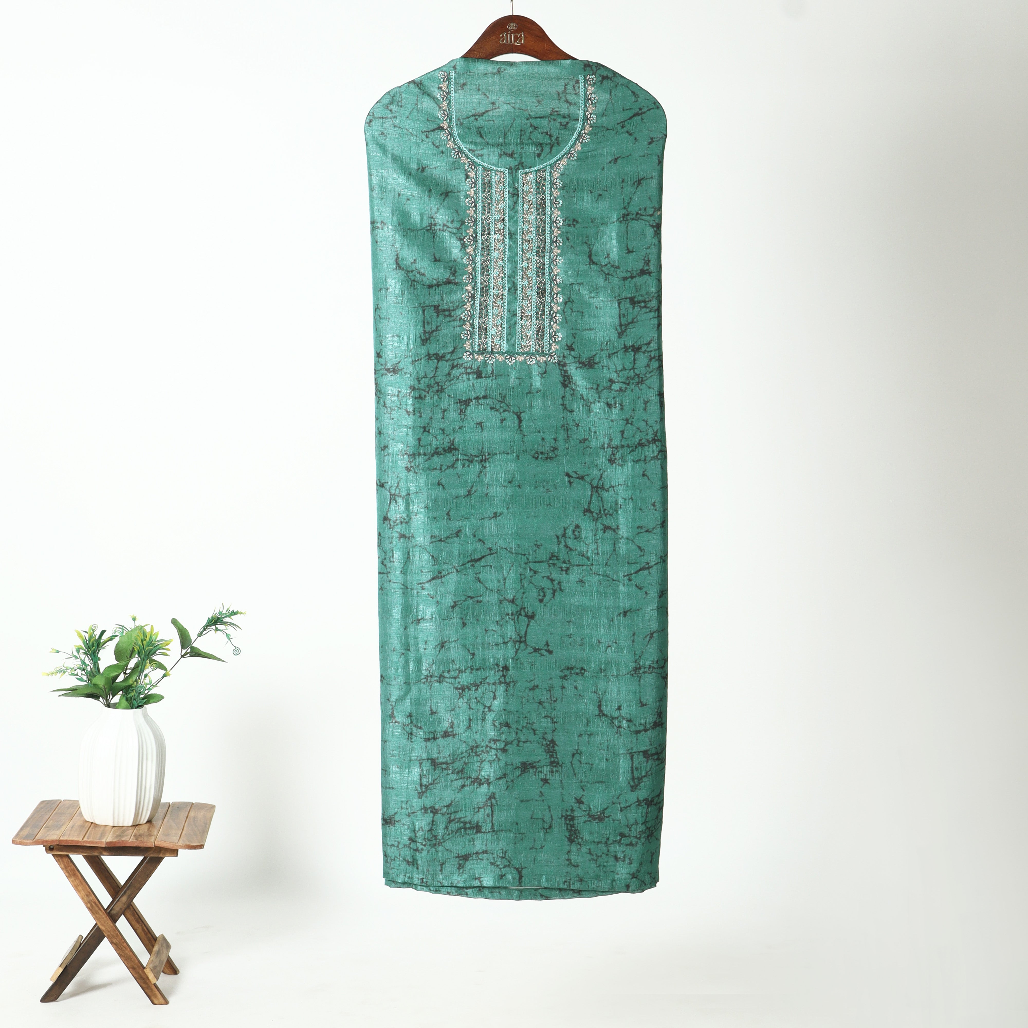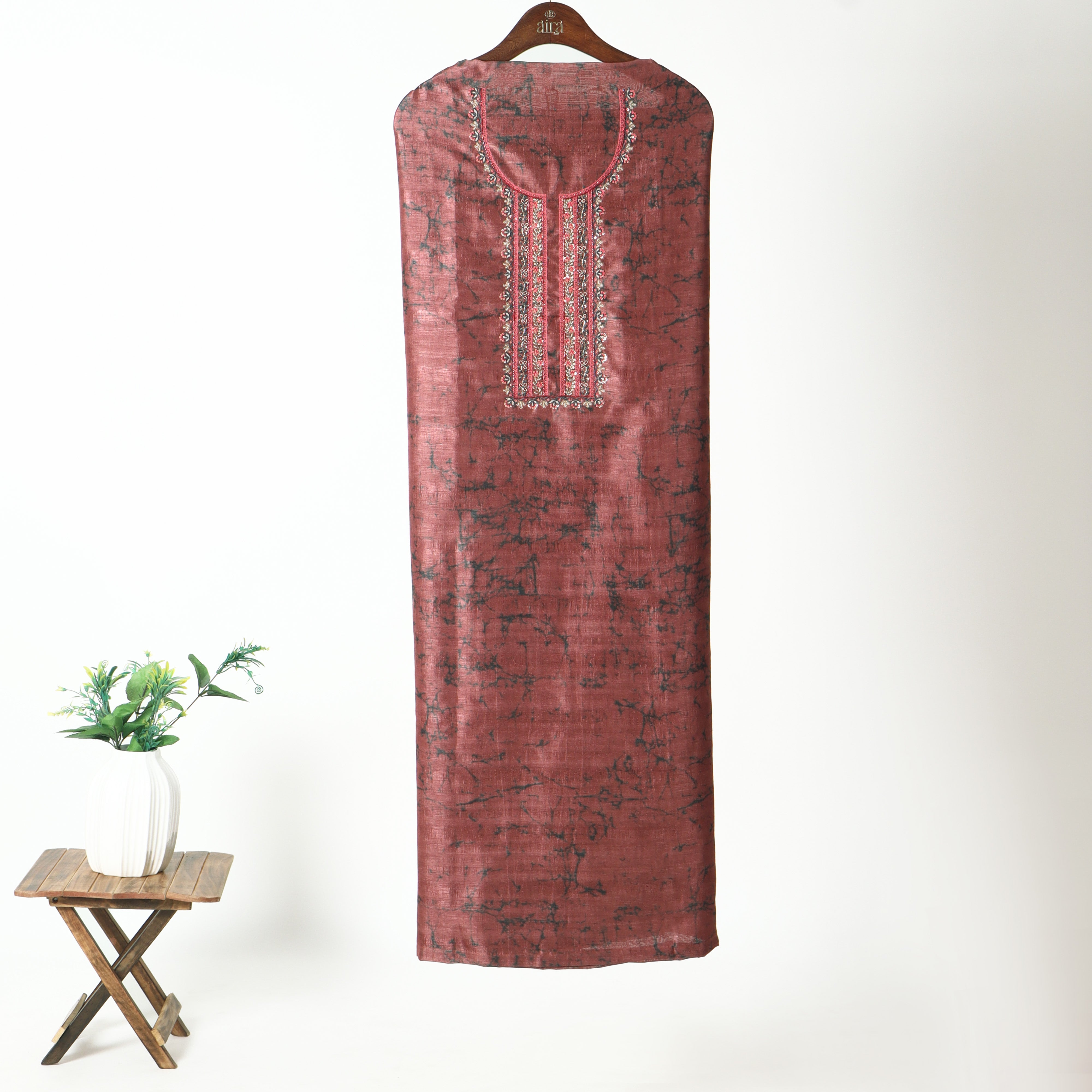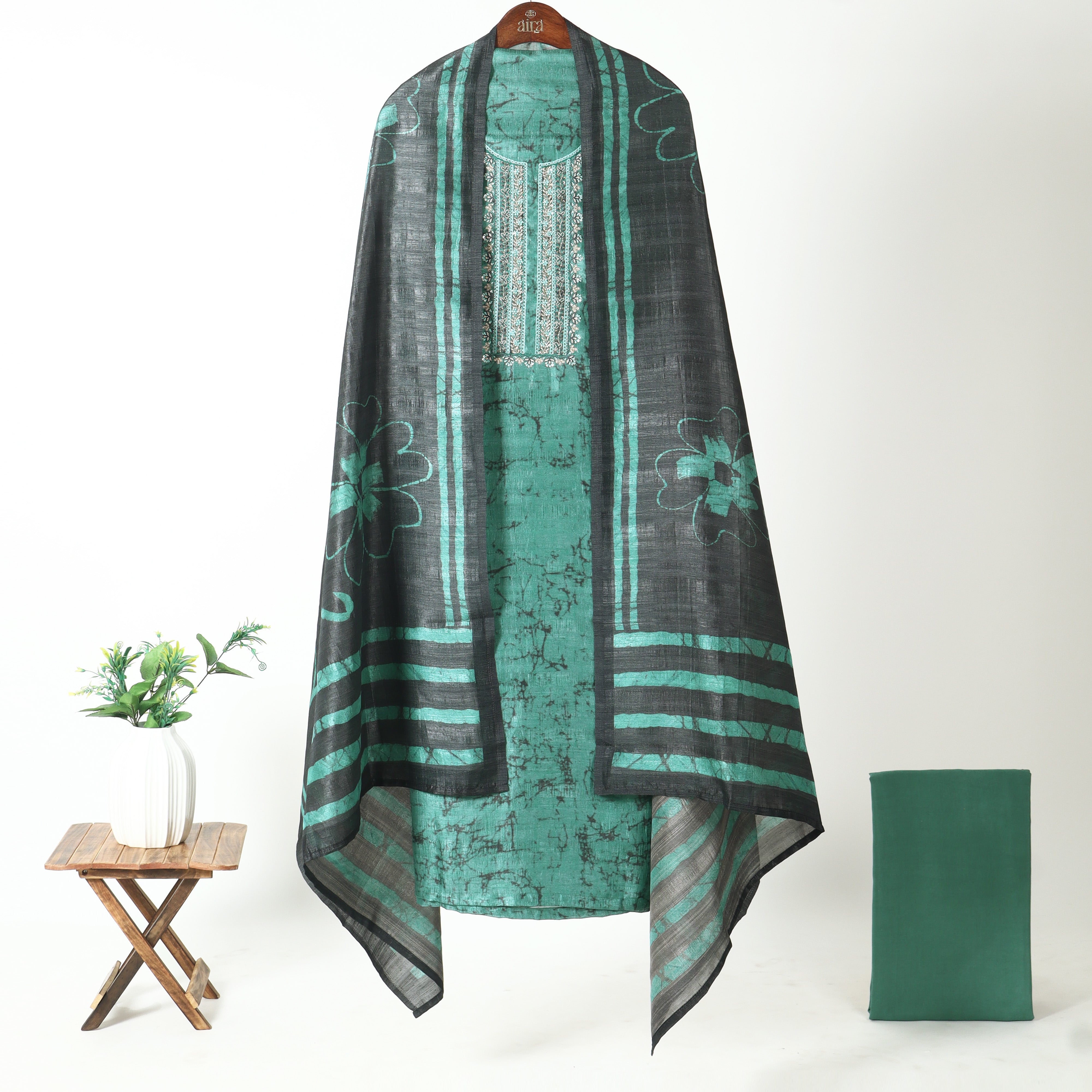 Refresh availabilityElevate your ethnic wardrobe with this elegant Unstitched Tussar Suit, crafted to offer a blend of refined texture and timeless charm. The kurta features a subtle tussar finish with beautifully highlighted printed patterns and a finely detailed neckline that adds a graceful touch to your overall look.