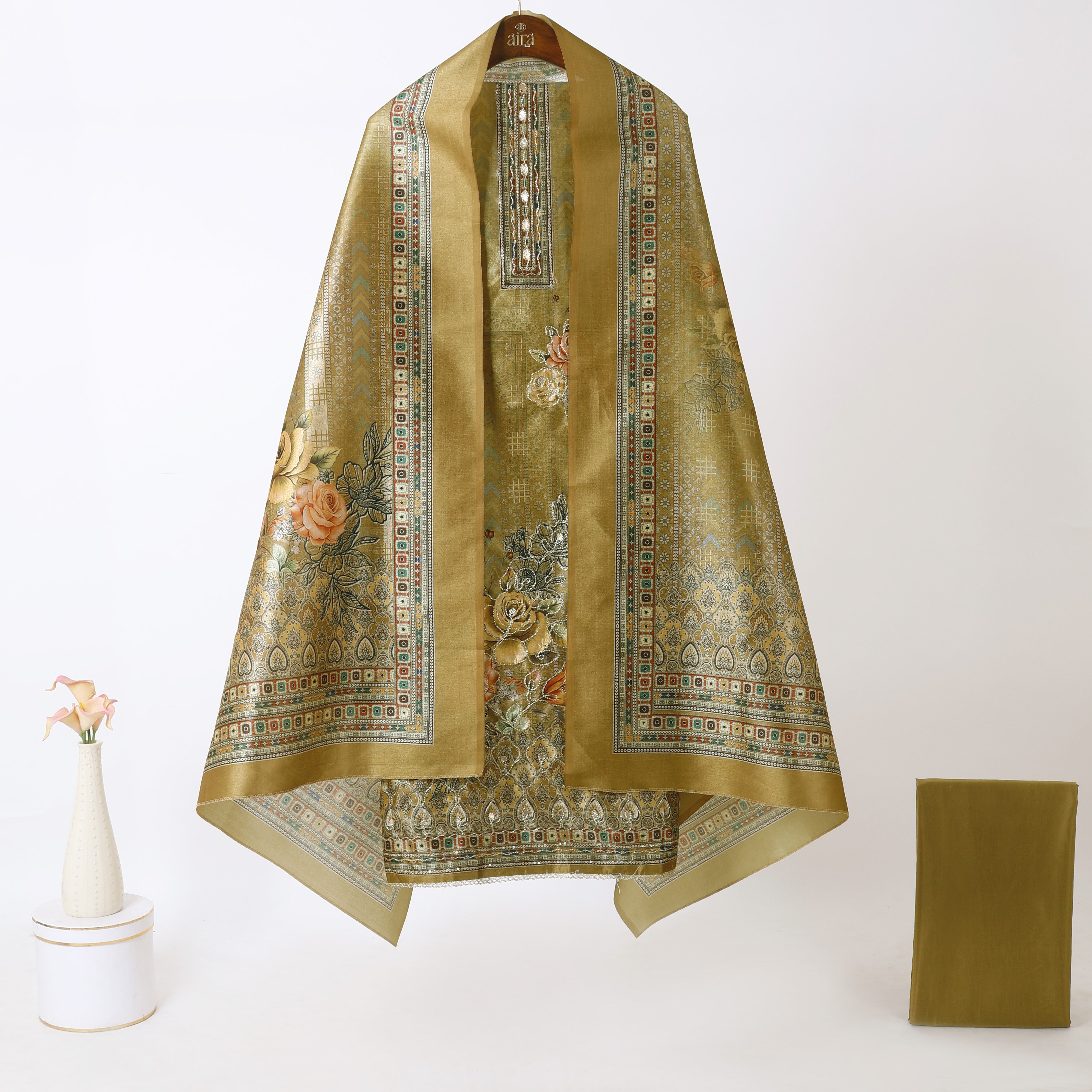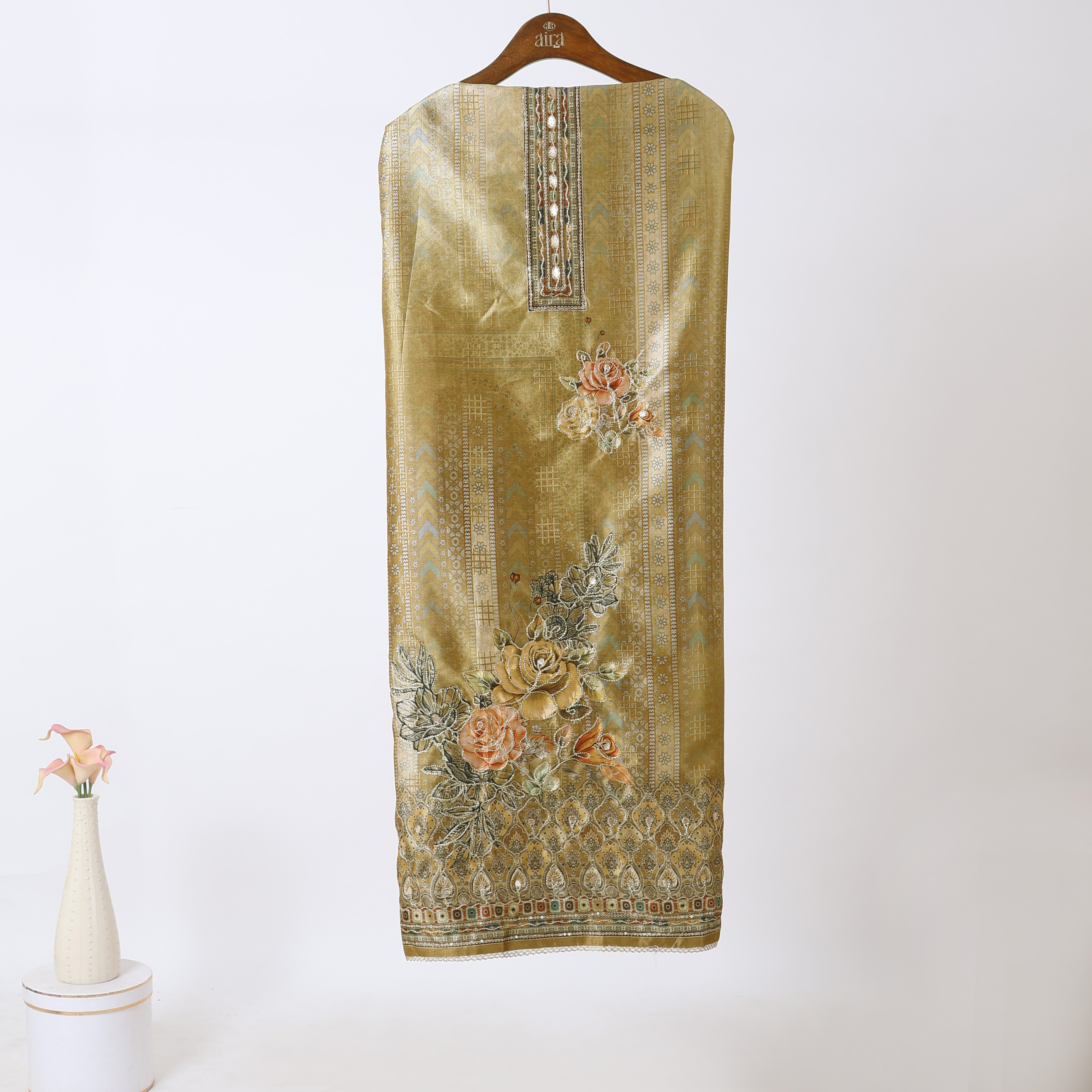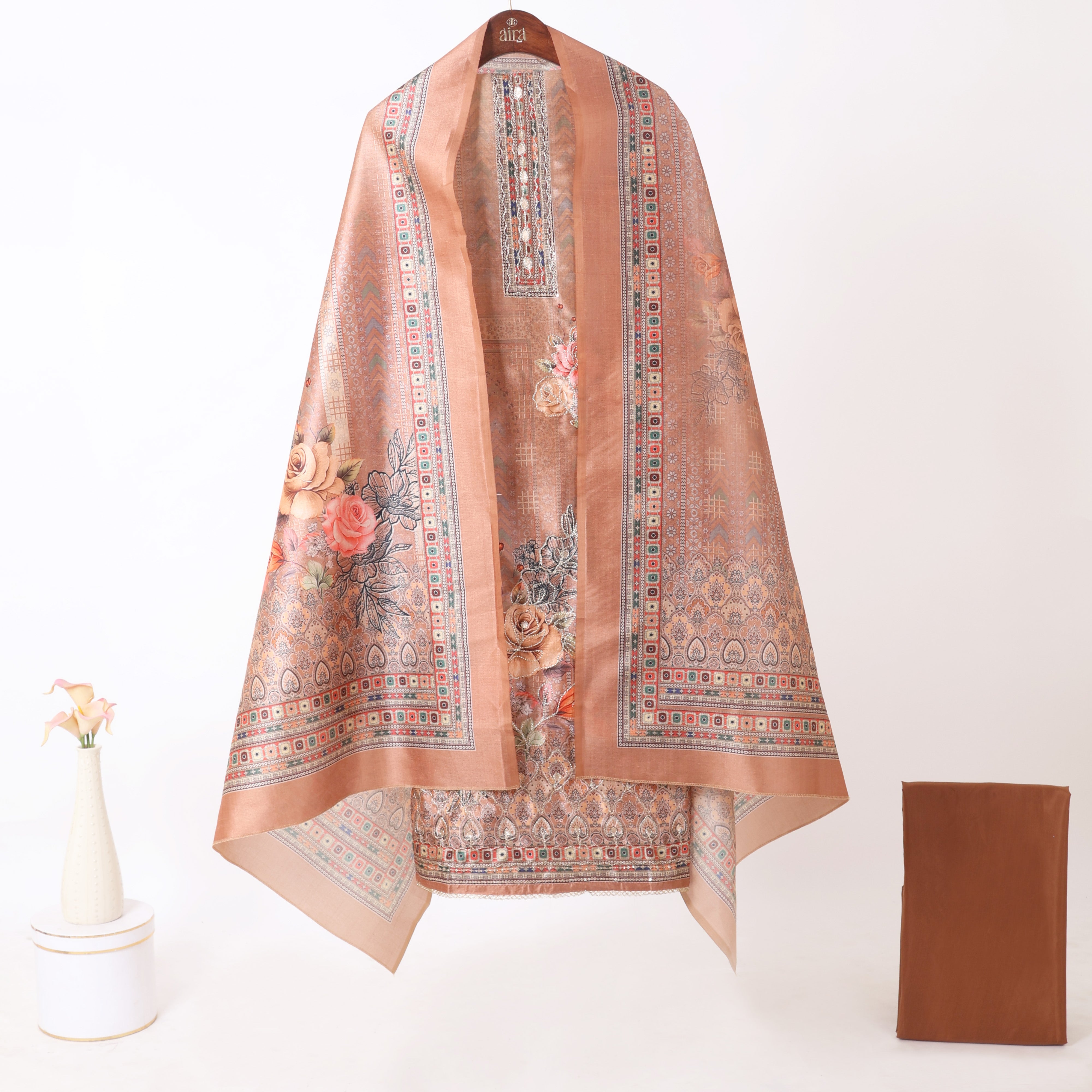 Refresh availabilityDiscover timeless elegance with this luxurious Unstitched Tussar Suit, crafted to bring a perfect blend of tradition and sophistication. Known for its natural sheen, rich texture, and lightweight feel, Tussar fabric adds a graceful charm to every silhouette.