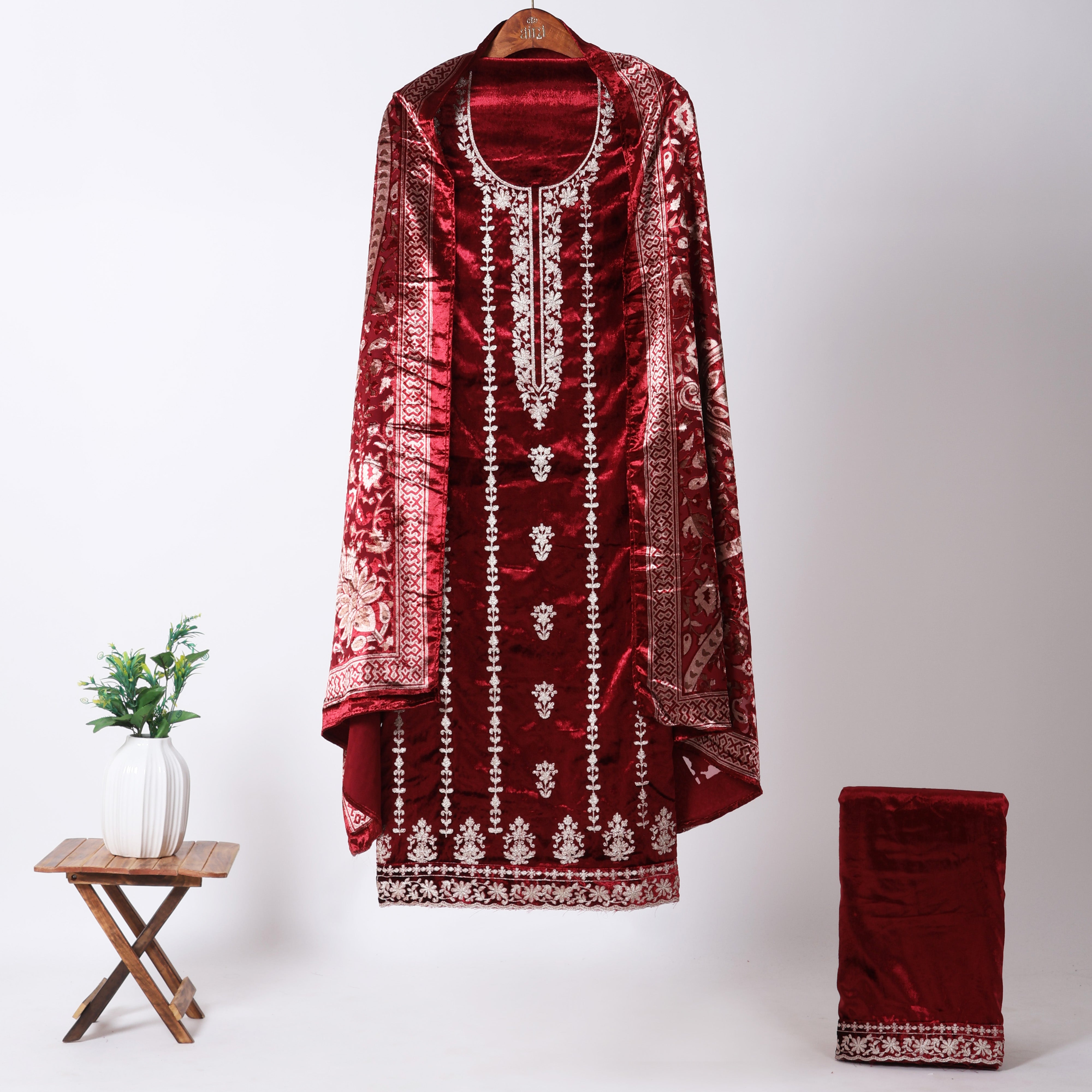 Refresh availabilityElevate your festive wardrobe with our exquisite Unstitched Velvet Suit. Made from rich, soft velvet fabric, this ensemble embodies timeless luxury and grace. The plush texture adds a royal charm, making it perfect for winter celebrations and evening occasions. Easy to stitch and style, it allows you to create a personalized look that blends comfort with opulence.
